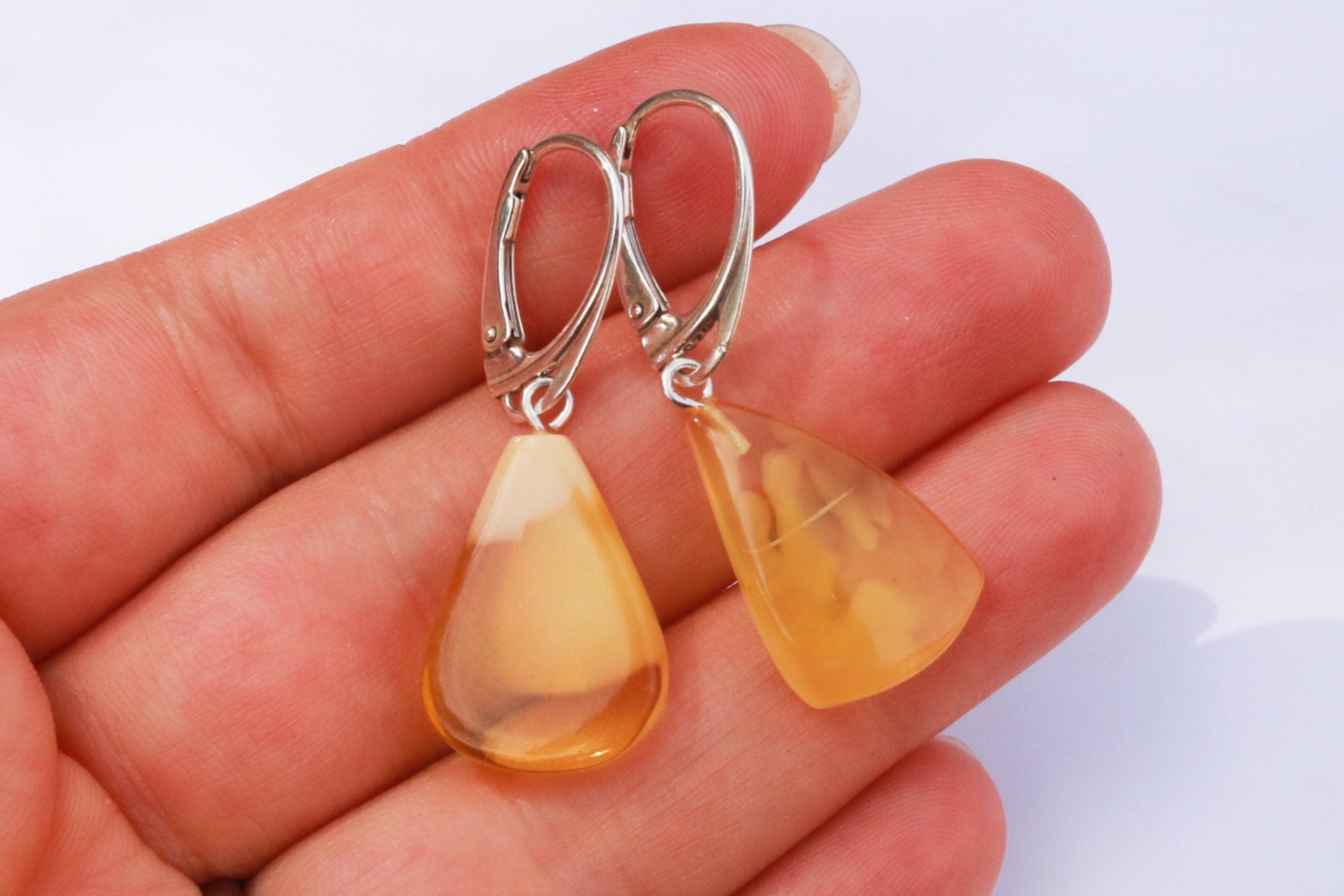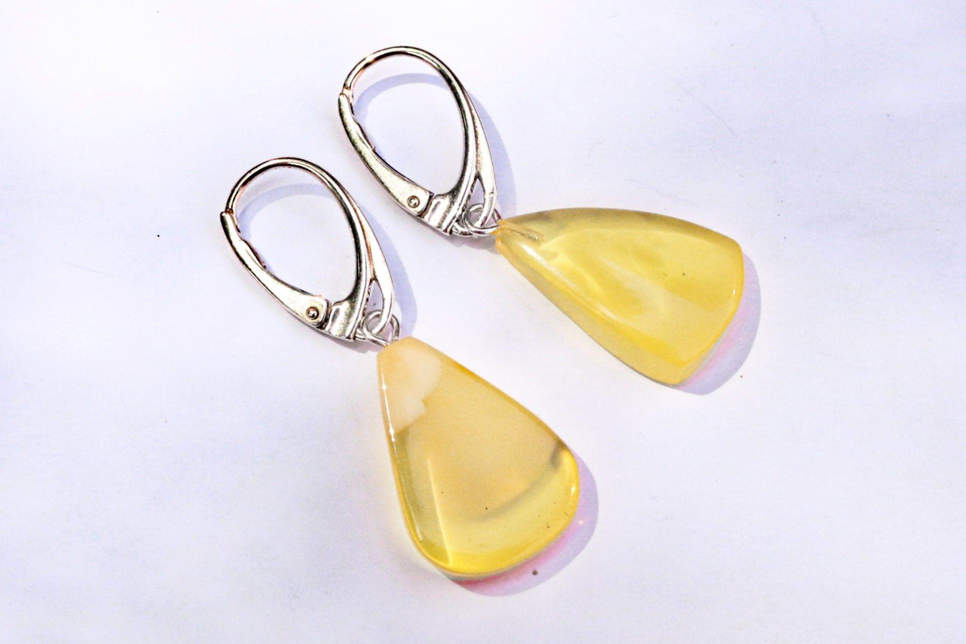 Baltic Amber Earrings Yellow Cloudy Slabs Natural Dangling Jewelry 1.52" 2.6 gram 925 Silver