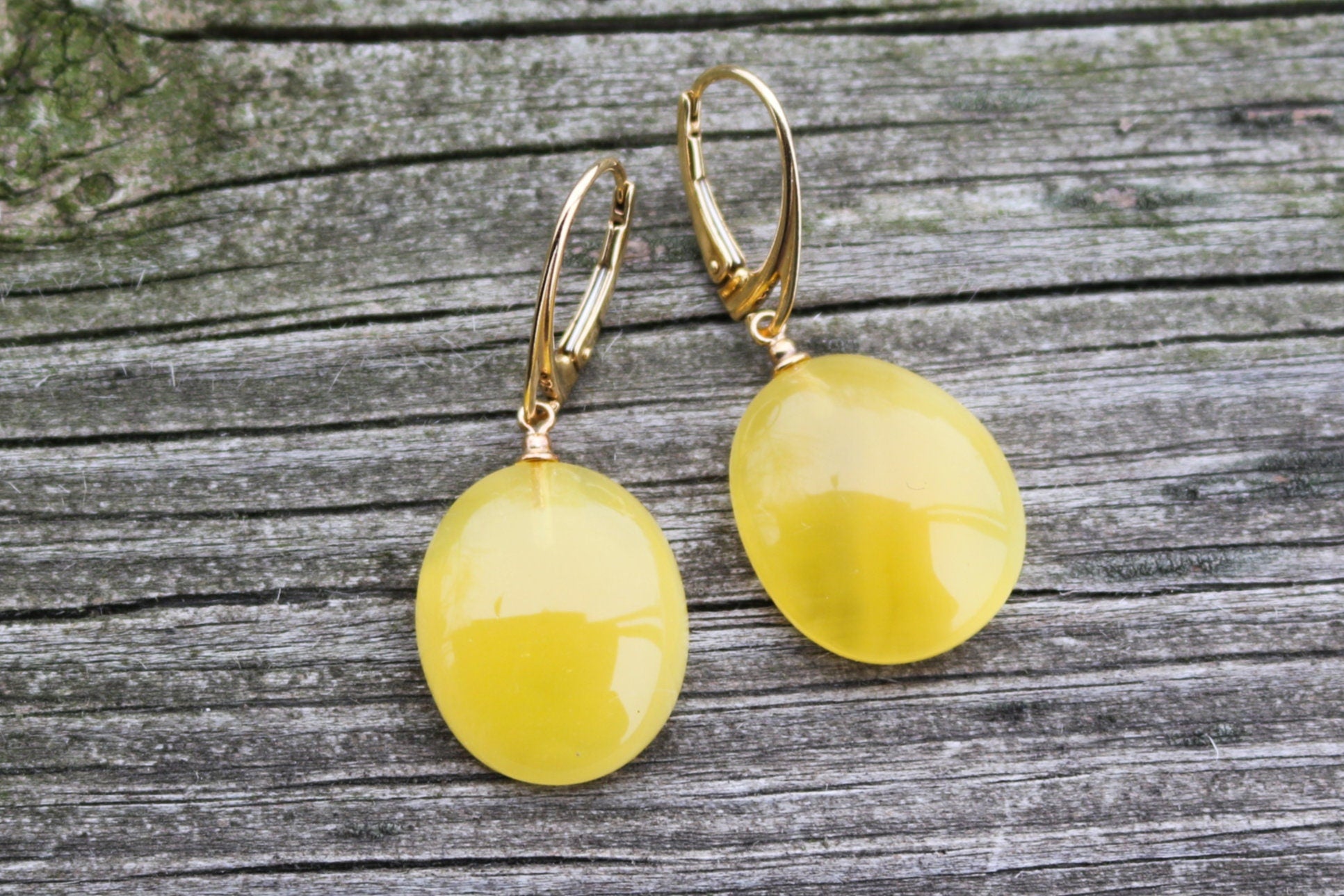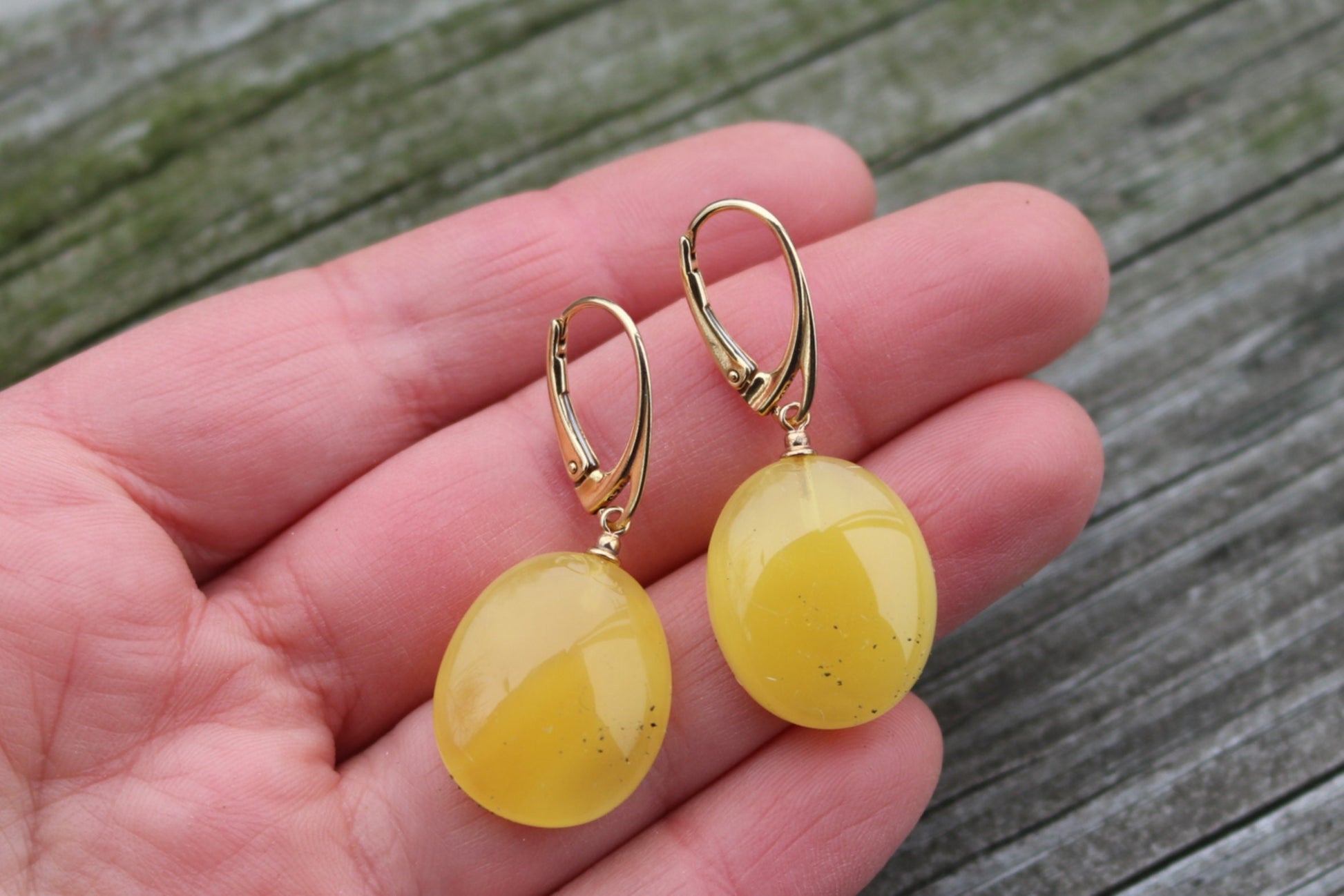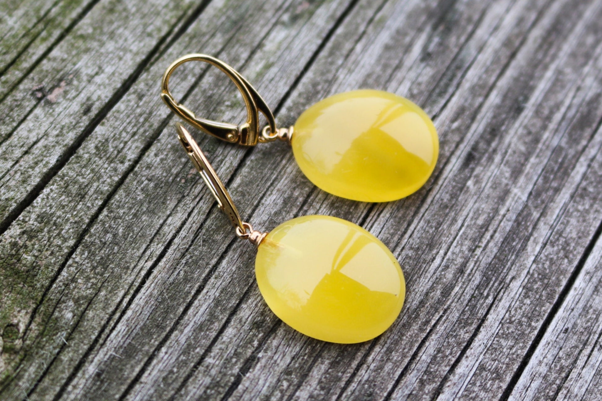 Baltic Amber Earrings Yellow Oval Gold Plated Natural Jewelry 1.9" 4.4 gram 935 Silver