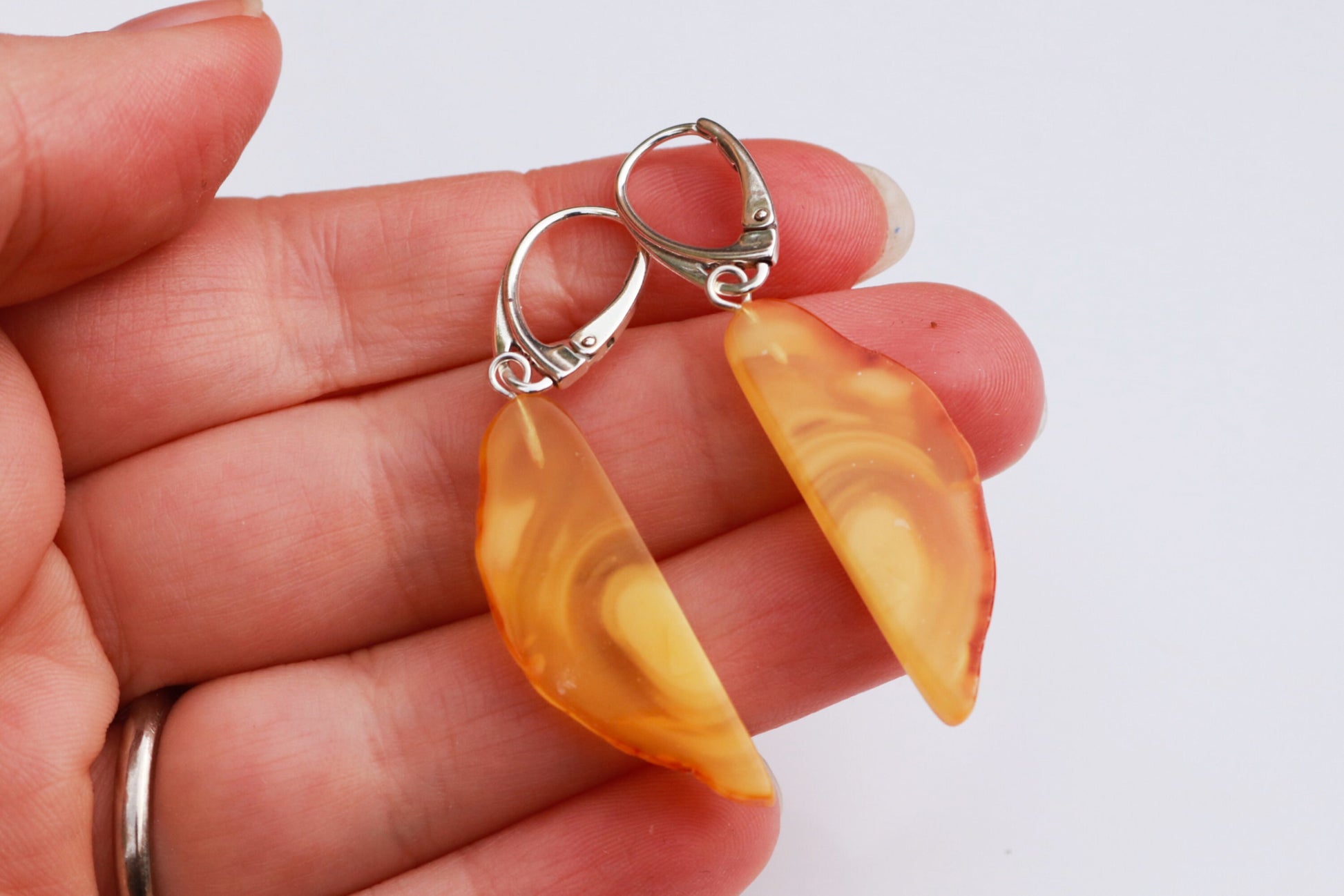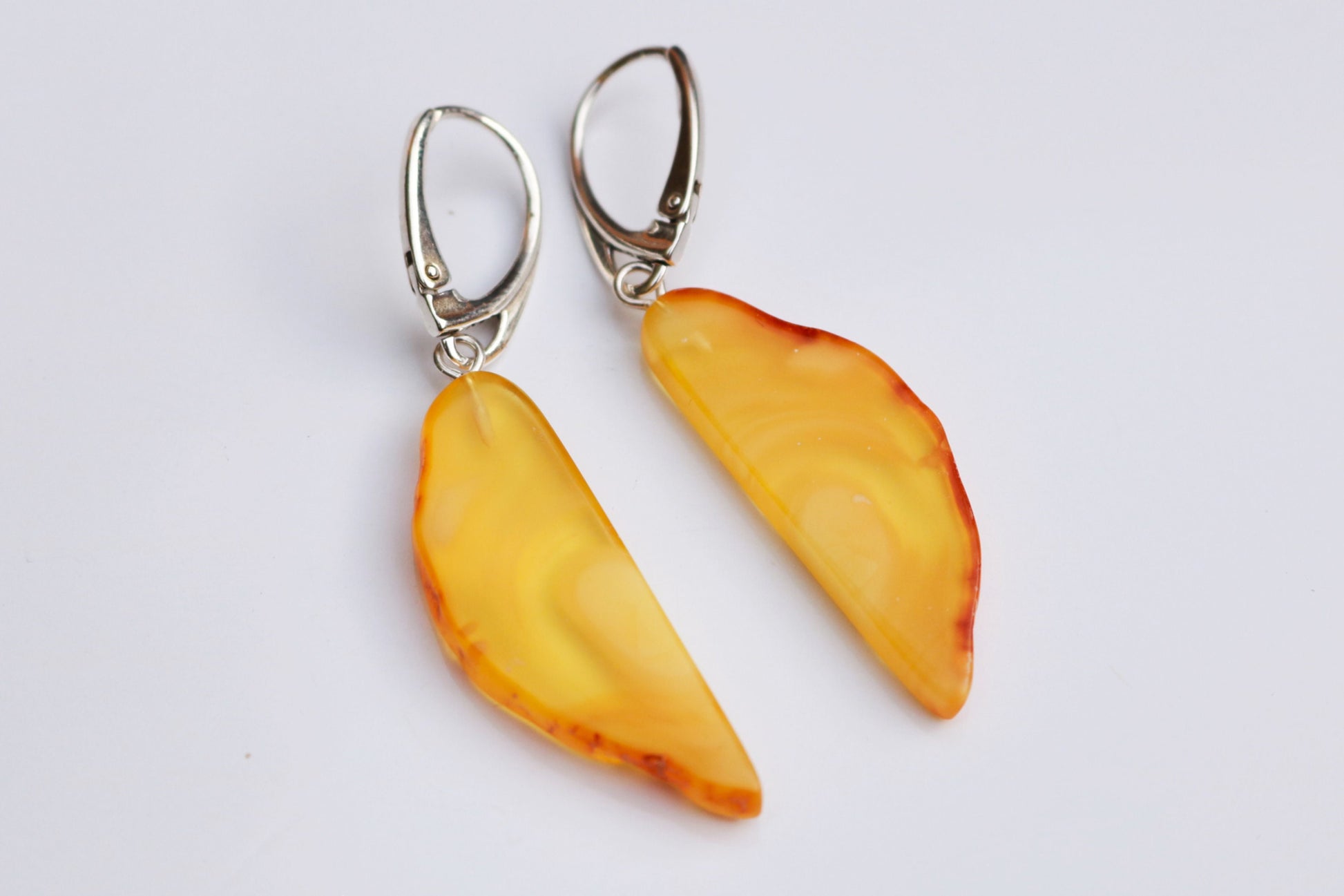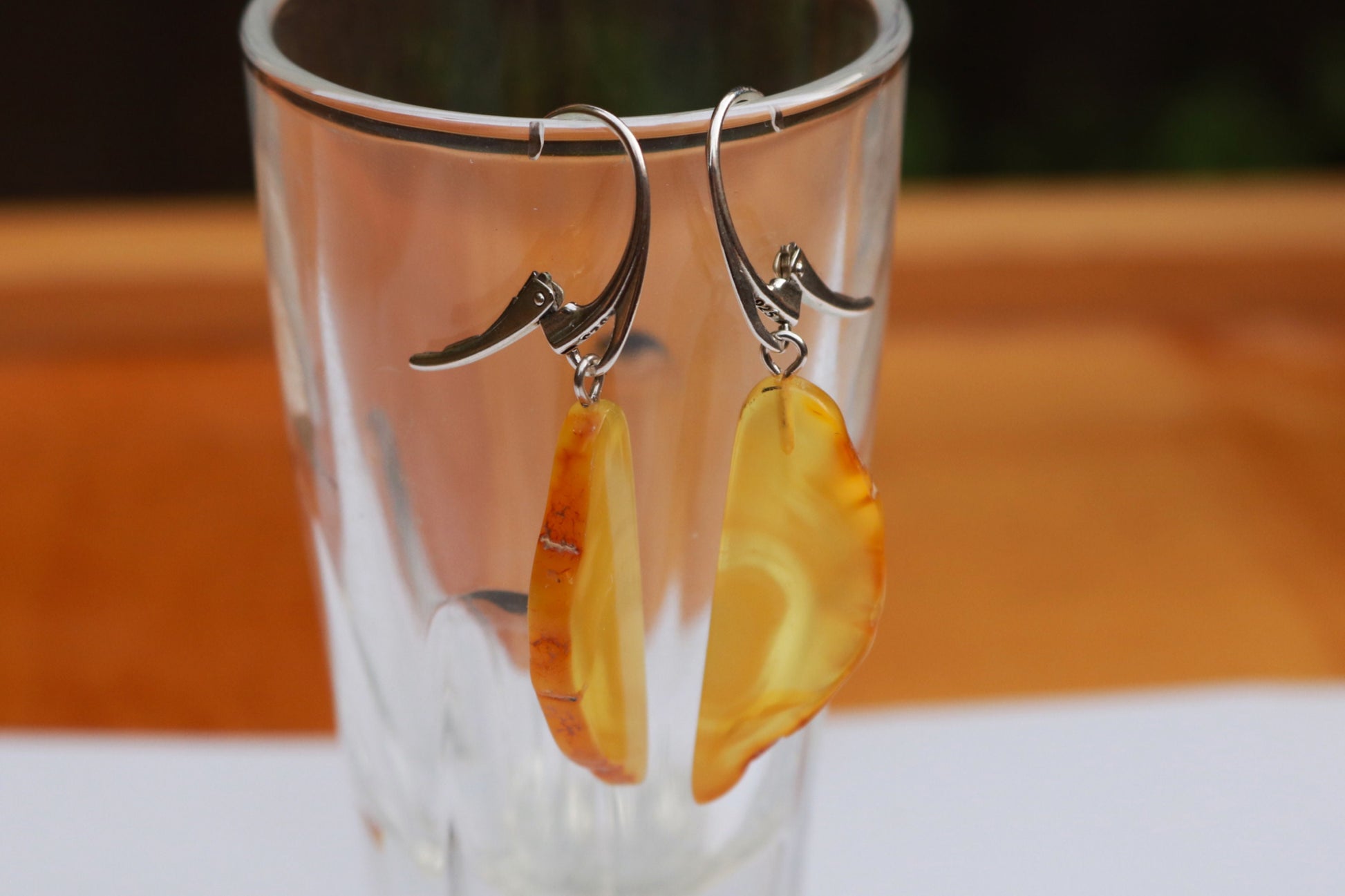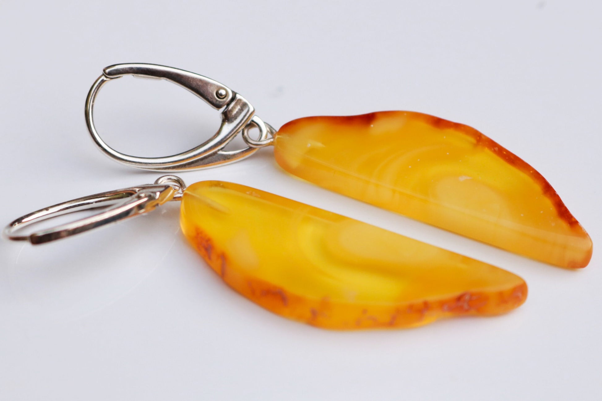 Baltic Amber earrings in natural untreated cloudy yellow color. Set in 925 sterling silver.