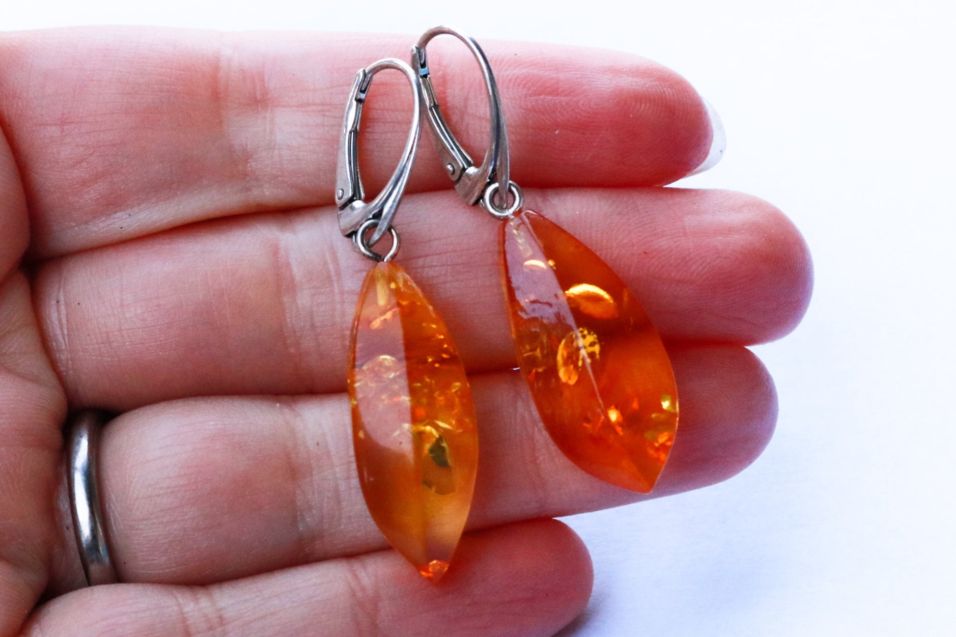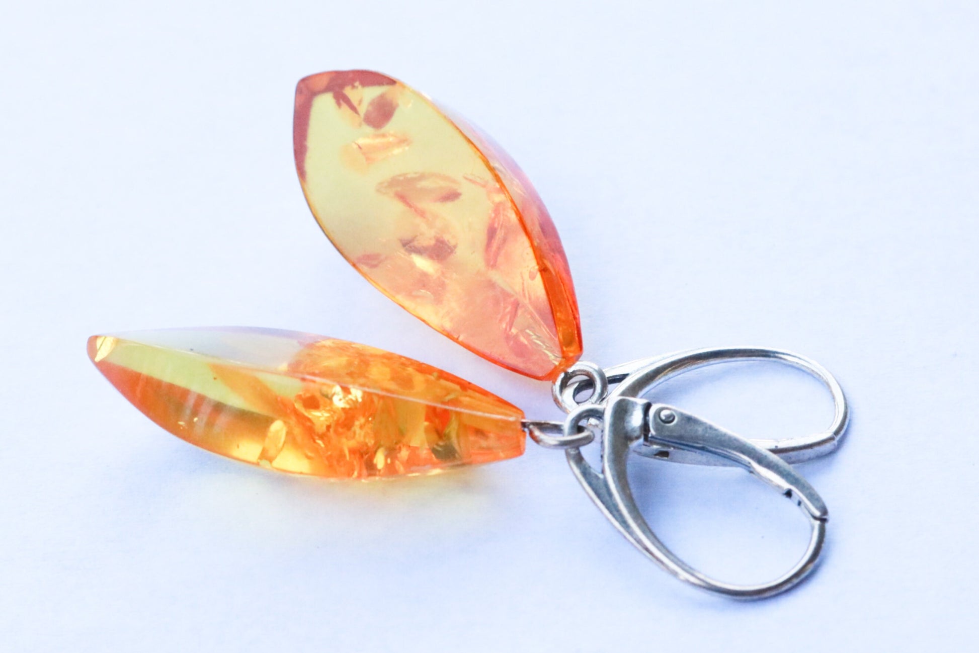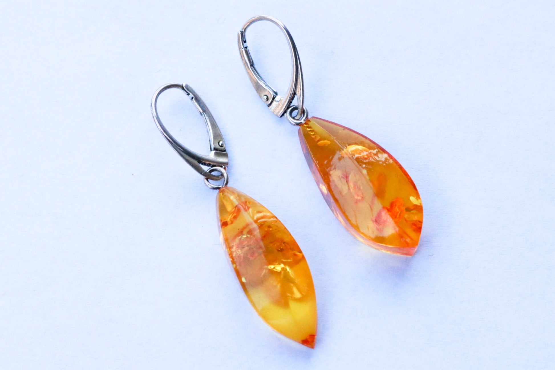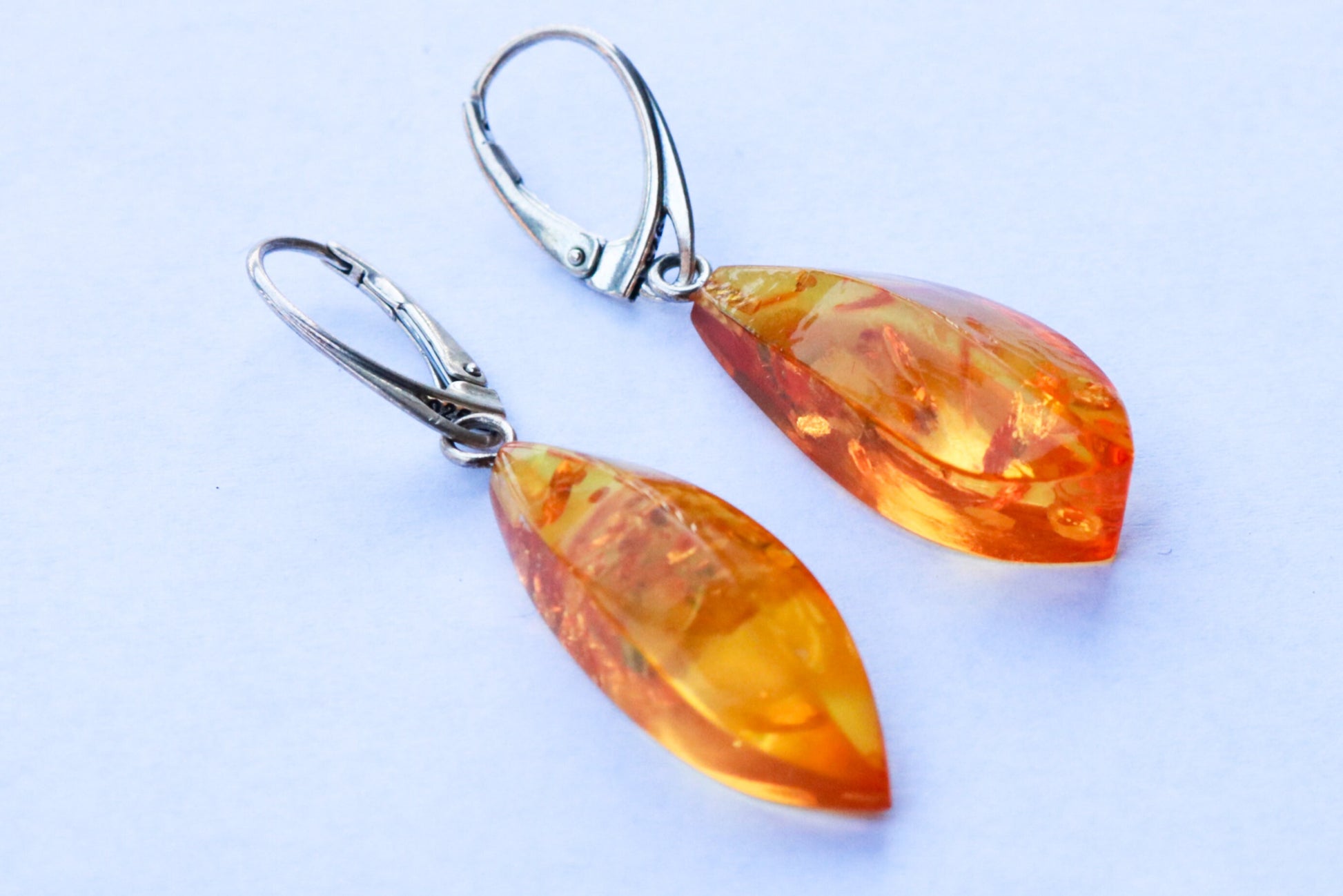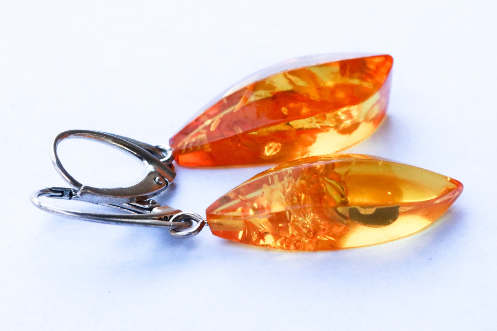 Baltic Amber hand carved and hand faceted earrings in sparkling yellow (lemon) color.