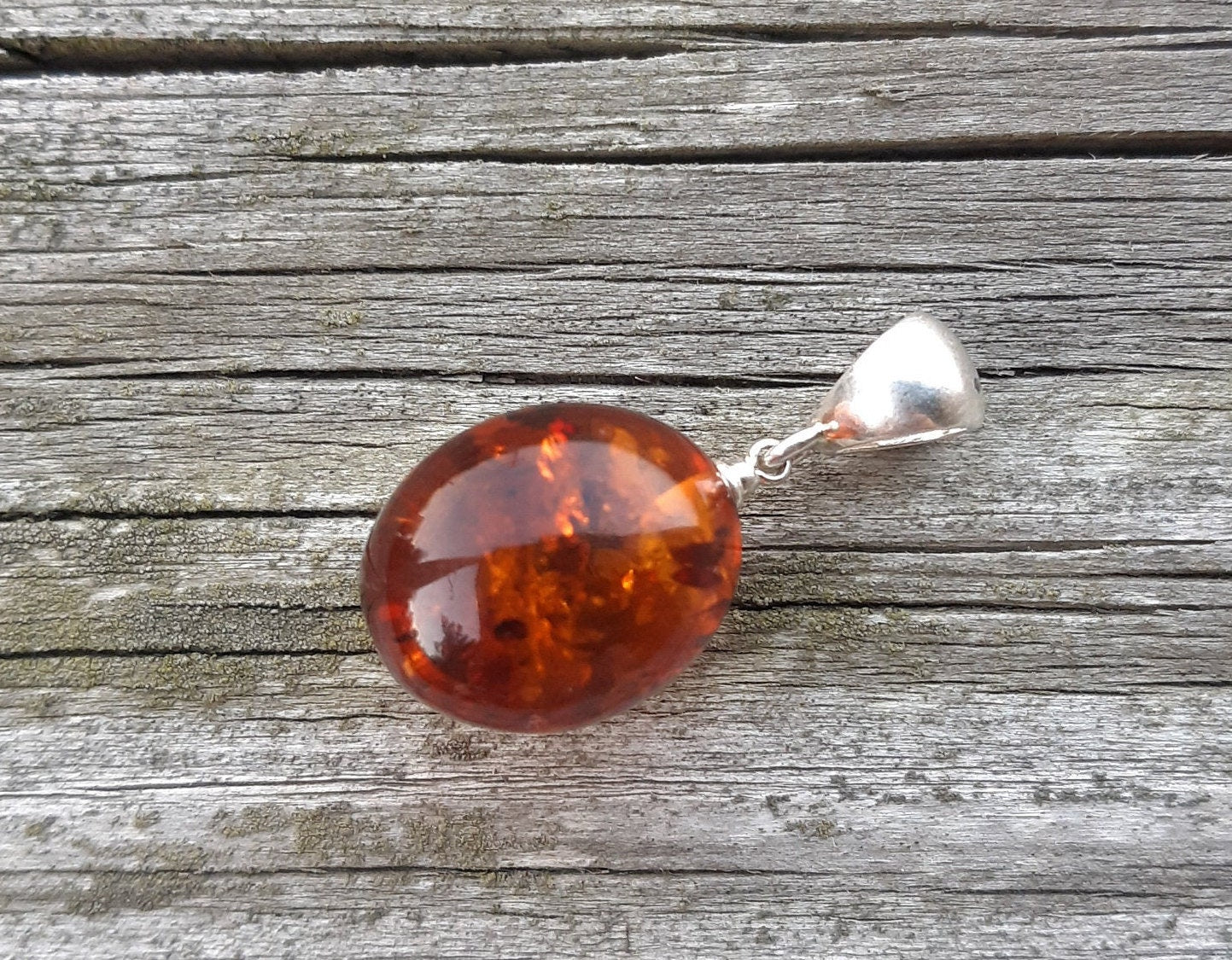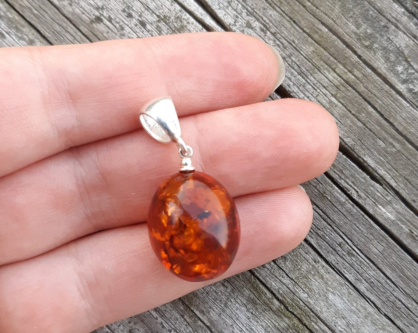 Baltic Amber Egg Pendant Cognac Unisex Jewelry 1.34" 3.5 gram 925 Silver
