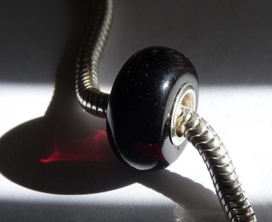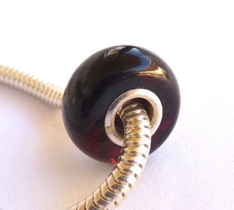 Baltic Amber European Charm Bead Cherry Black Charm Bracelet Silver