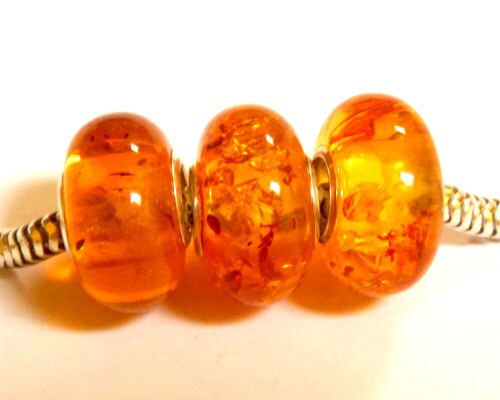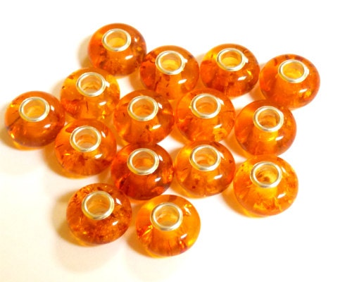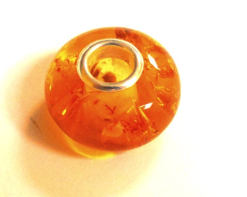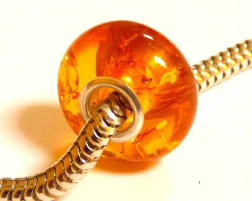 Natural Baltic amber European bead with 5 mm 925 sterling silver core. Hand-faceted.
