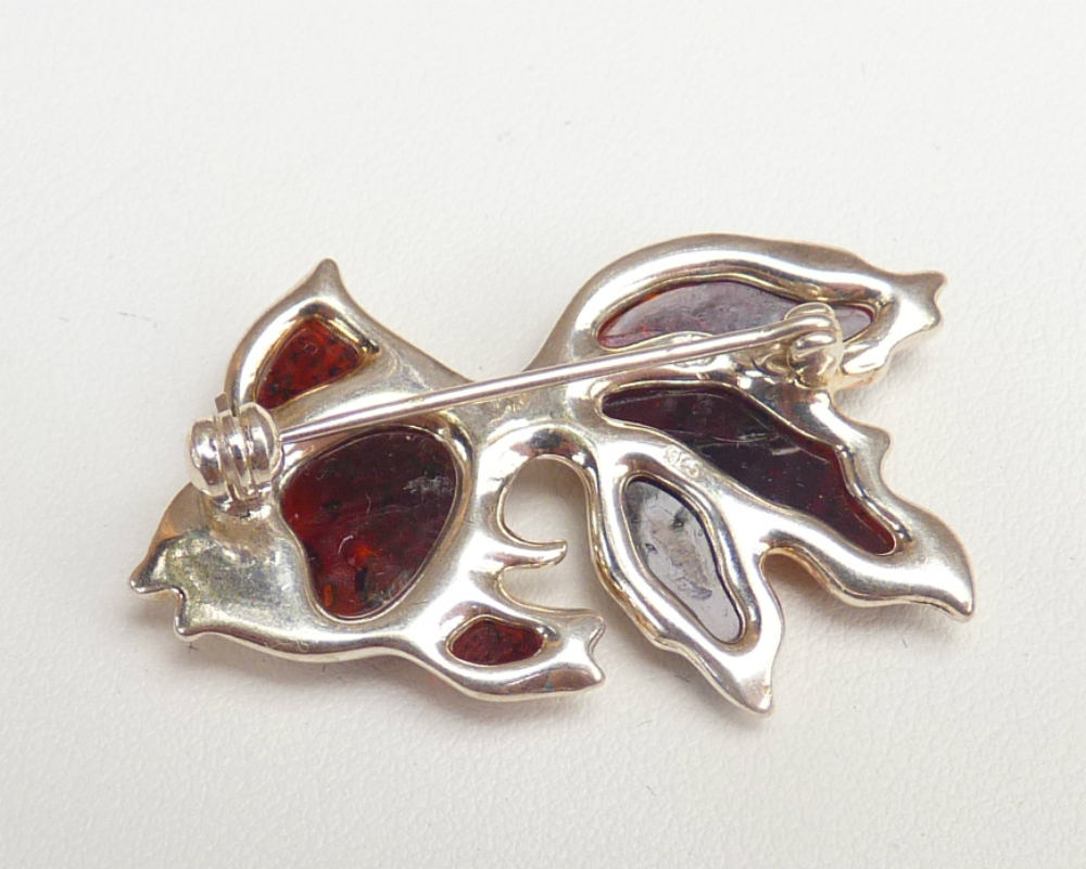 Baltic Amber Fish Pin Brooch Cognac Sparkling Natural Jewelry 925 silver