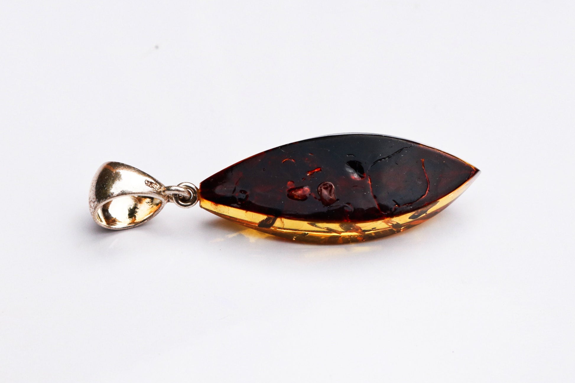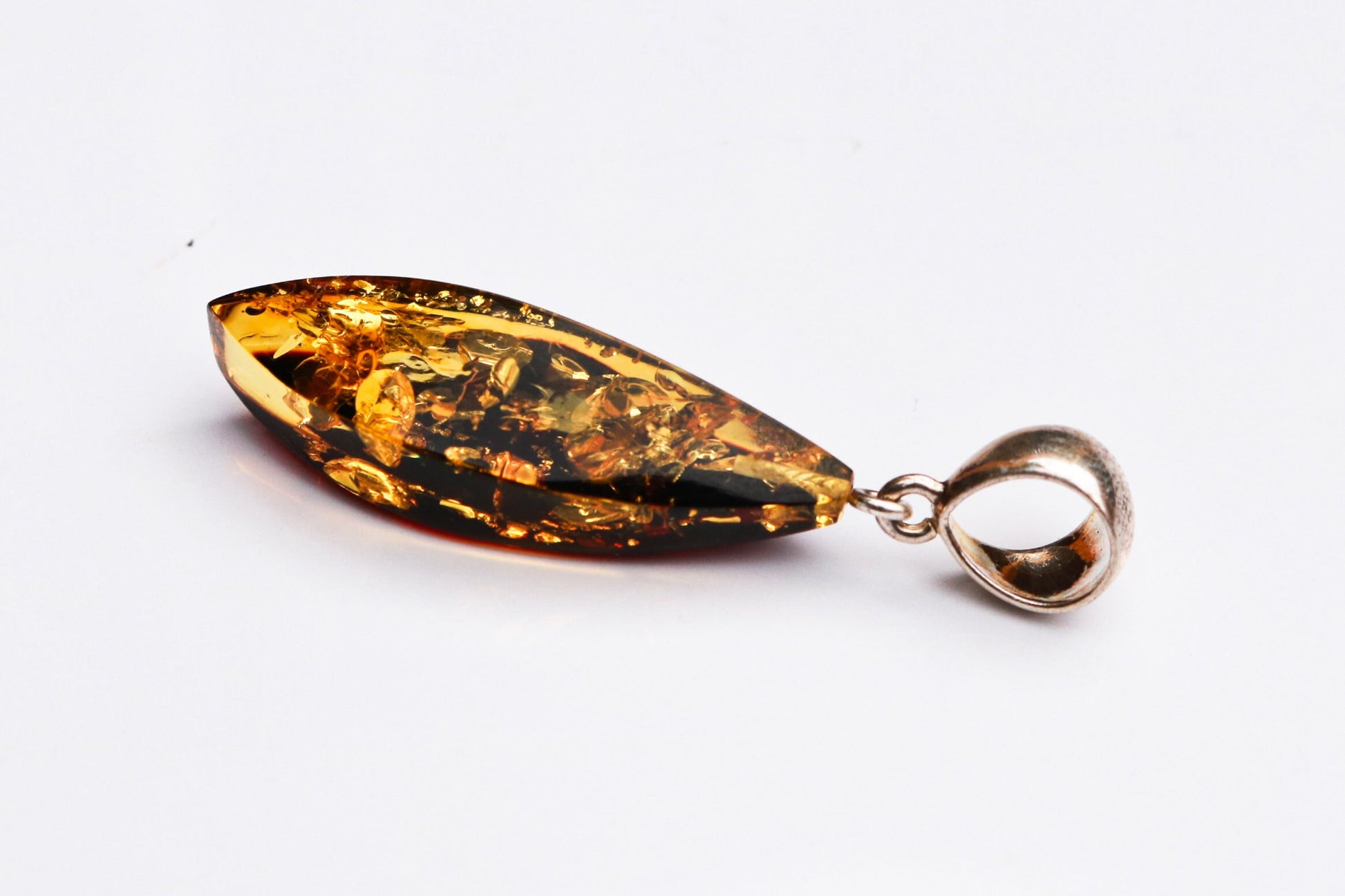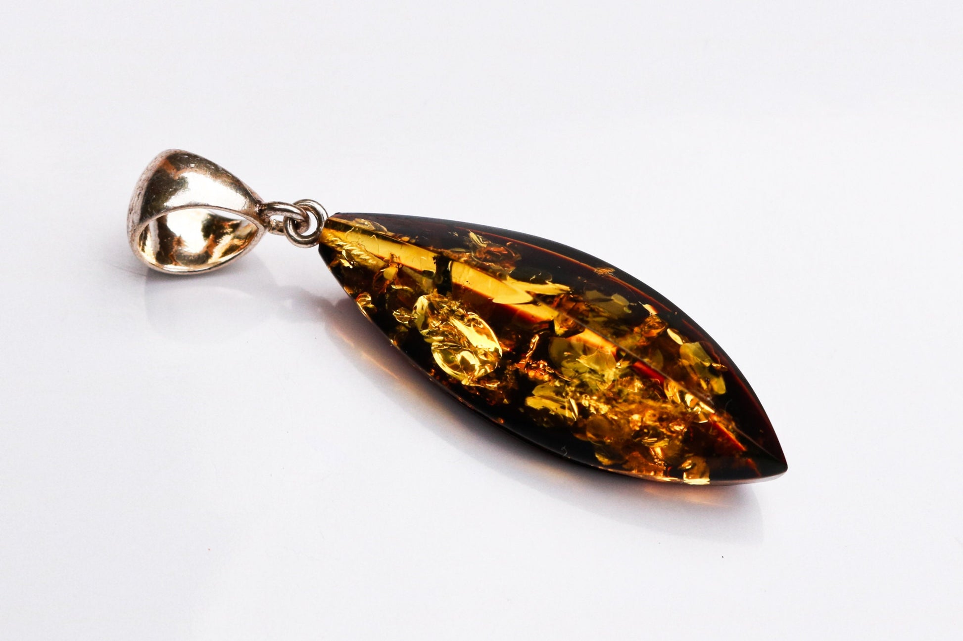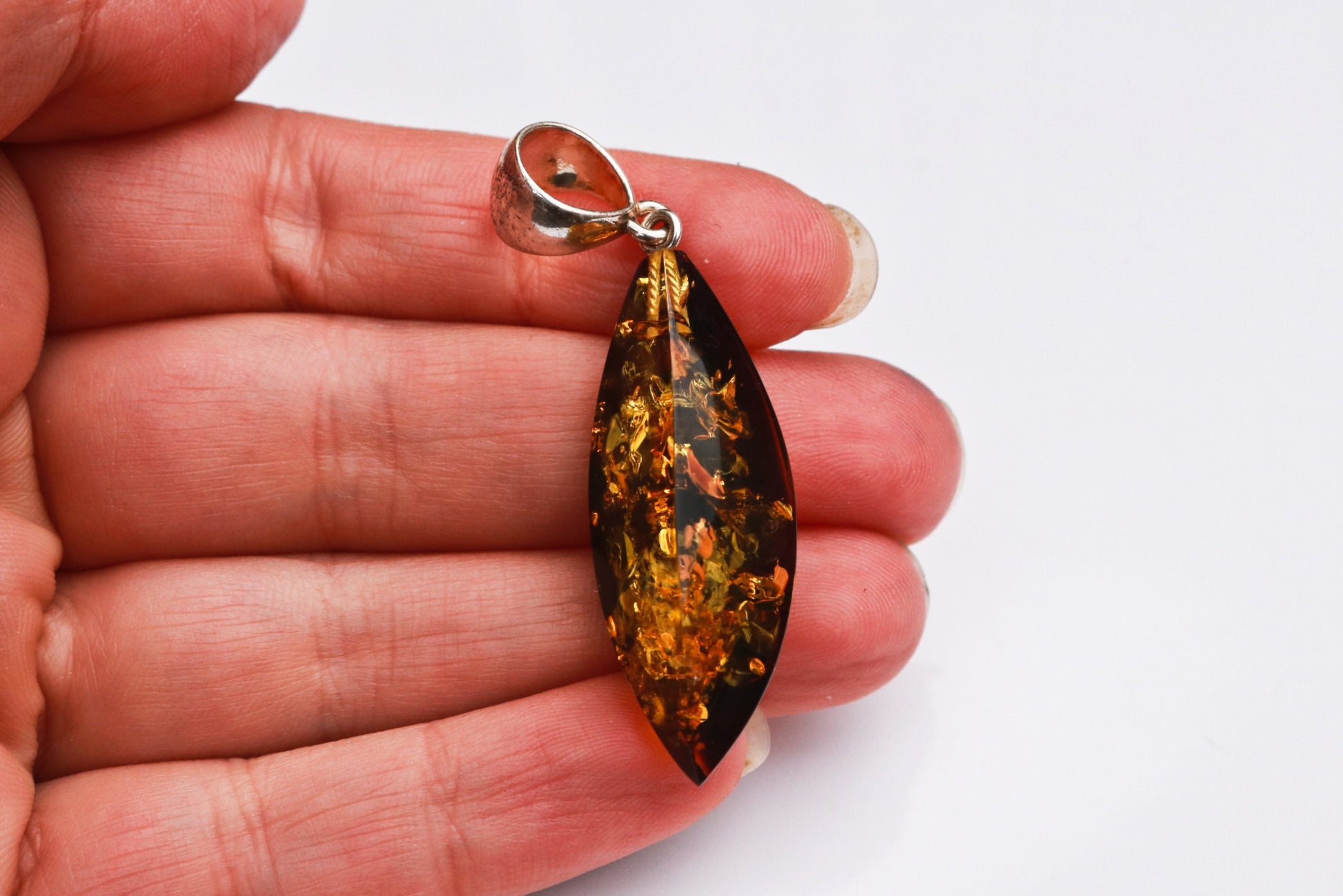 Baltic Amber Green Pendant Faceted Sparkling Unisex 2.1" 4.3 gram 925 Silver
