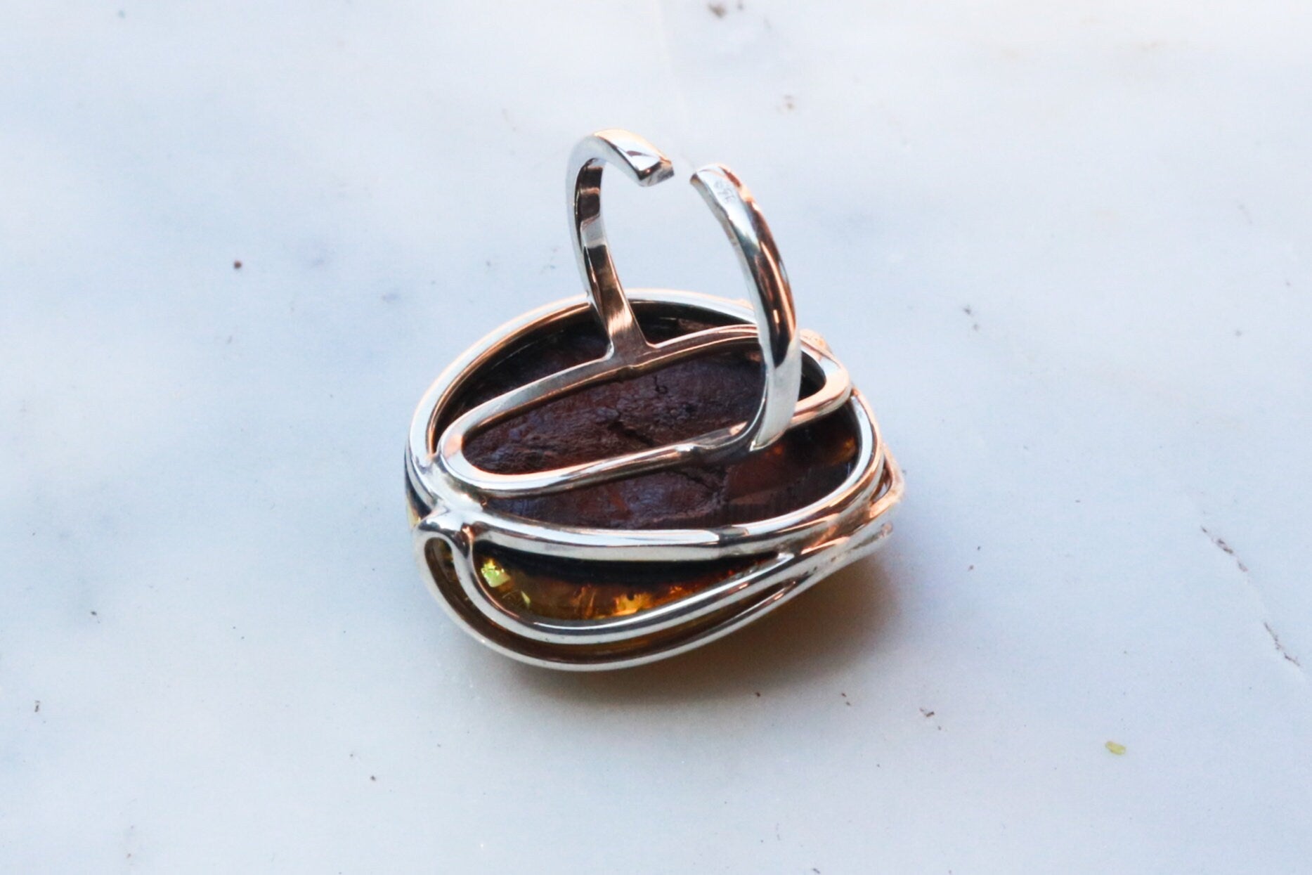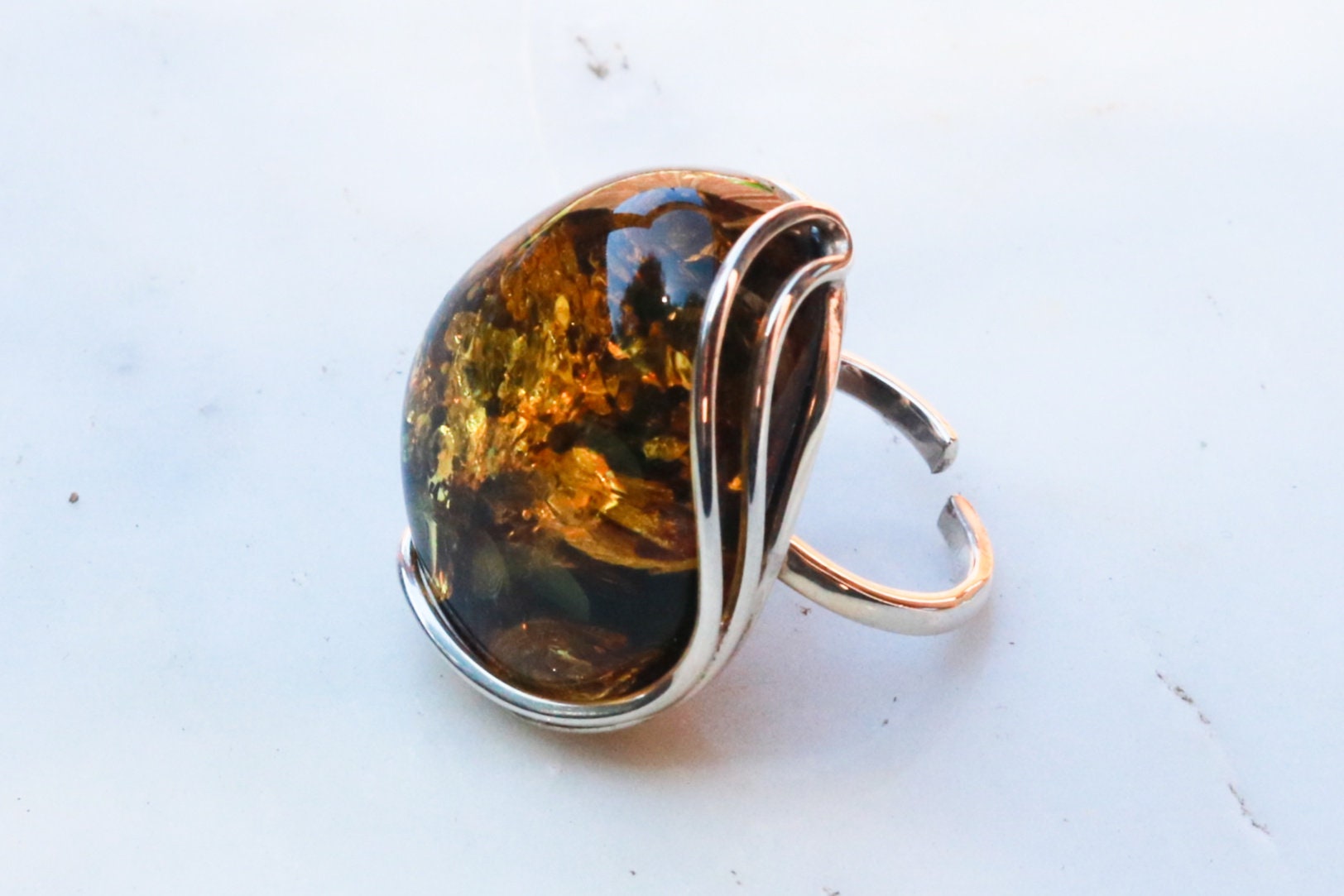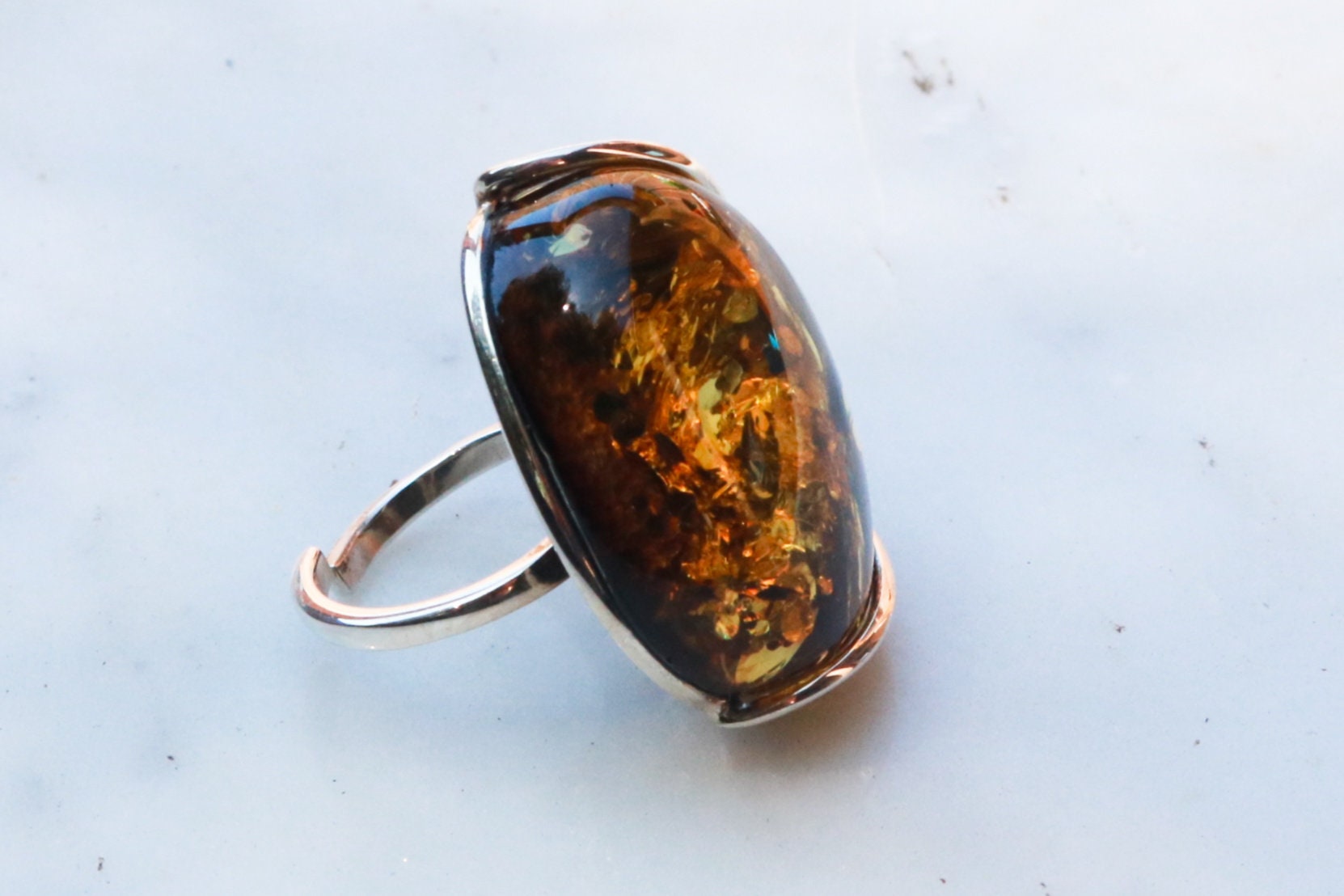Baltic Amber Green Ring Adjustable Sparkling Jewelry 925 Silver 12.4 gram