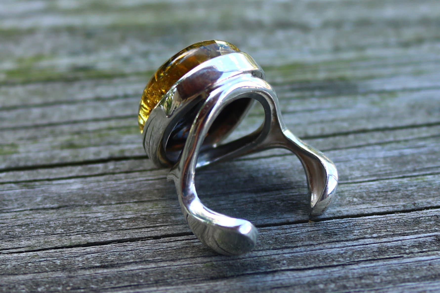 Baltic Amber ring in sparkling green color. Set in 925 sterling silver. This ring is adjustable. Will fit any size.