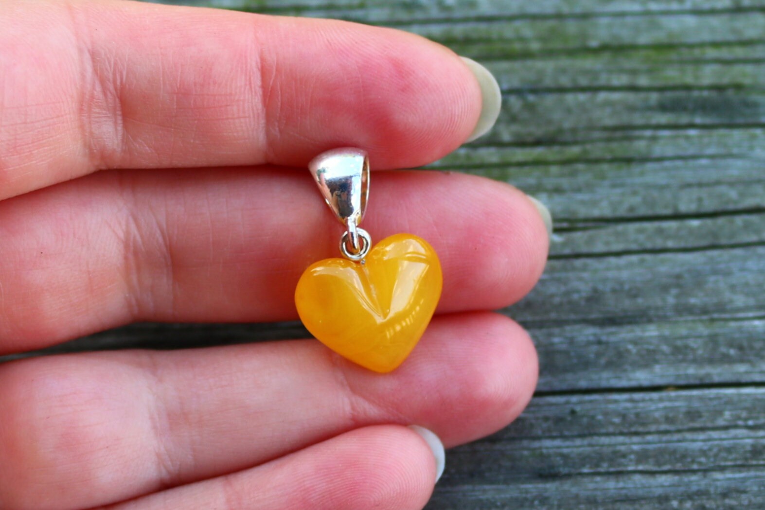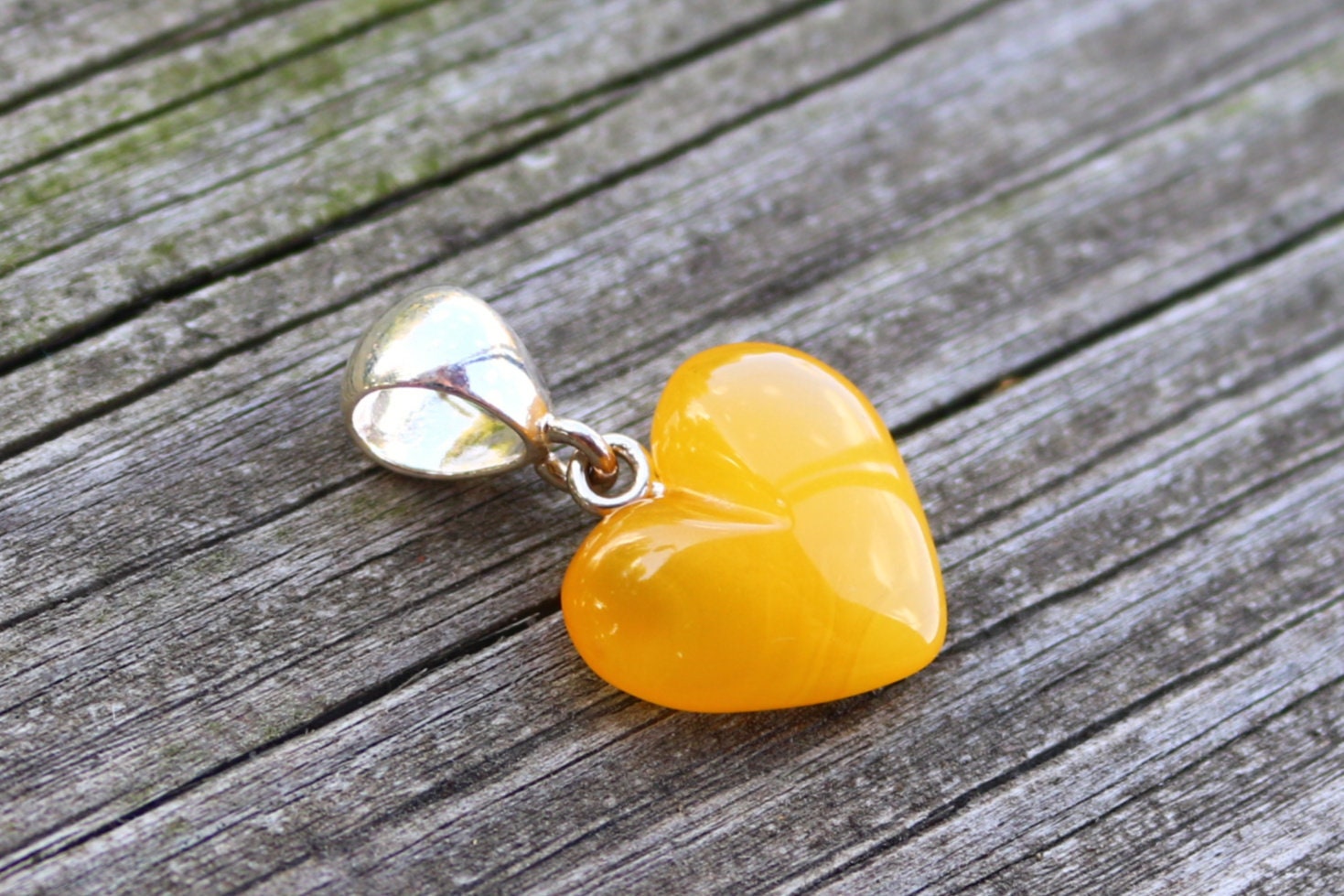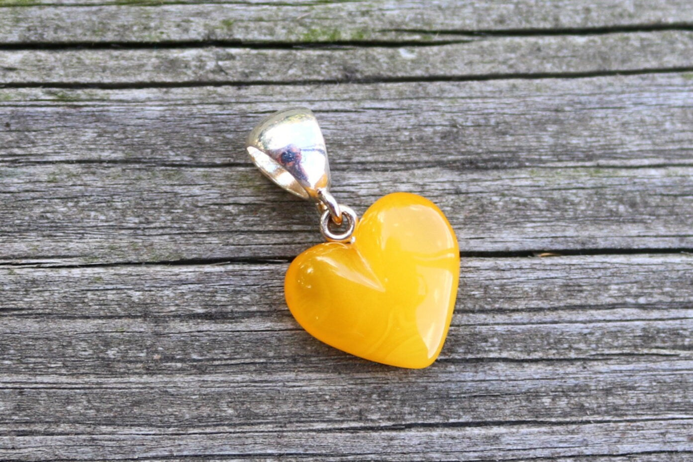 Baltic Amber Heart Butterscotch Pendant Yolk Natural Untreated 1.05" 1.7 gram 925 silver