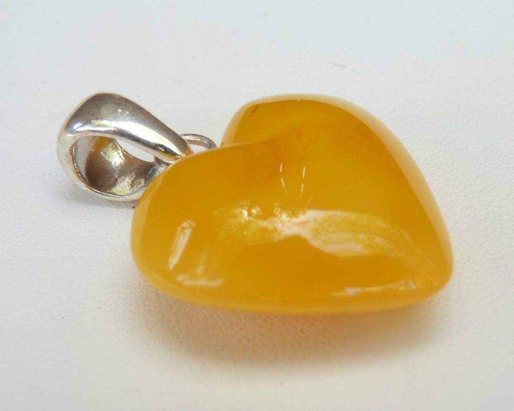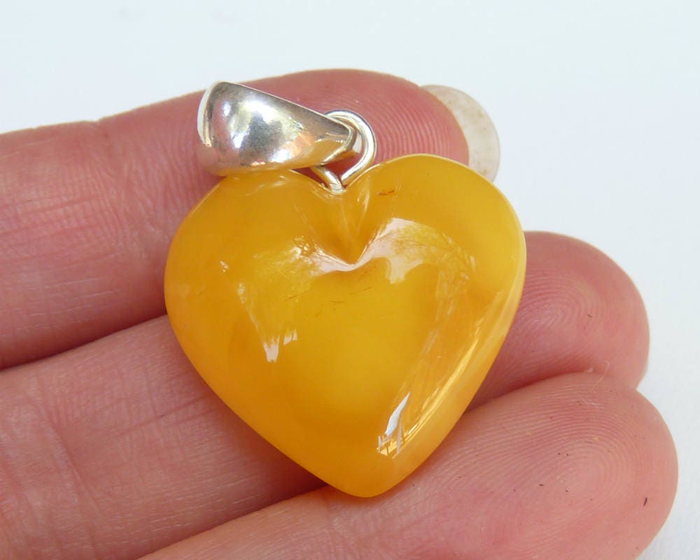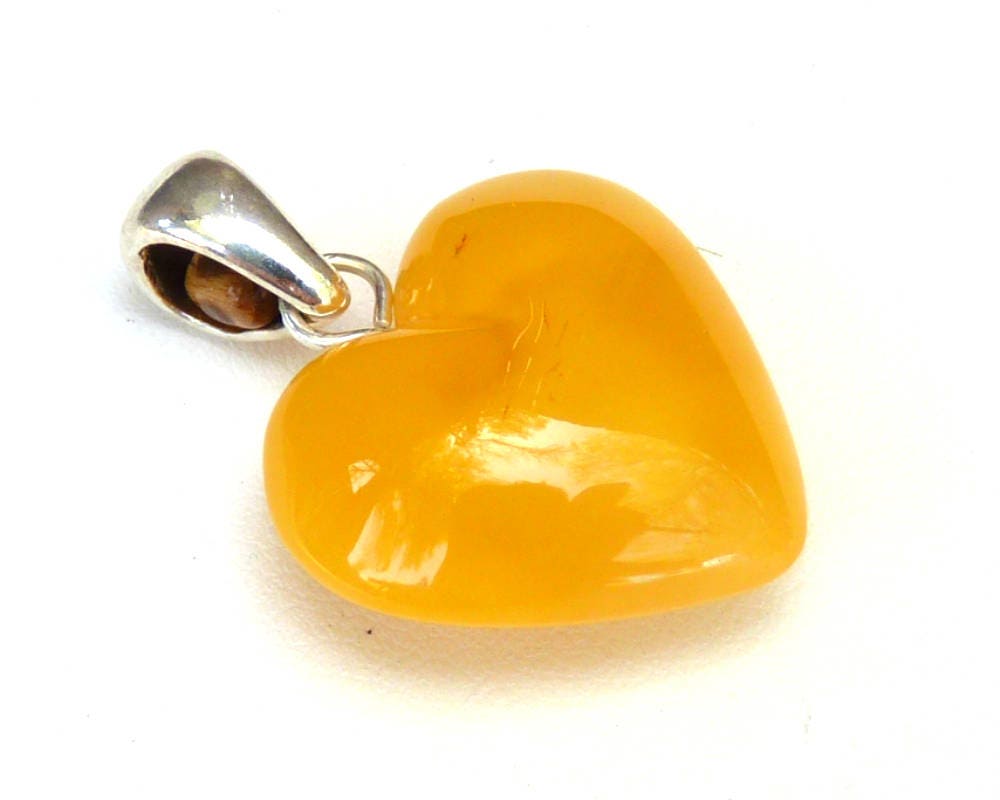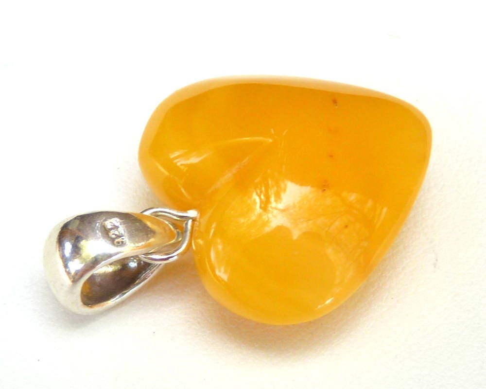 Baltic Amber heart pendant in antique butterscotch (yolk) color with perfect smooth surface. The heart is hand carved and polished. Set in 925 sterling silver.