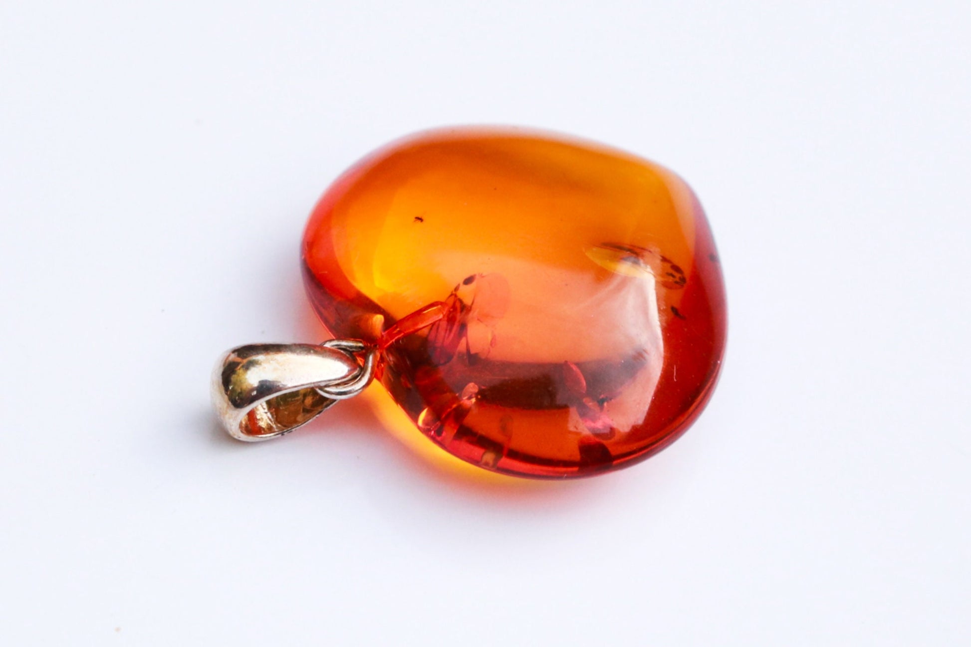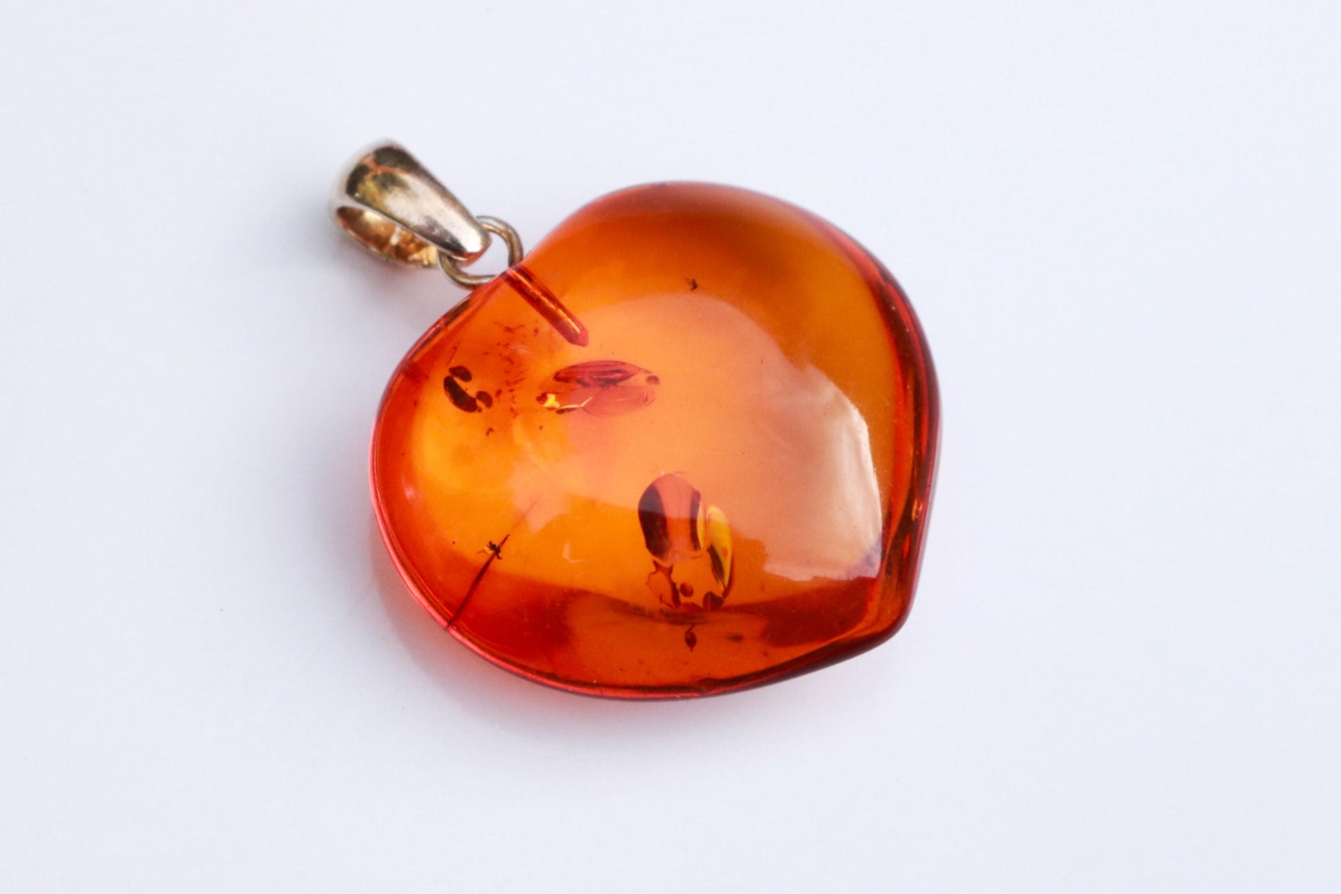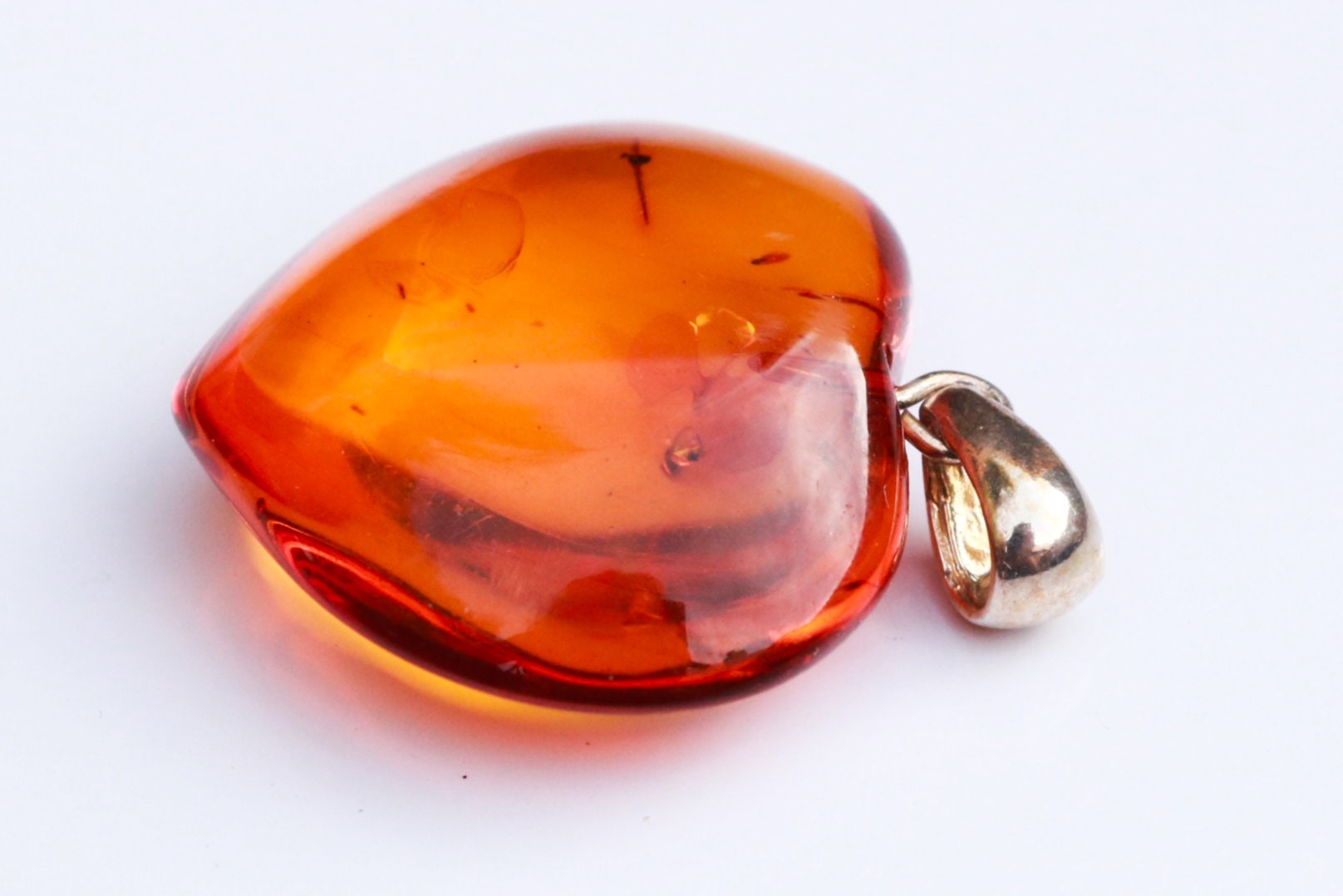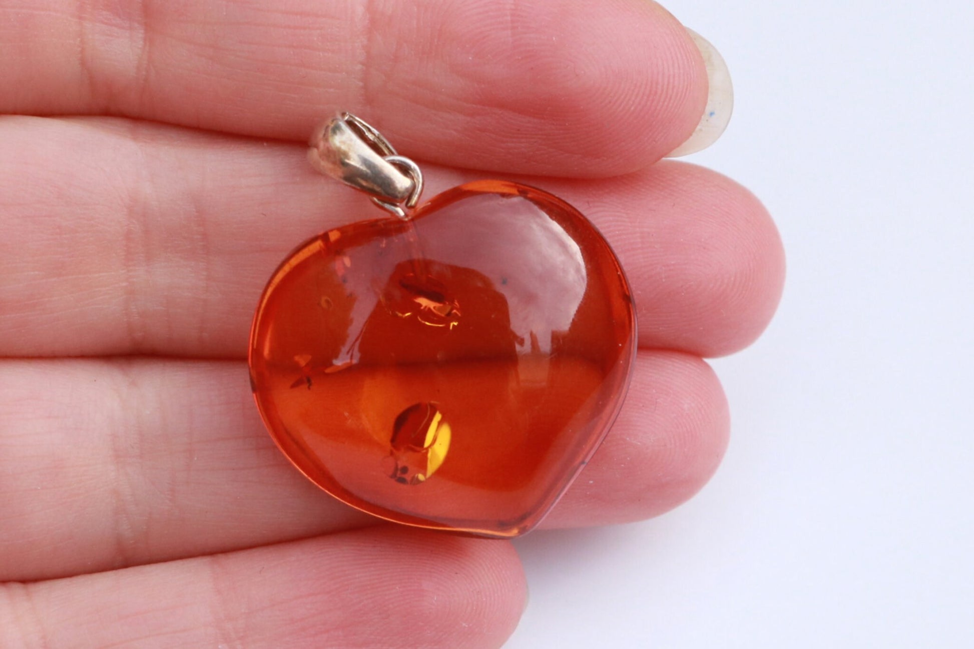 Baltic amber hand carved heart pendant in sparkling honey color.