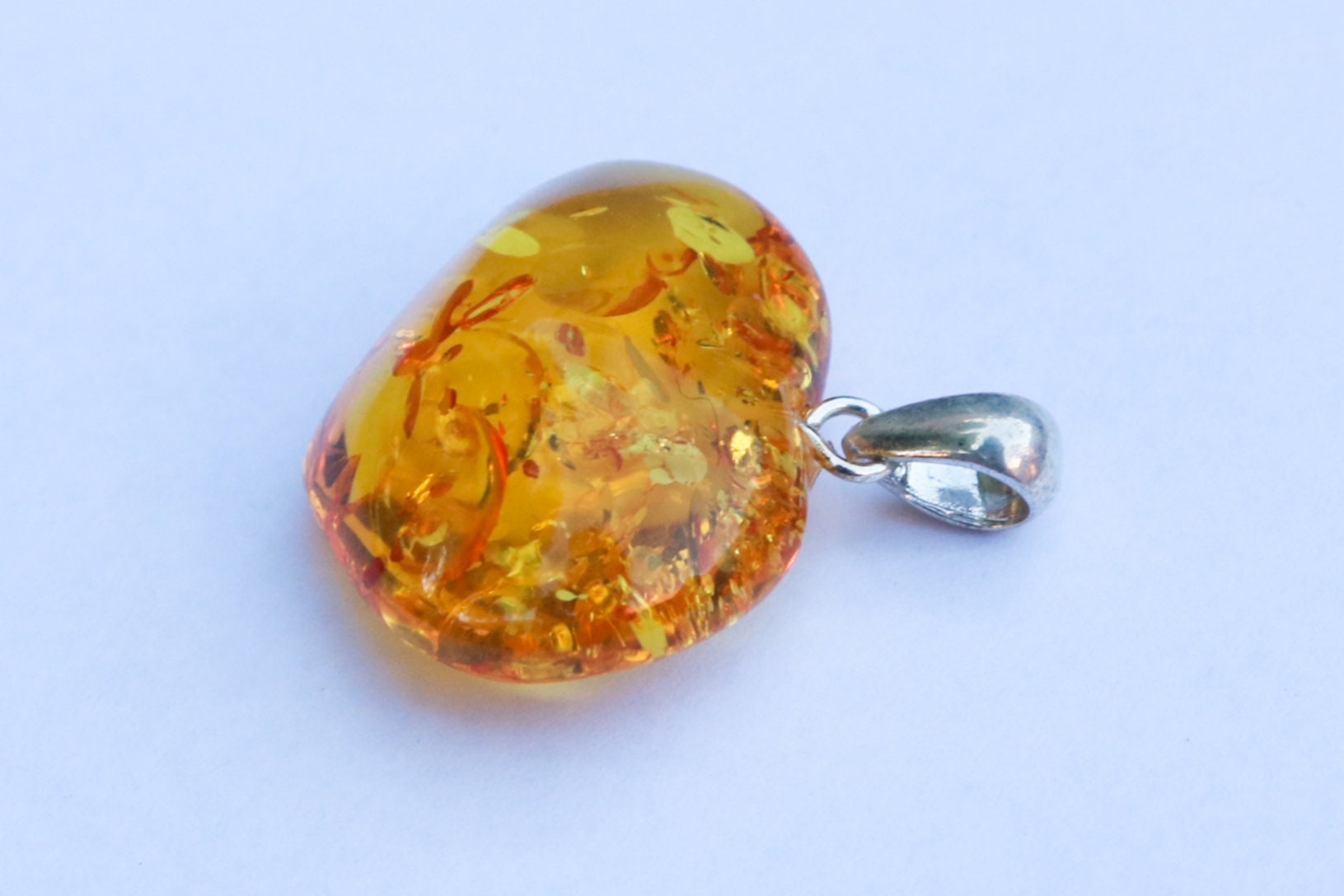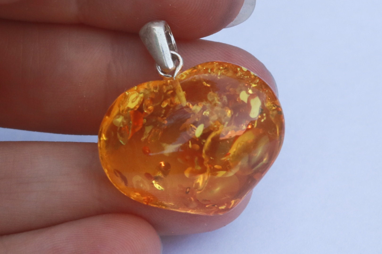 Baltic Amber Heart Pendant Yellow Lemon Sparkling 1.2" 3.9 gram 925 Silver