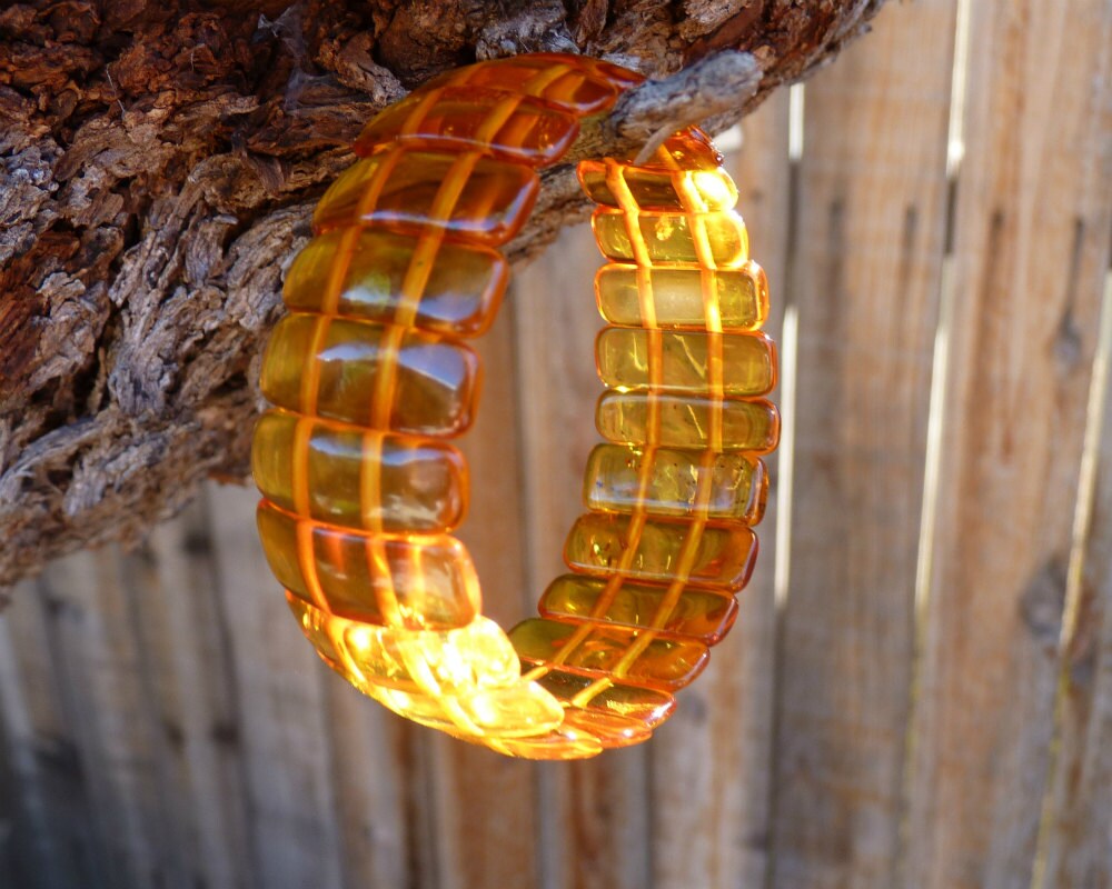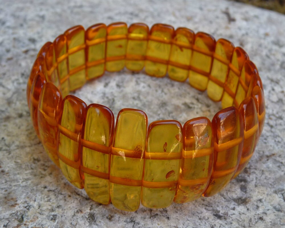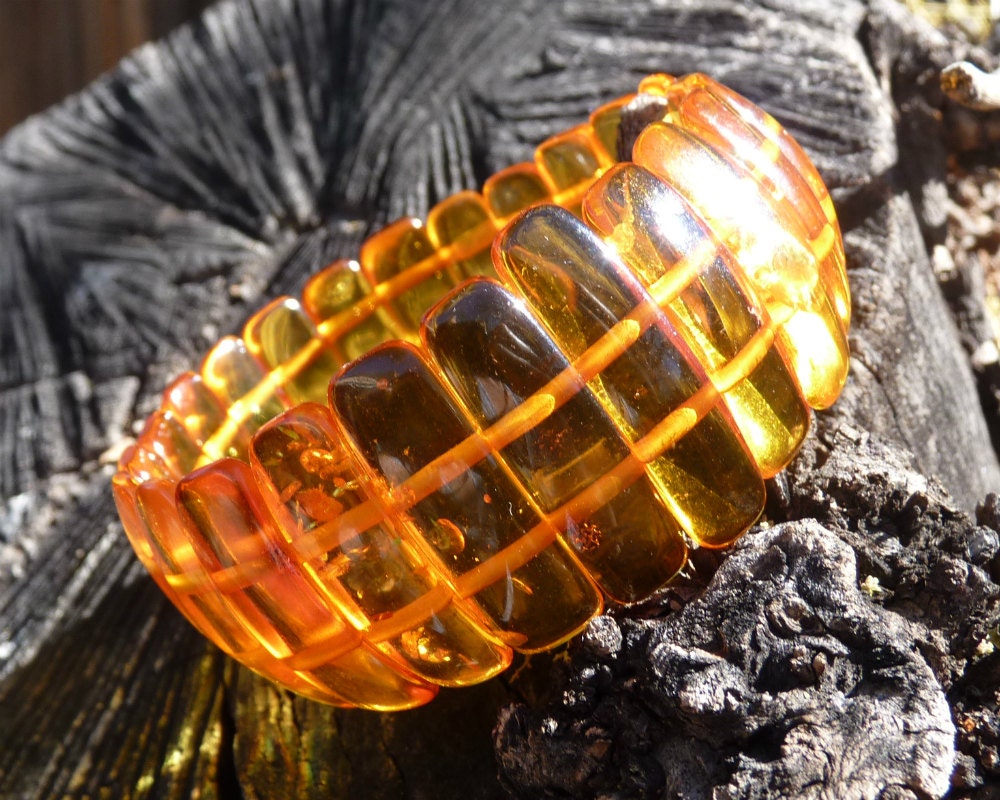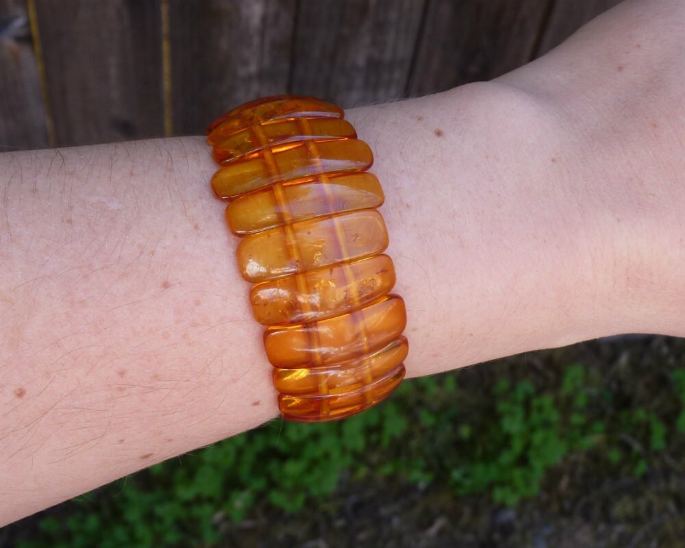 Baltic Amber bracelet in transparent natural untreated honey color hand carved beads.