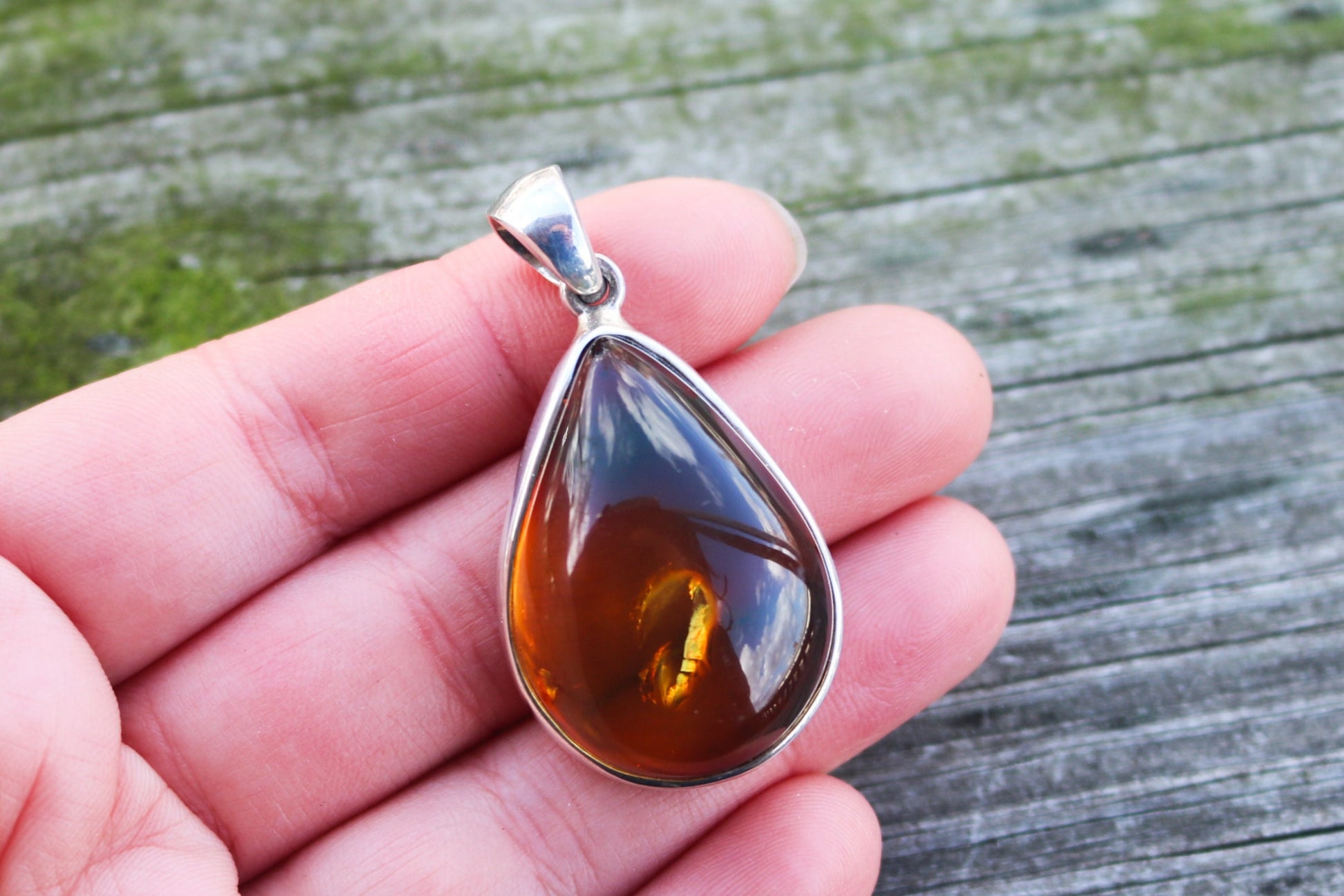 Baltic Amber Honey Pendant Drop Natural Unisex Jewelry 1.84" 13.2 gram 925 Silver