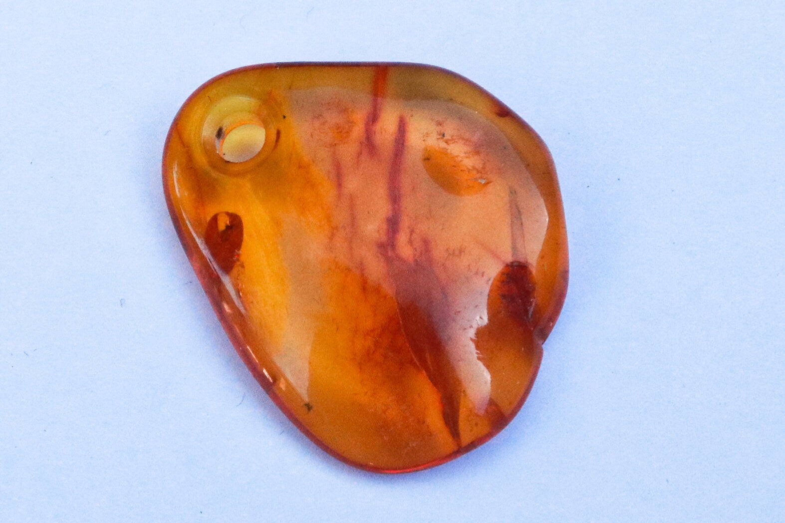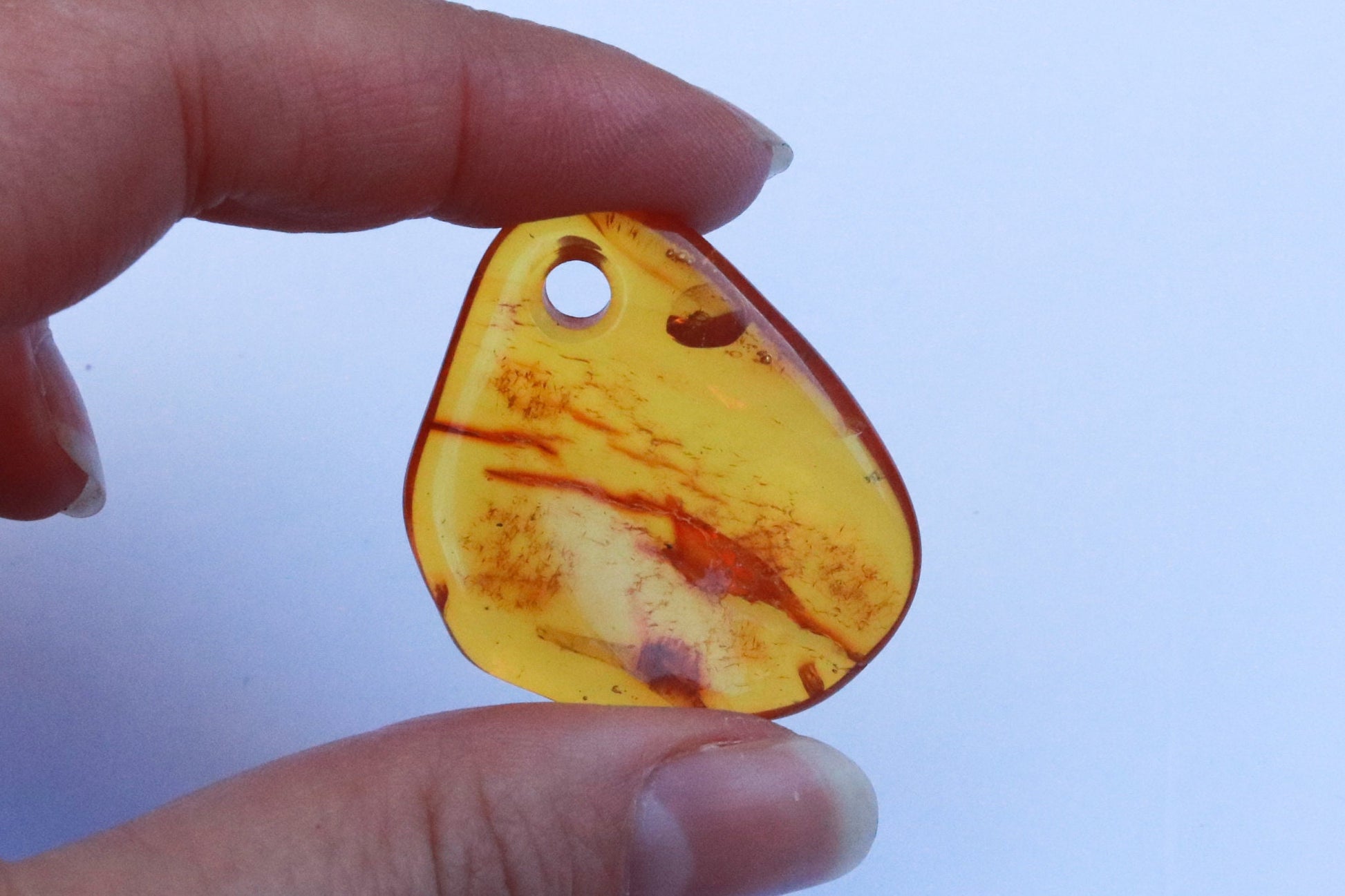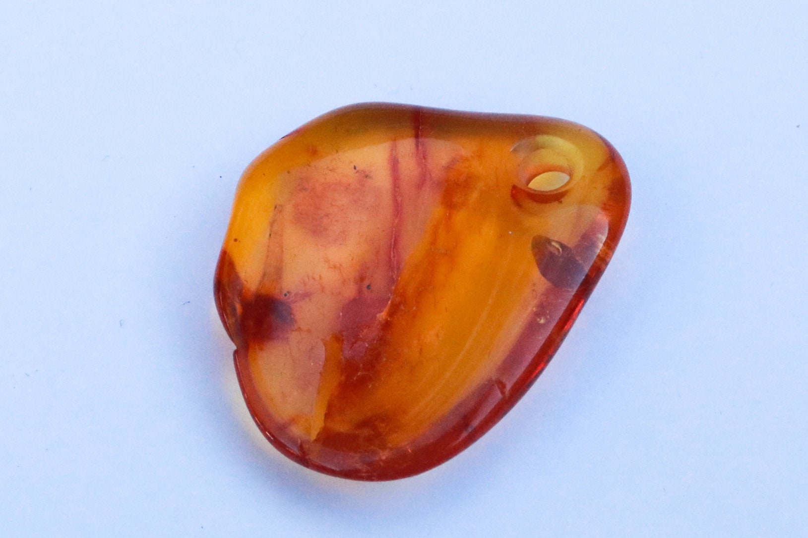 Baltic amber pendant in natural untreated translucent honey color. Polished and shiny piece of stone.