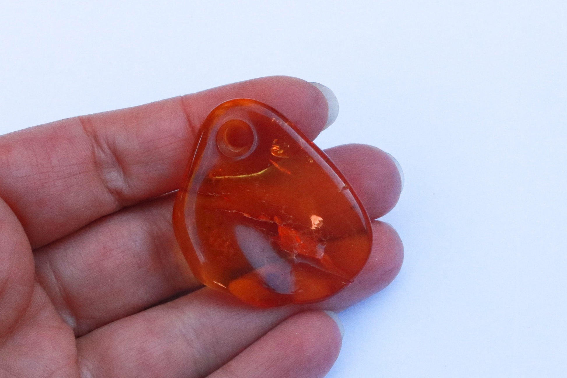 It is probably the most popular, recognizable and one of the most common color, cognac (or whisky) amber comes mainly in treated form (initially transparent yellow), but can be also natural. Slow heating deepens the color, makes it more shimmering and bright than natural. Cognac amber is often autoclaved (treated with high pressure saturated steam at about 120°C/248°F) which results in inner cracking. The steam penetrates the amber’s structure and alter its color. That’s how decorative bubbles (or so-called “scales”) and shiny discs are created. Heating is a very cold technique that has been in use for hundreds of years to enhance amber’s natural color while autoclaving has been developed in the second half of the 20th century. There are several shades of cognac amber, varying from light honey to dark cognac, almost cherry shade.