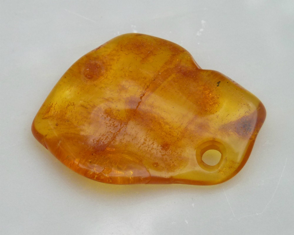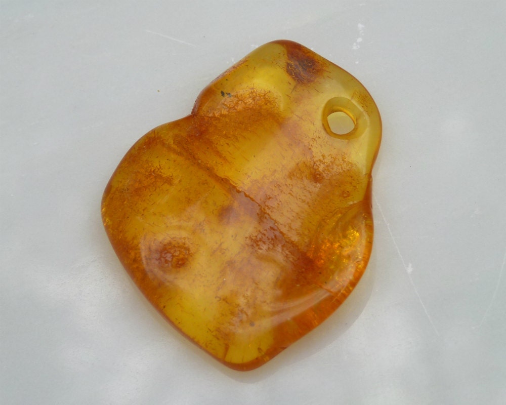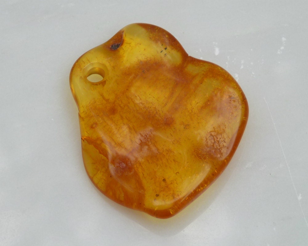 Baltic amber pendant in natural untreated translucent honey color. Polished and shiny piece of stone.