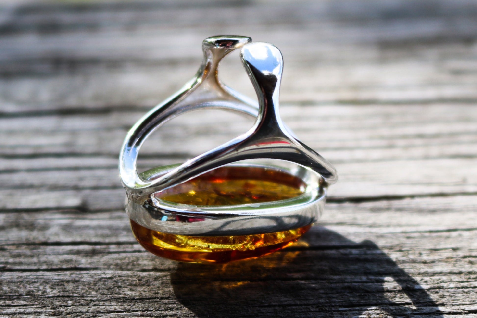 Baltic Amber ring in gorgeous sparkling honey color. Set in 925 sterling silver.