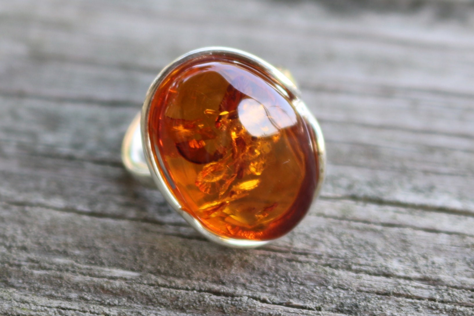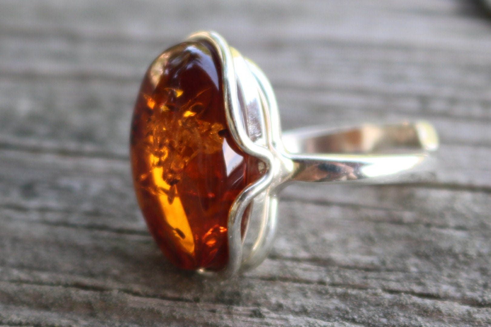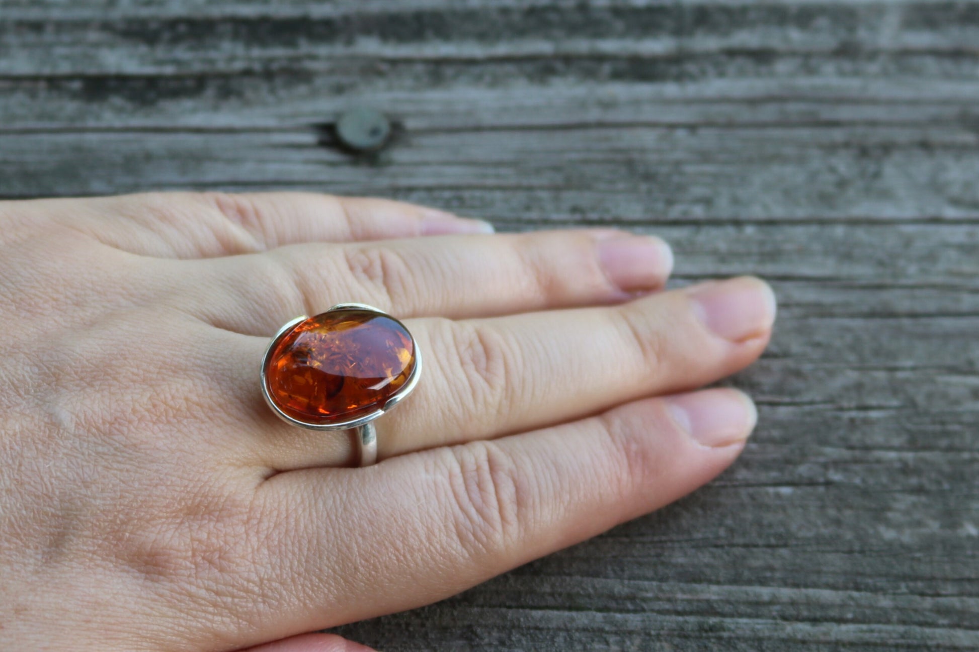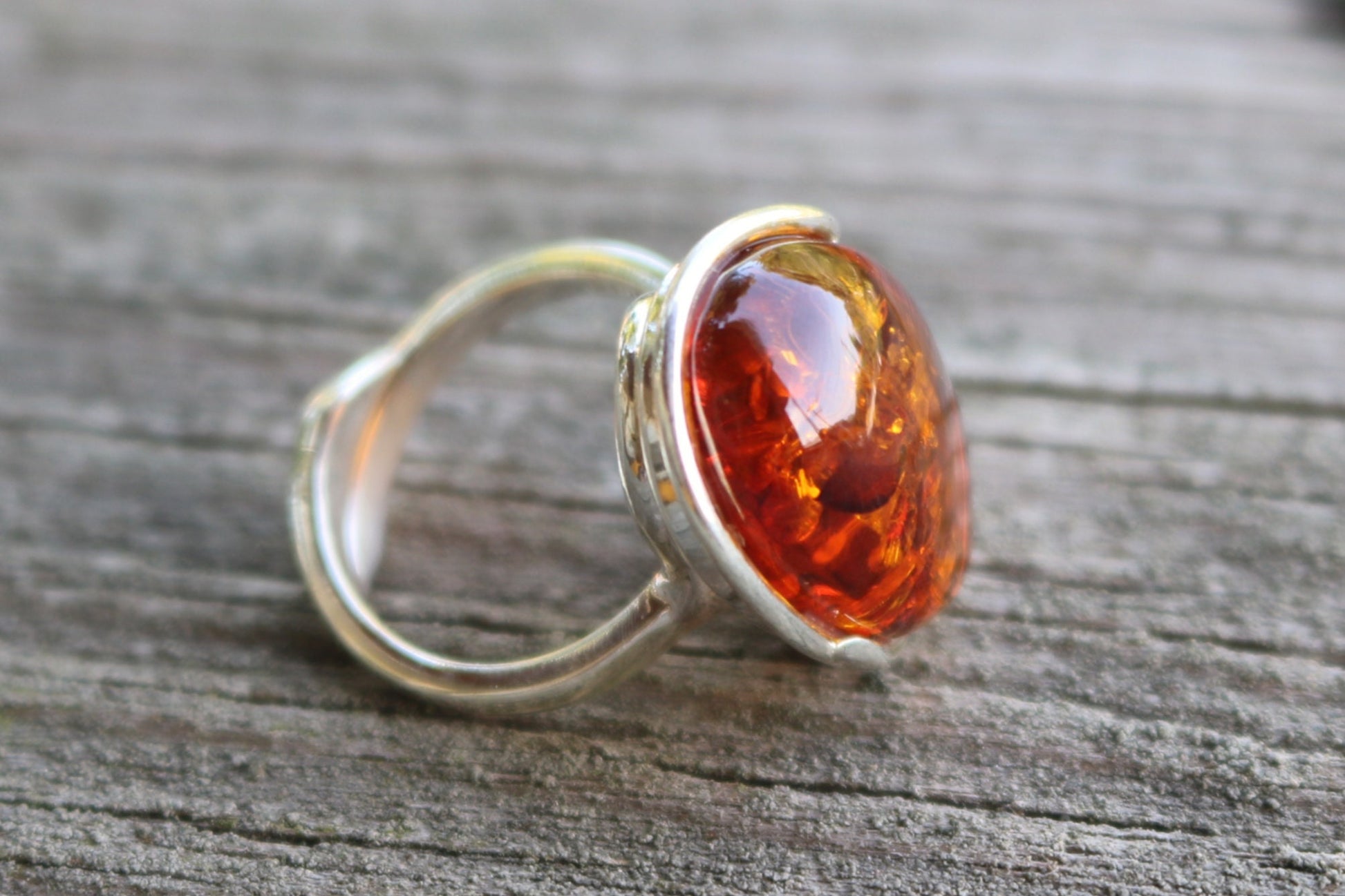 Baltic Amber Honey Ring Adjustable Natural Sparkling Oval 925 Silver 9.8 gram 925 Silver