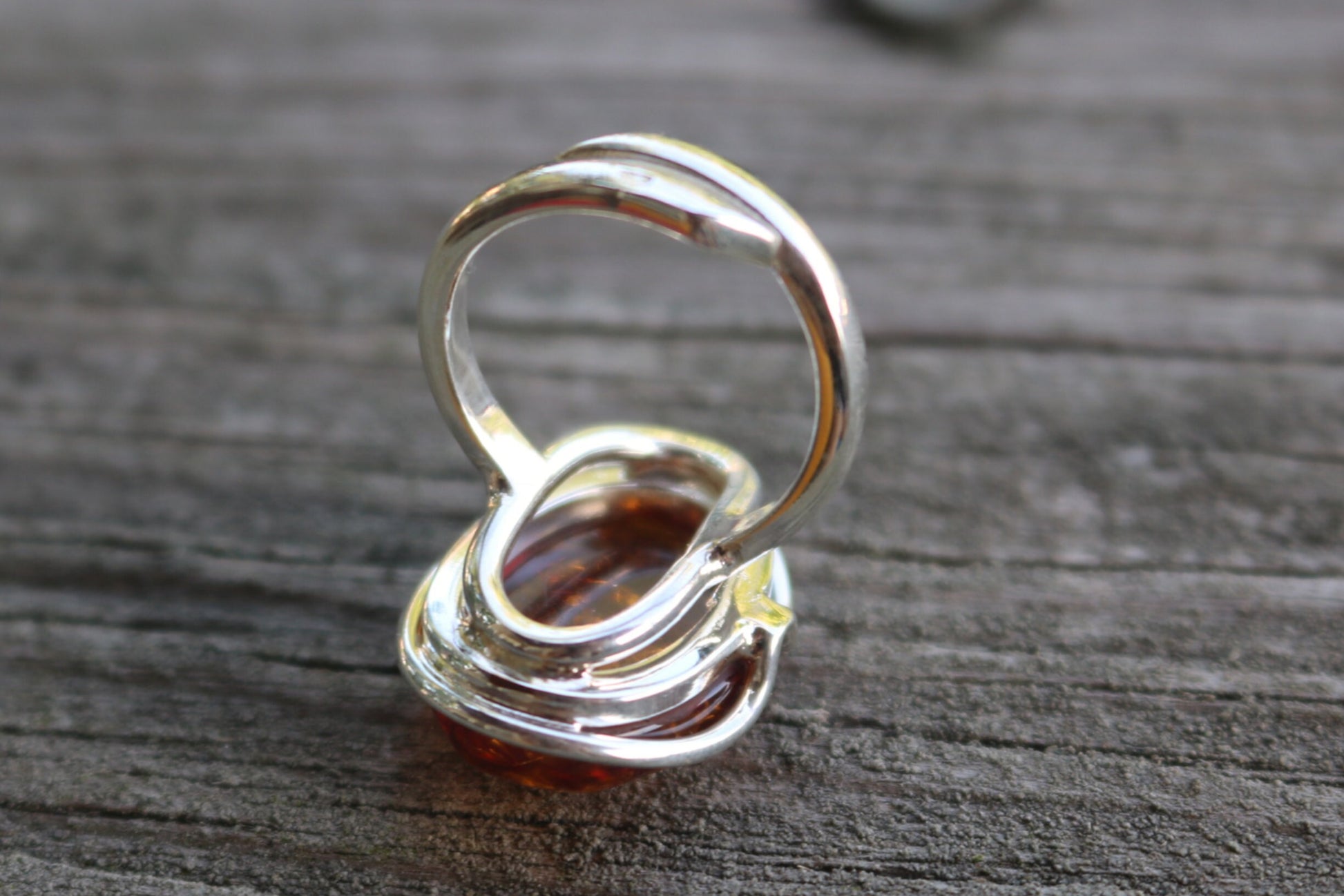 Baltic Amber ring in gorgeous sparkling honey color. Set in 925 sterling silver.