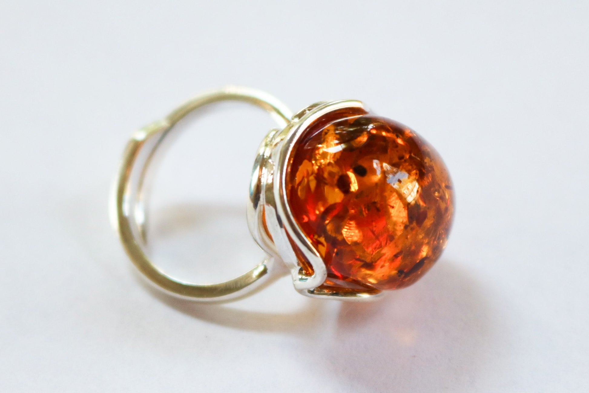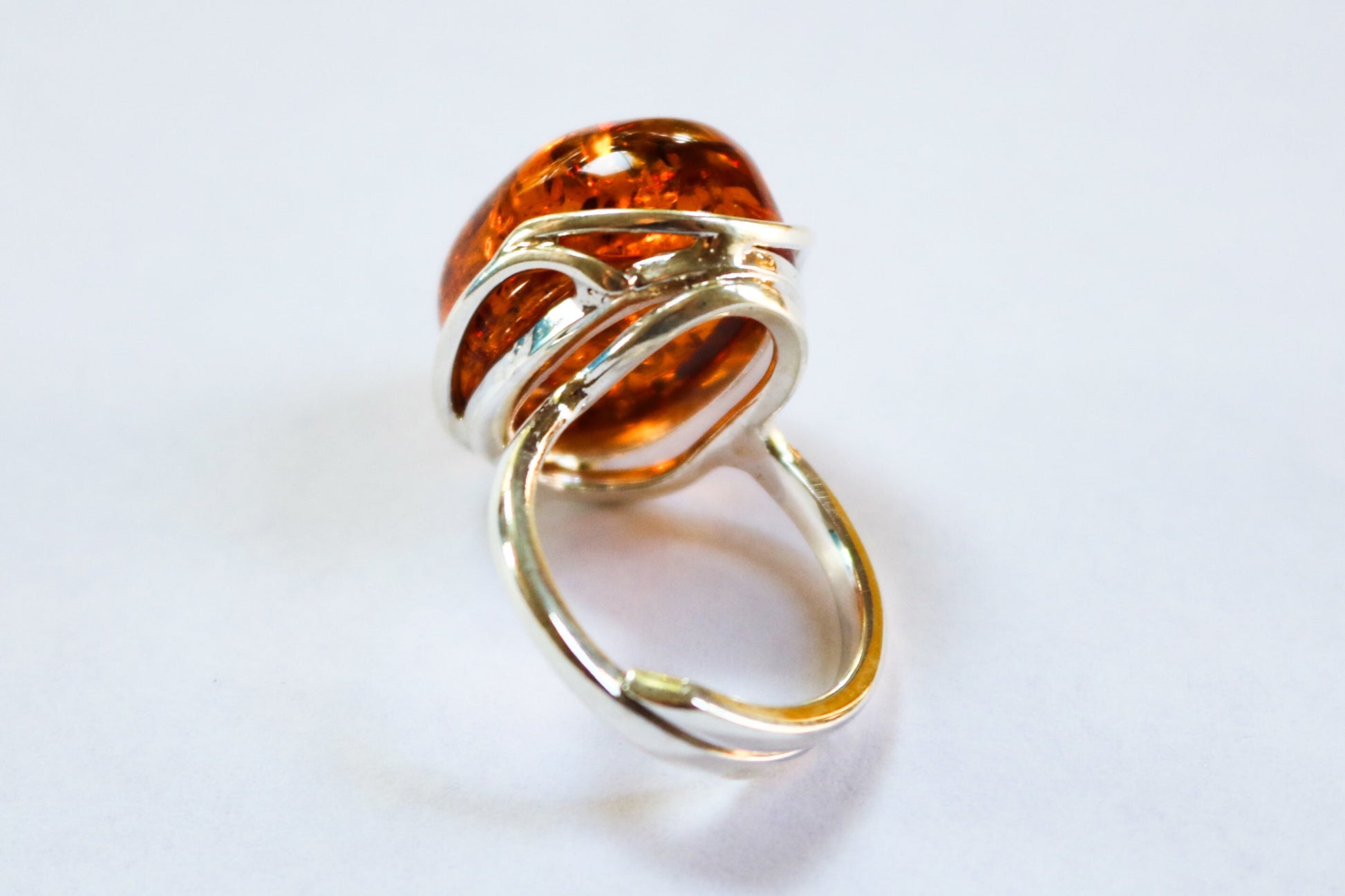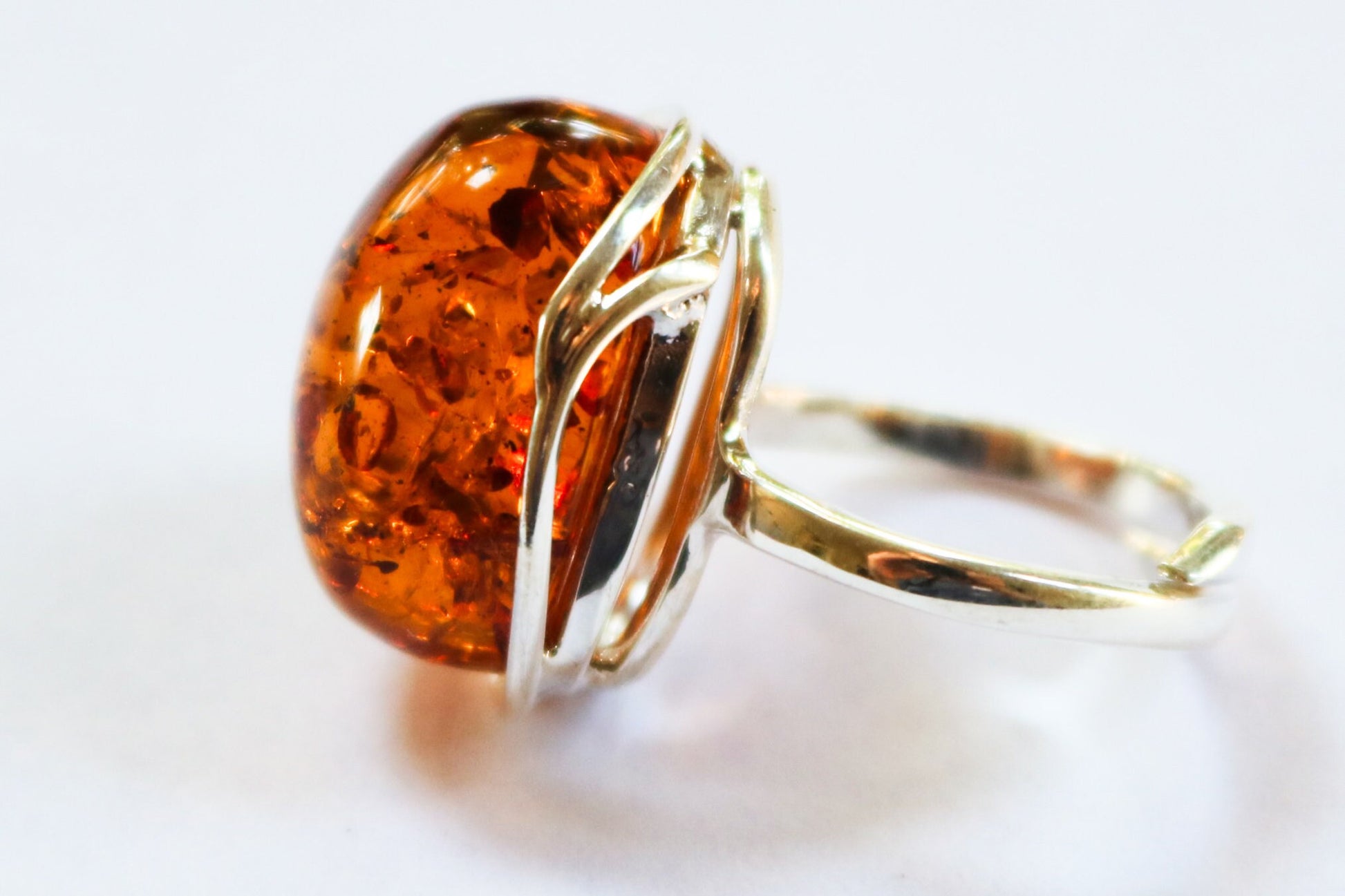 Baltic Amber ring in sparkling honey color. Set in 925 sterling silver. Natural solid stone. This ring is adjustable. Will fit any size.