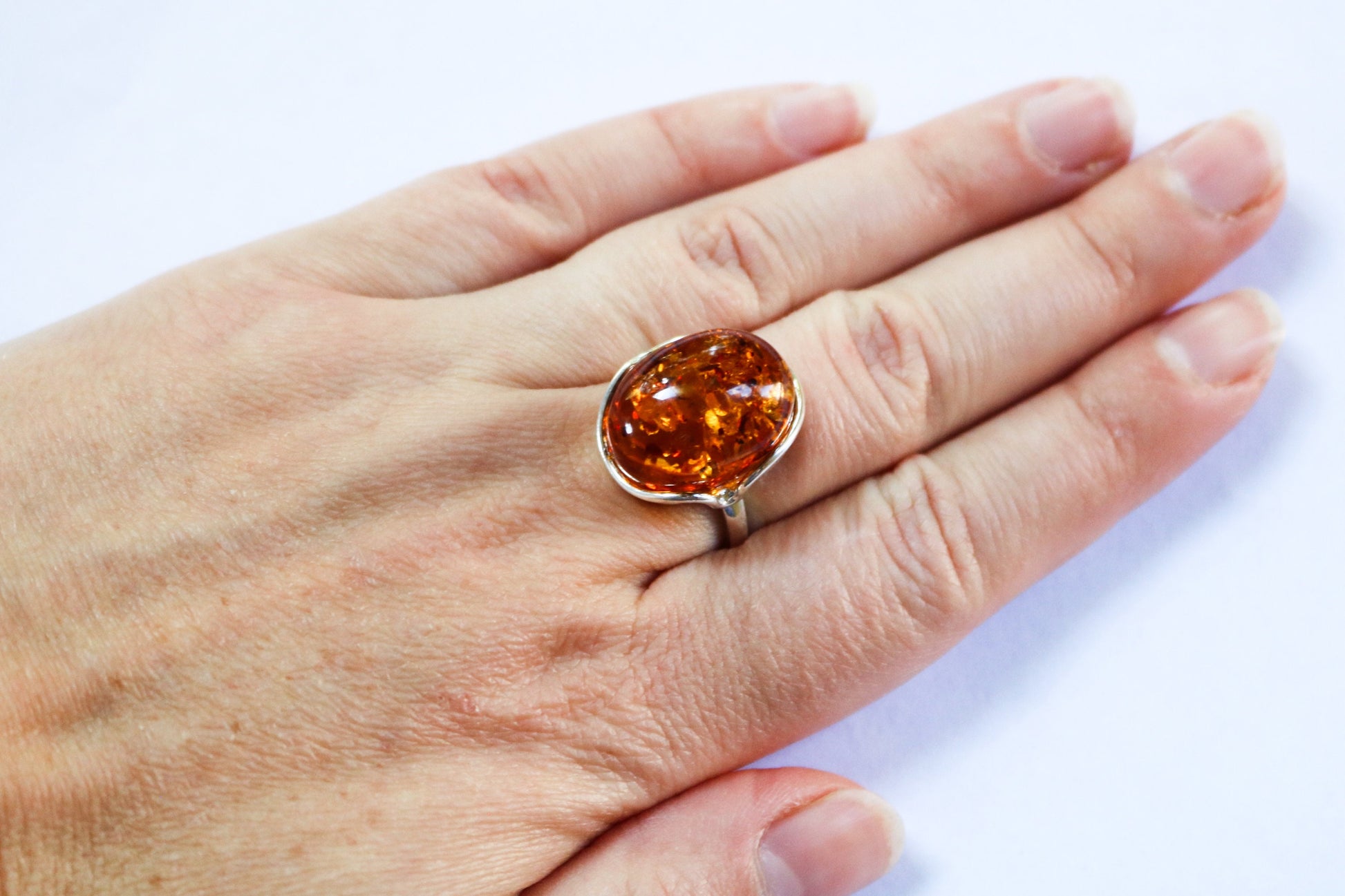 Baltic Amber Honey Ring Adjustable Oval Natural Jewelry 925 Silver 7.7 gram