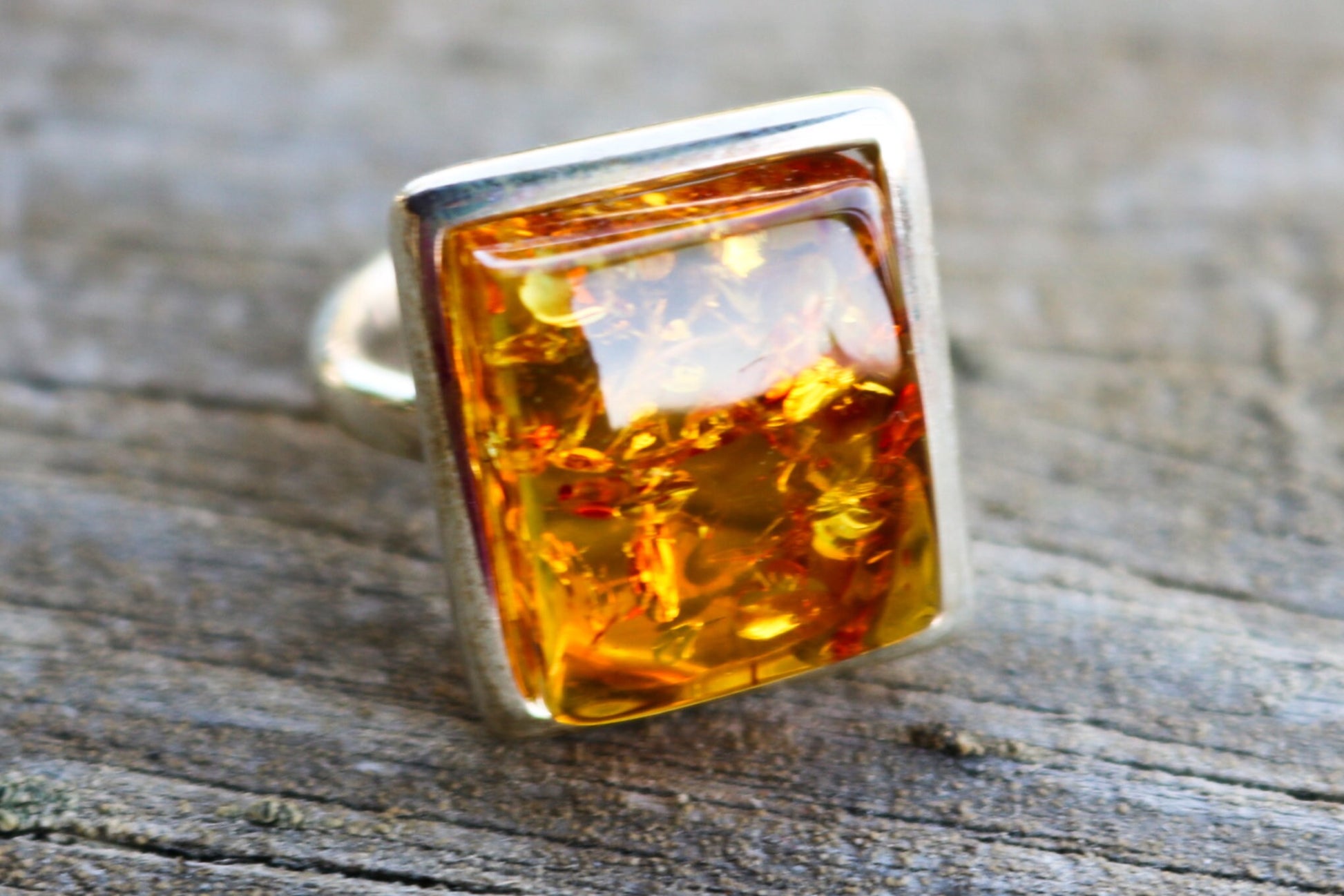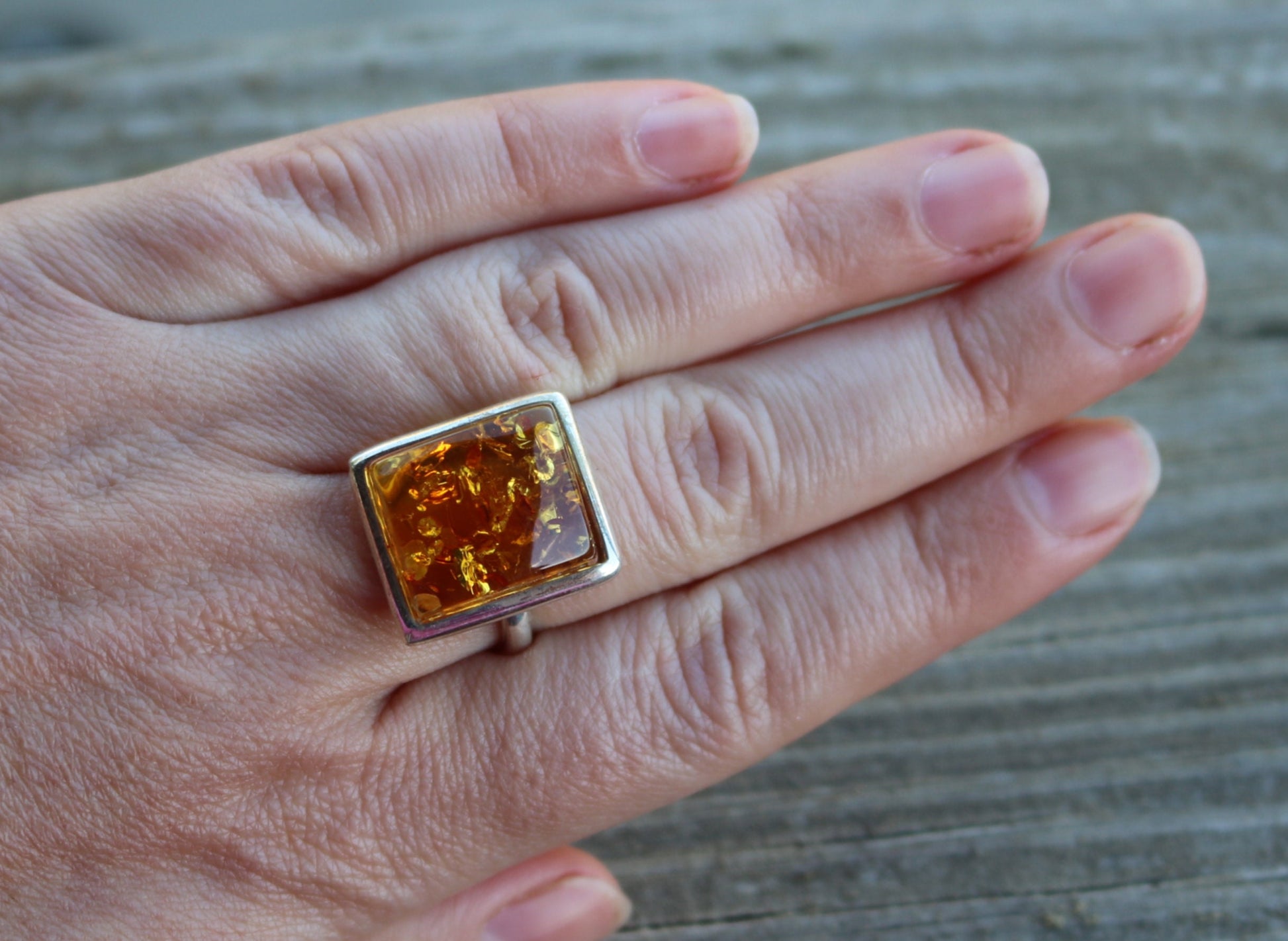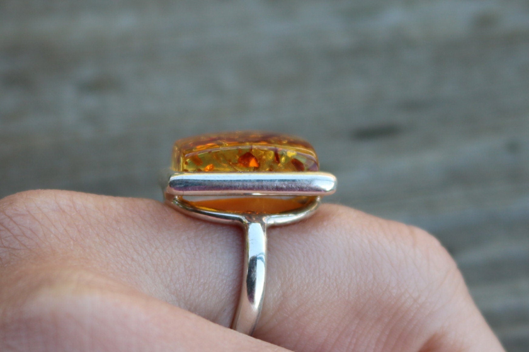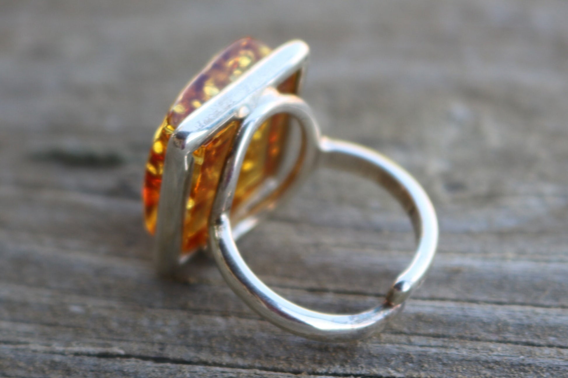 Baltic Amber Honey Ring Adjustable Square Natural Jewelry 925 Silver 8.7 gram