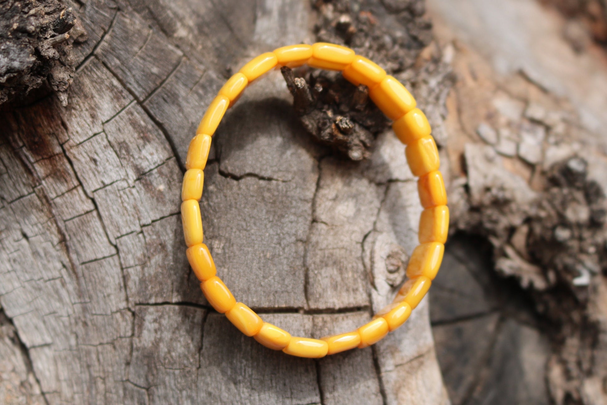 Baltic Amber bracelet made out of antique butterscotch (yolk) color beads. This is natural amber: each bead is hand carved out of solid piece of amber.