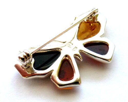 Baltic Amber multicolor butterfly pin/brooch set in 925 sterling silver. Nice petite design.