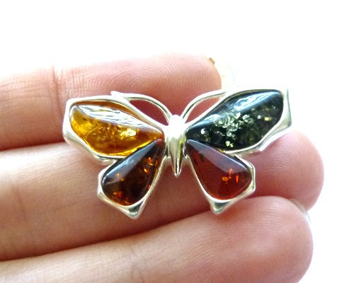 Baltic Amber Jewelry Butterfly Pin Brooch Multicolor 925 Silver