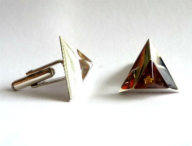 Baltic Amber Jewelry Cuff Links Triangle Unisex Cognac Geometric Natural 925 silver