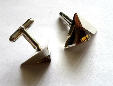 The cufflinks have a sculpted archy shape. Classic shape.