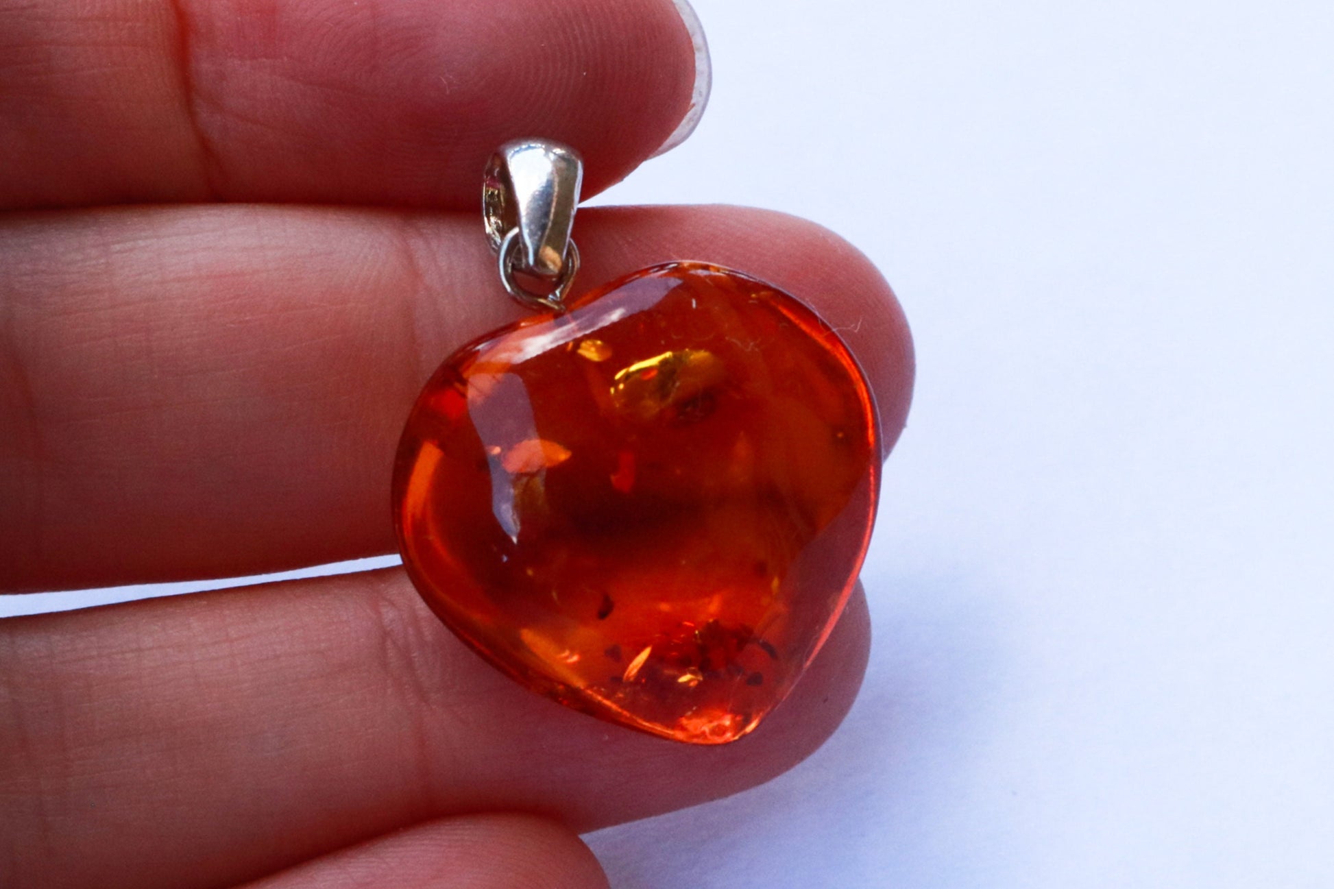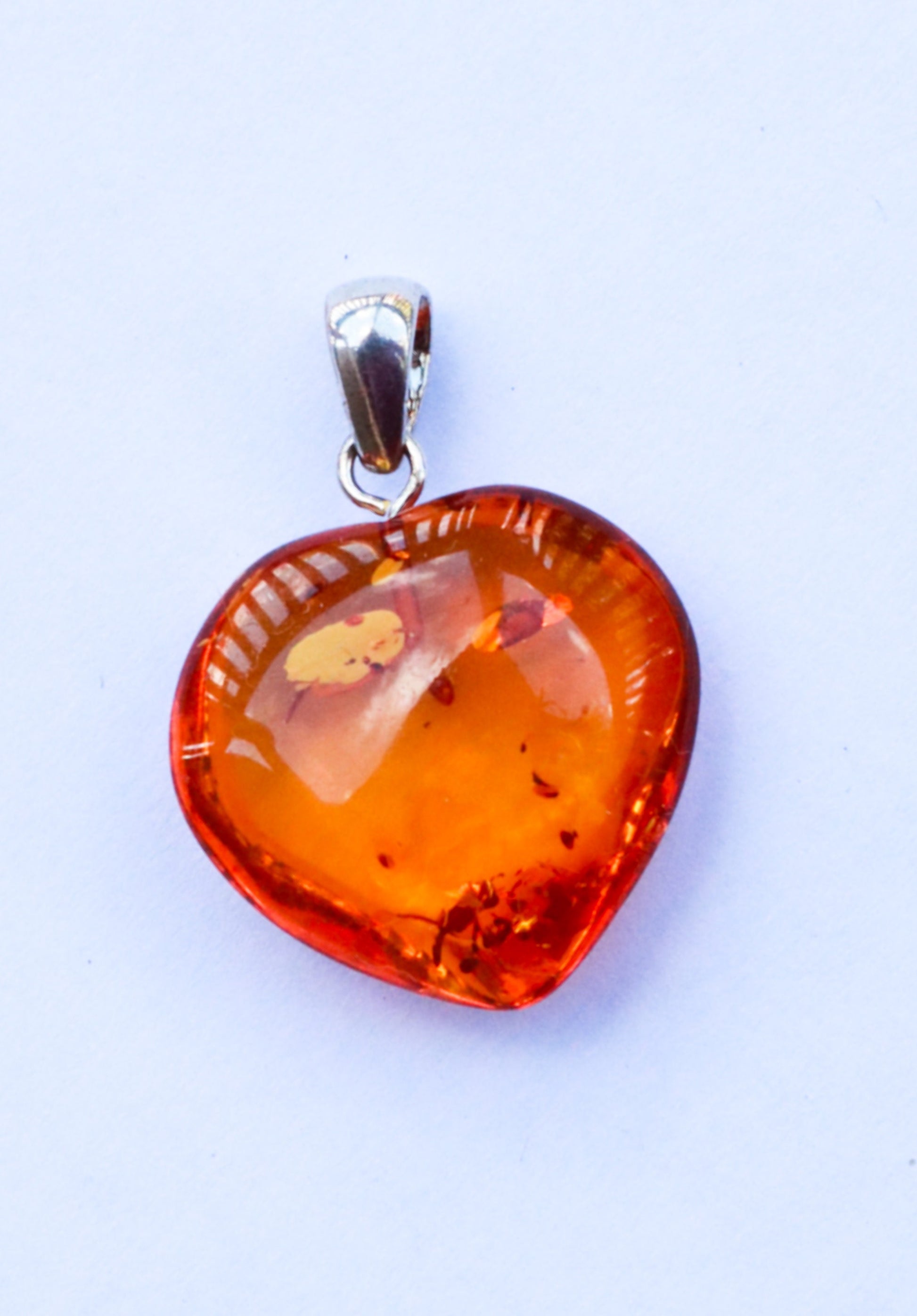 Baltic Amber sparkling honey heart pendant. Bright, fully translucent color.