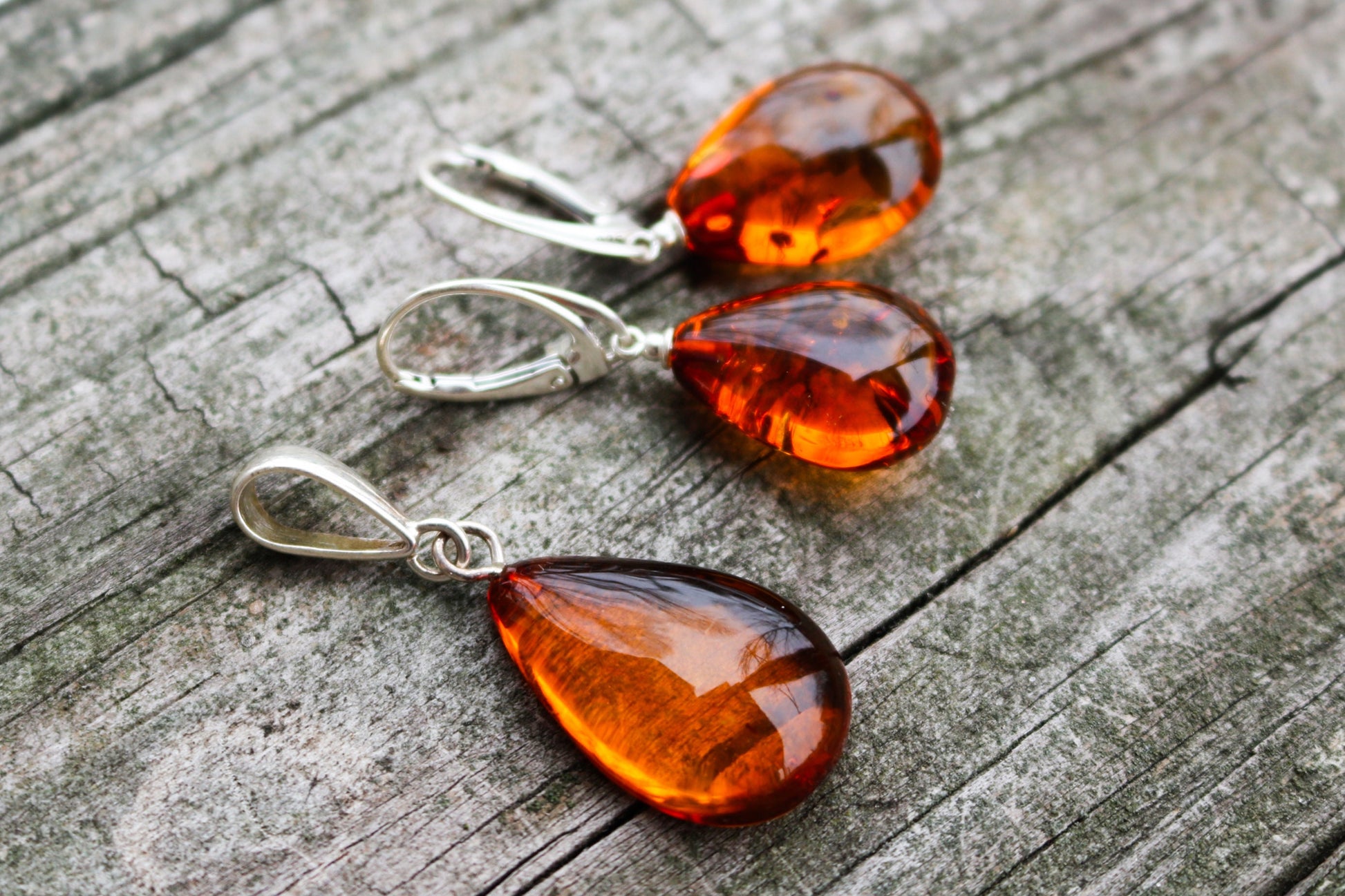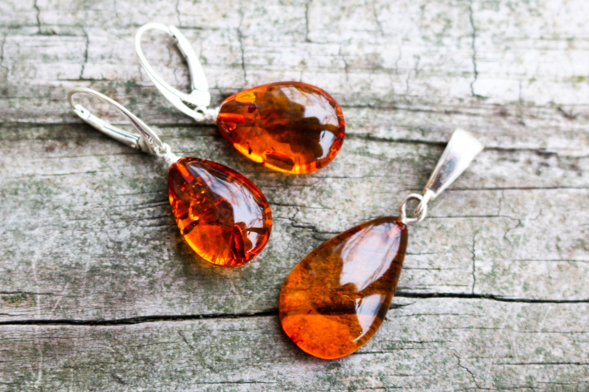 Baltic Amber Jewelry Set Honey Pendand Earrings Drop Natural 7.2 gram 925 Silver