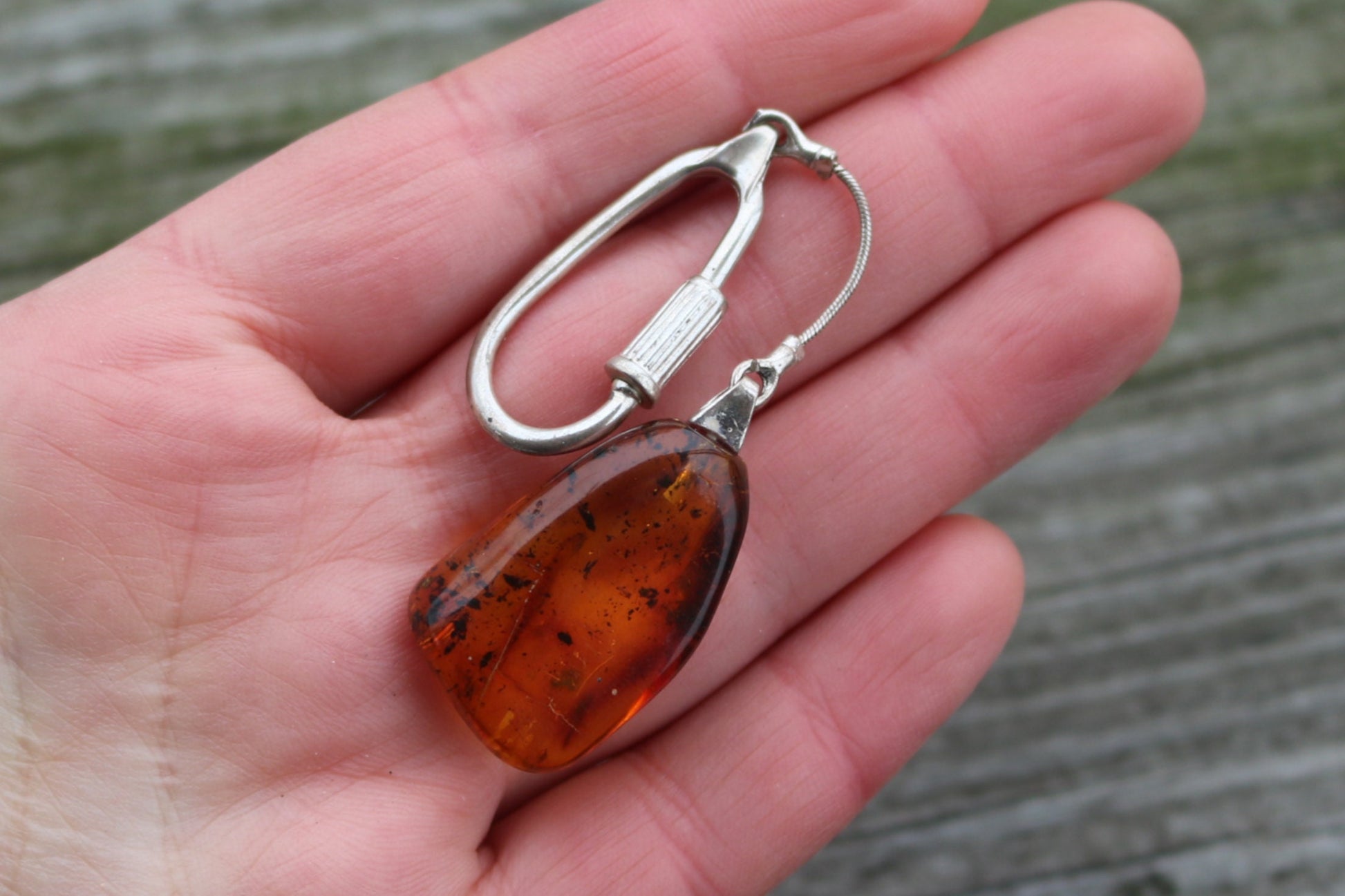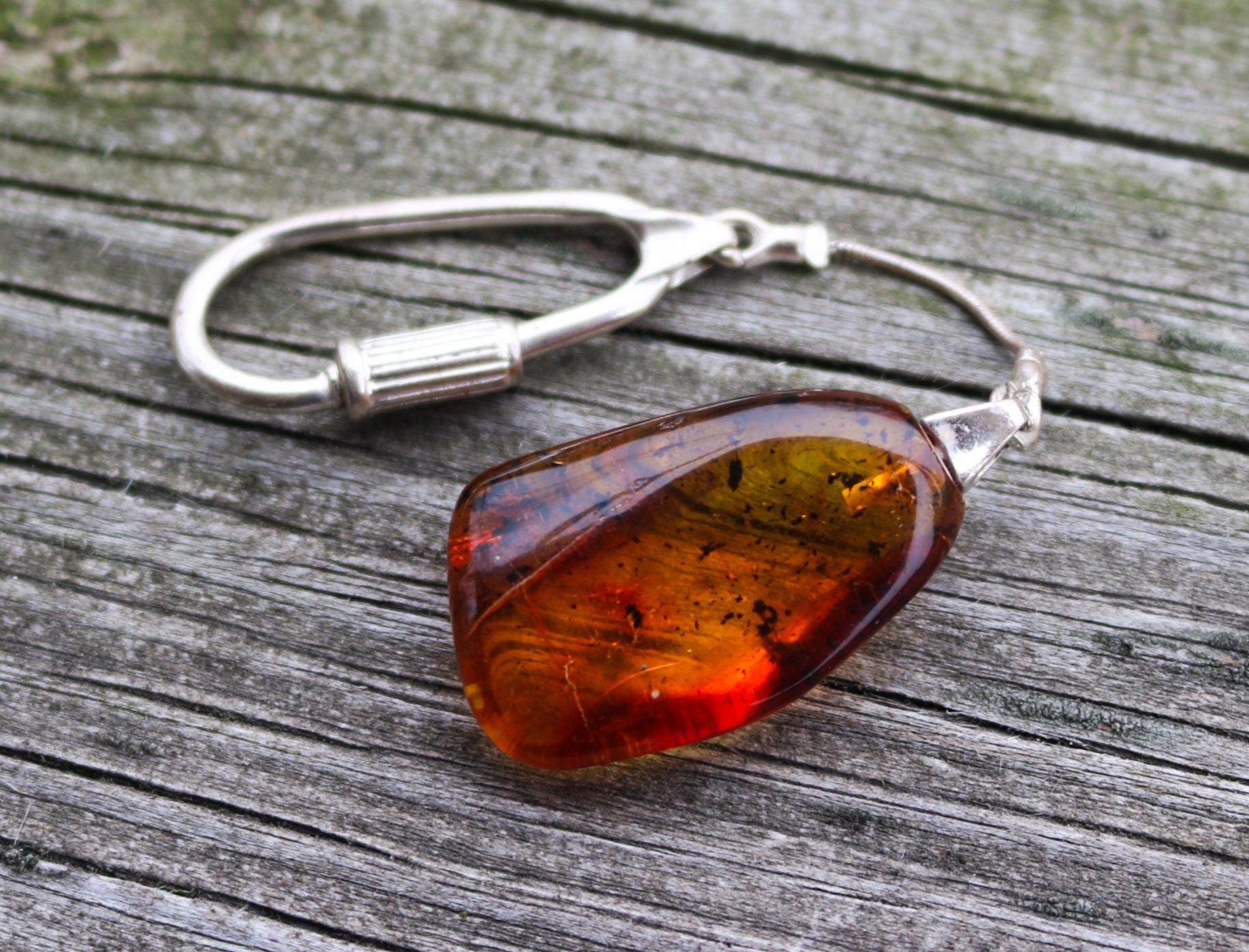 Baltic Amber Keychain with Fossil Insect Inclusions Natural 7.5 gram 925 Silver