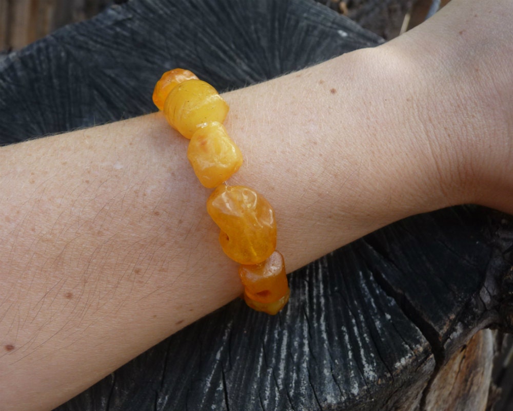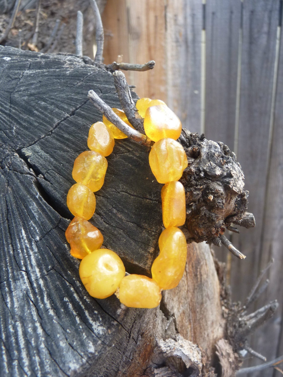 Baltic Amber Nodule Drop Bracelet Untreated Raw Natural Honey Unisex 8″ 16.3 gram