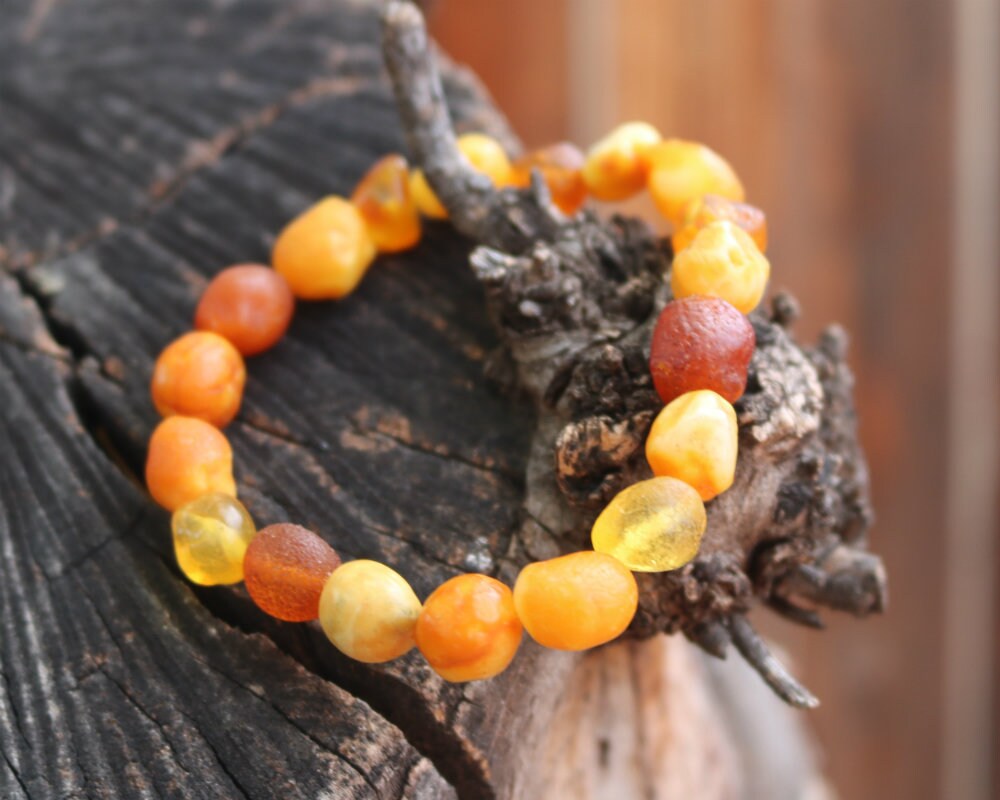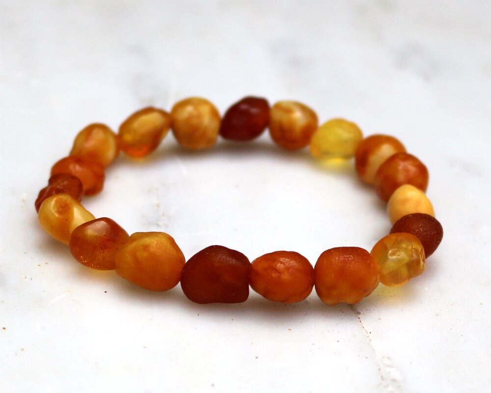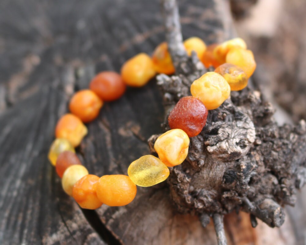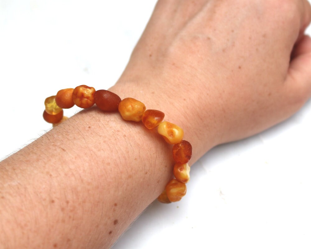 Baltic Amber bracelet made out of natural untreated nodules, opaque and semi-transparent.