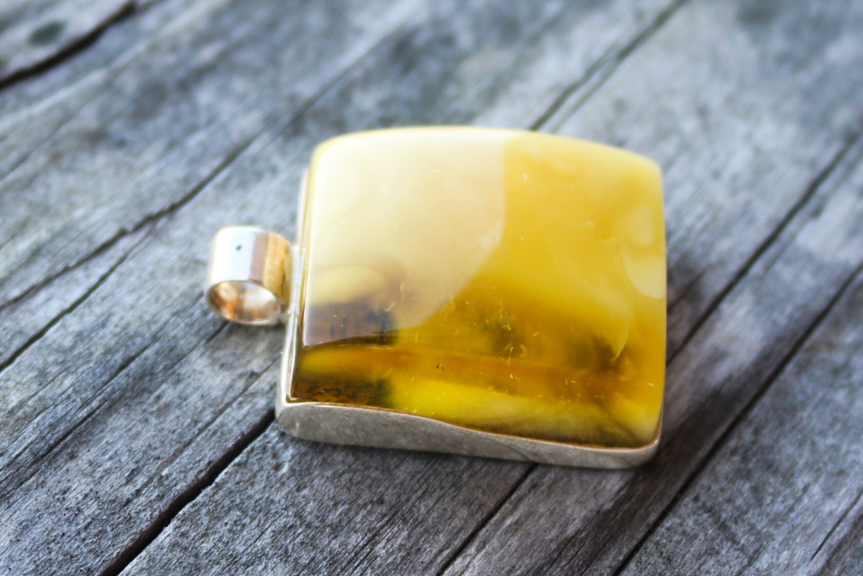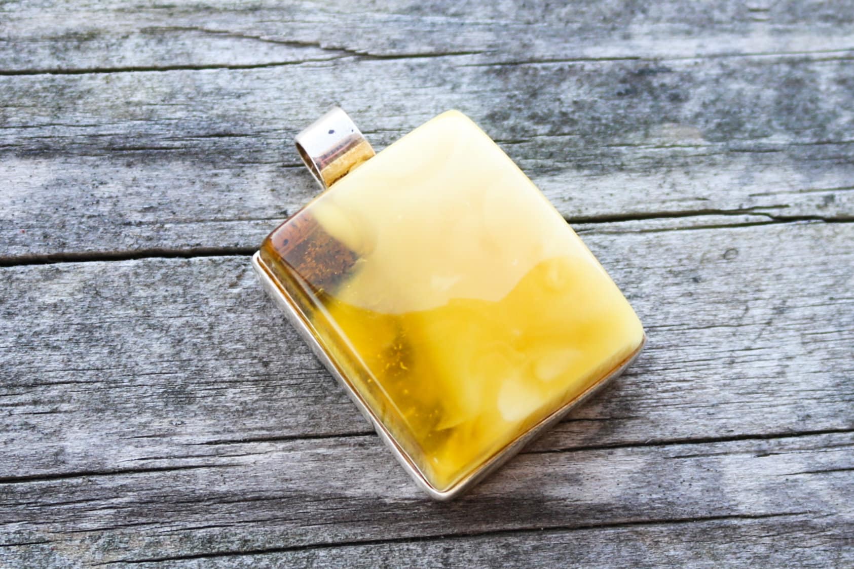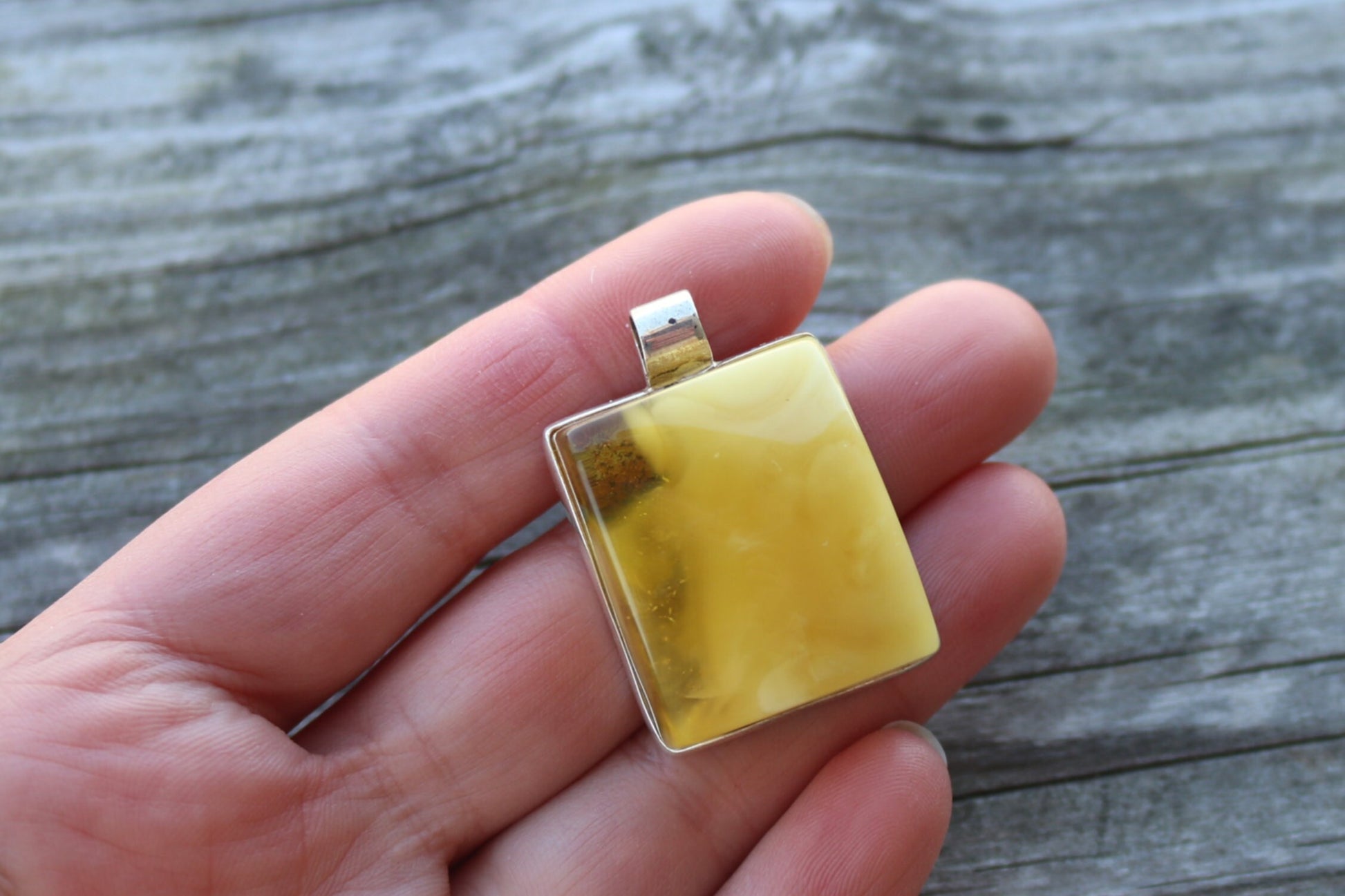 Baltic Amber Pendant Butterscotch Cloudy Rectangle Natural Untreated Unisex Jewelry 1.5" 15.1 gram 925 Silver