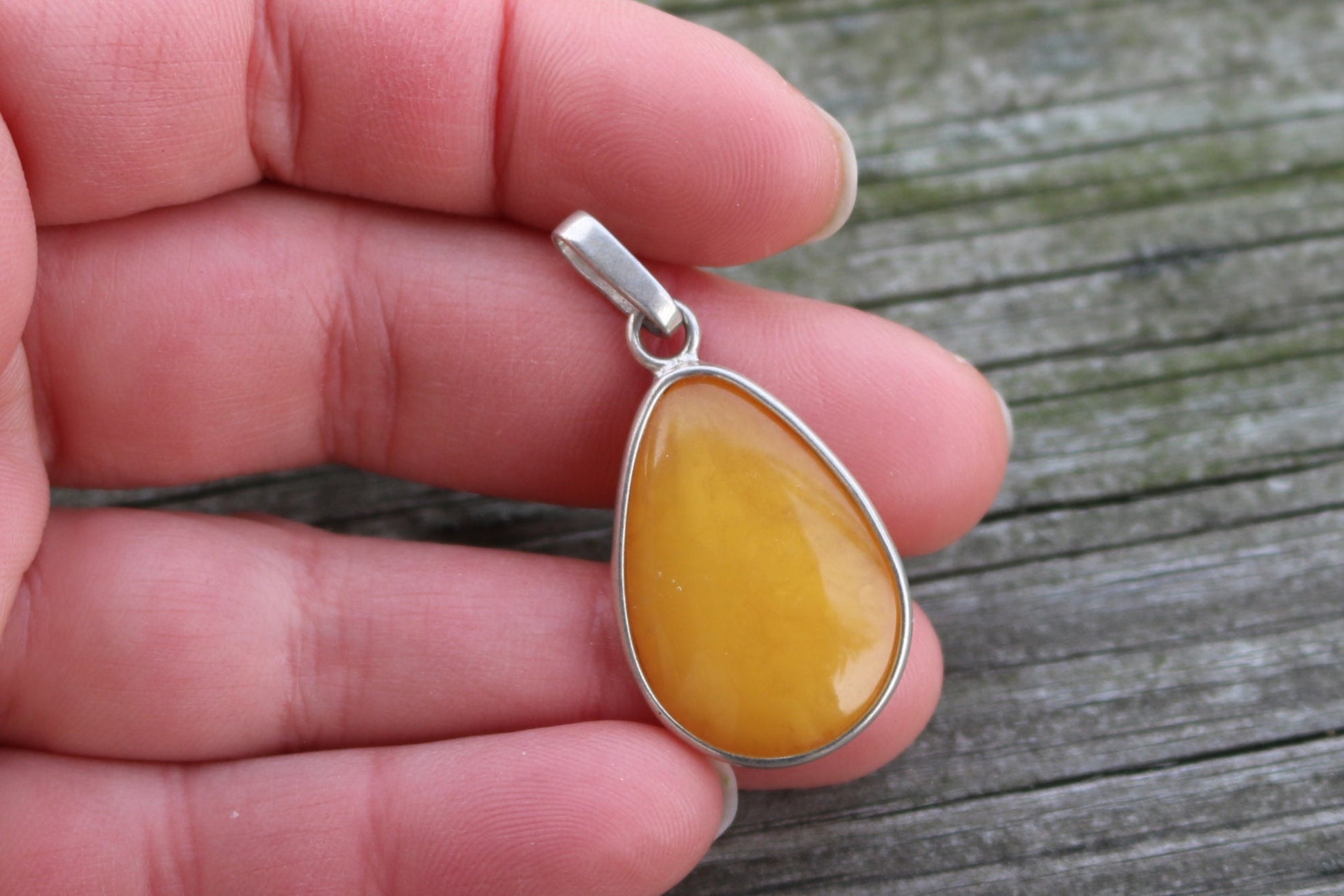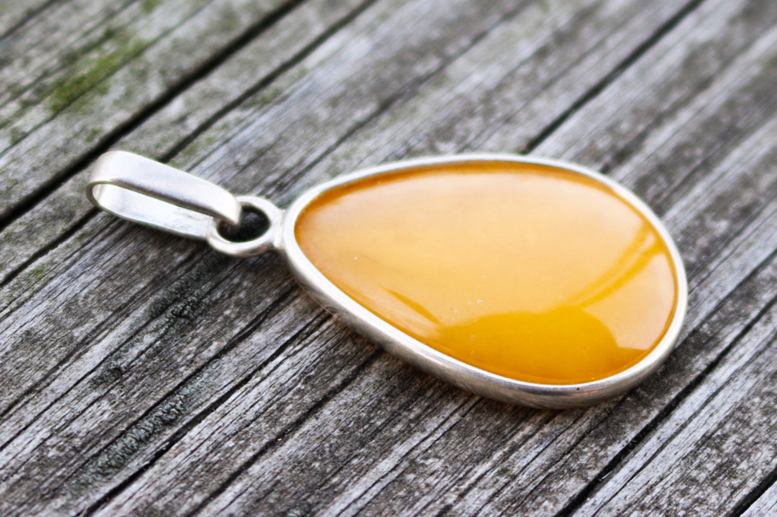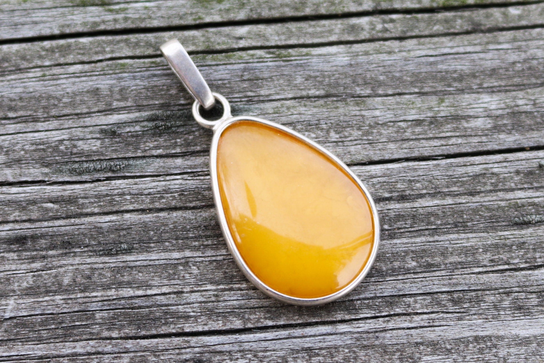 Baltic amber drop pendant in natural untreated butterscotch color.