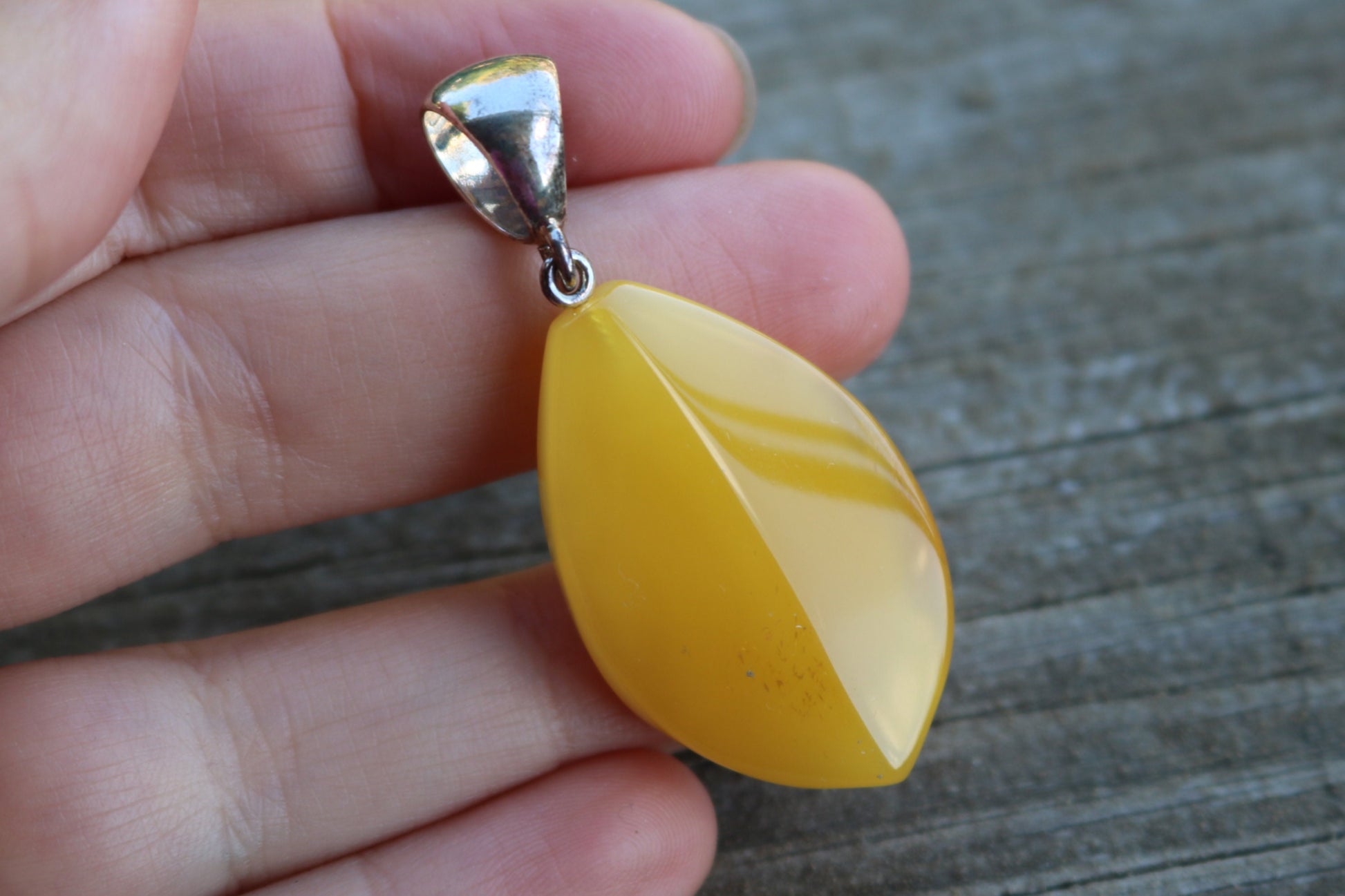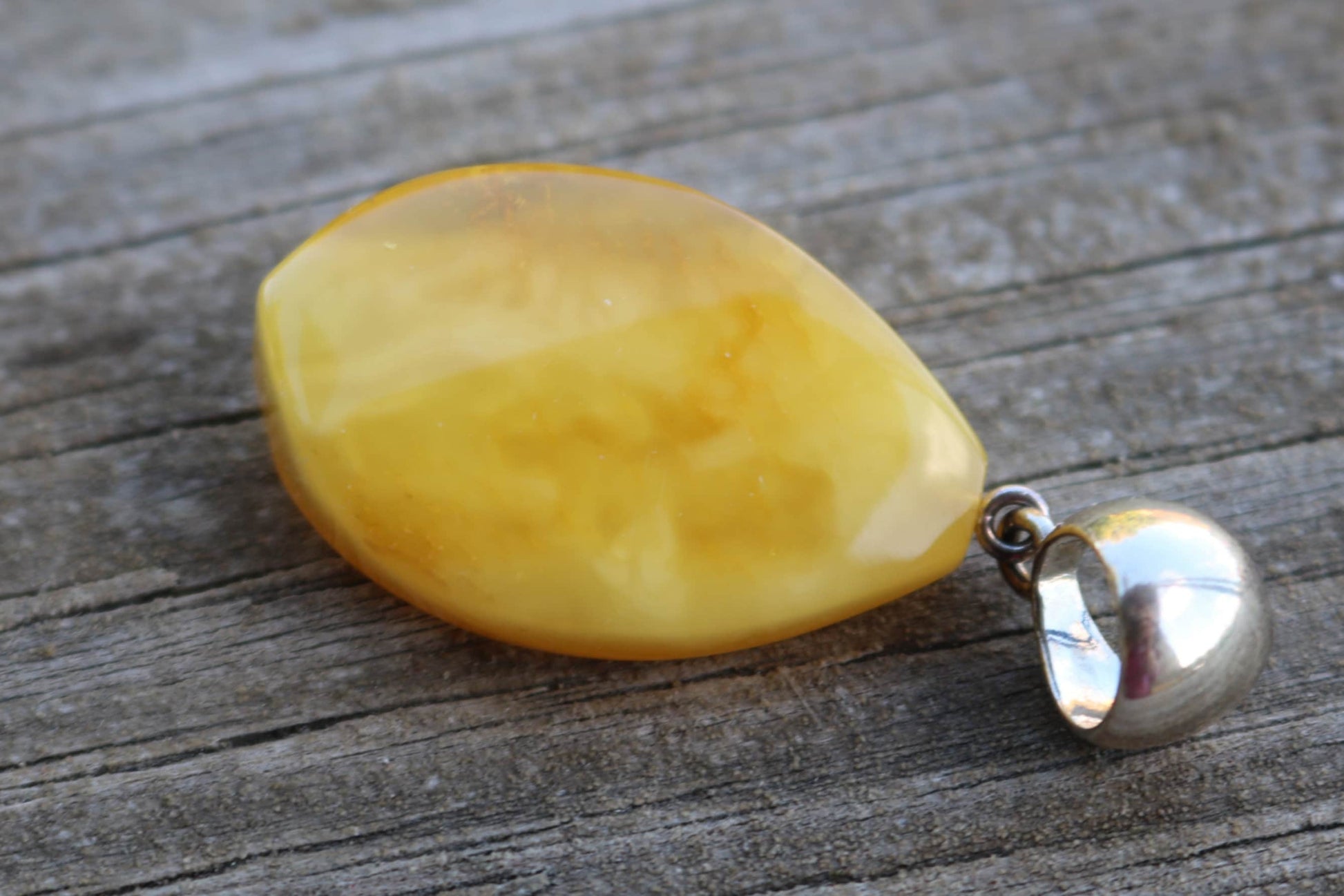 Baltic Amber Pendant Butterscotch Faceted Yellow Natural Untreated Unisex Jewelry 2" 6.4 gram 925 Silver