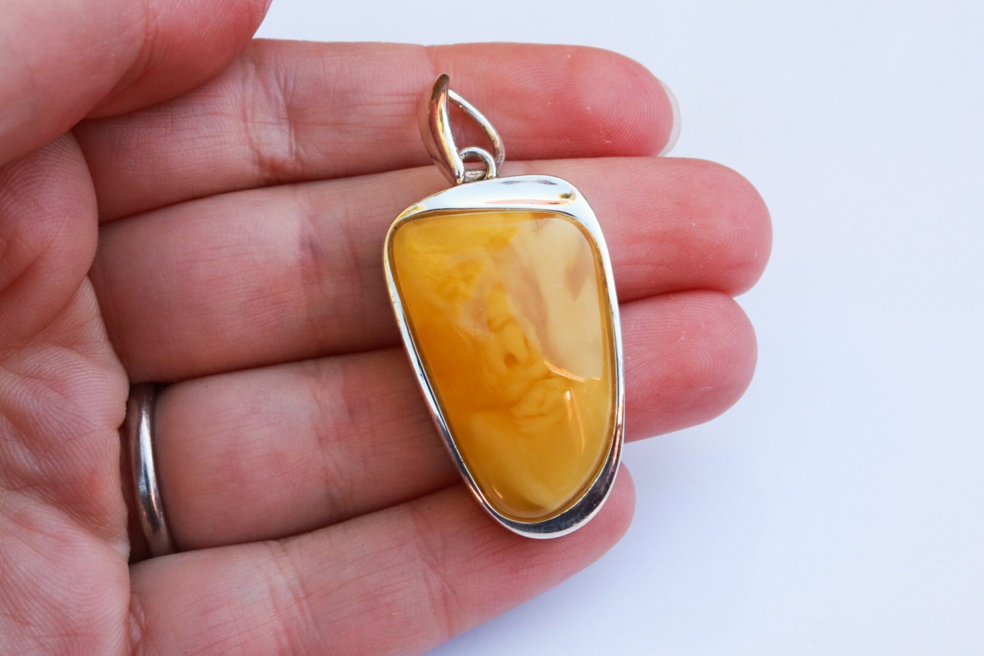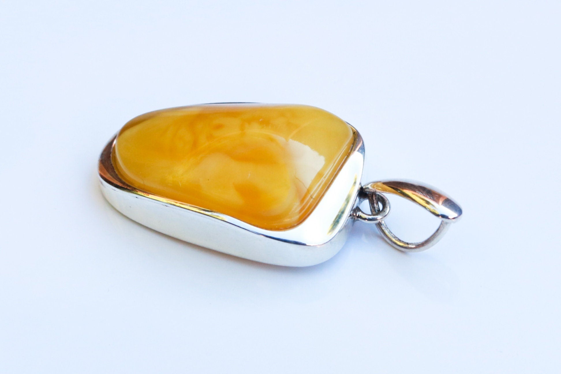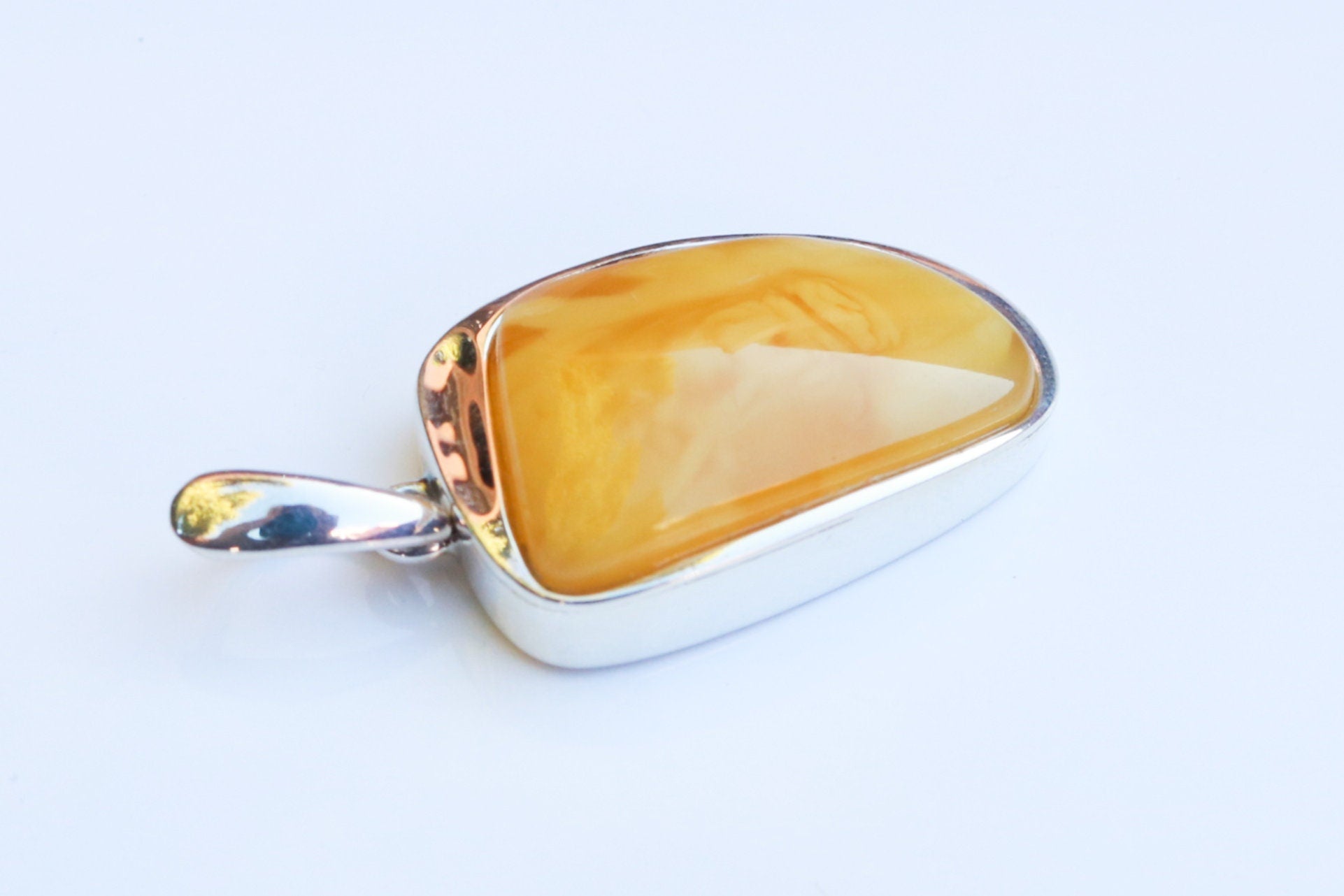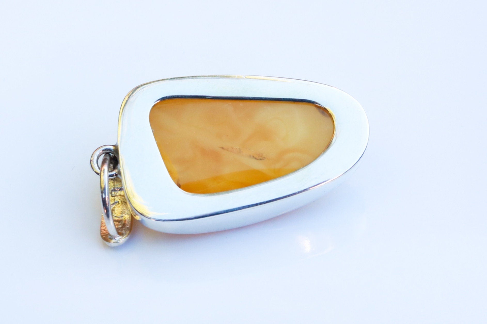 Baltic Amber handcrafted pendant in natural untreated butterscotch color with milky swirls. Set in 925 sterling silver.