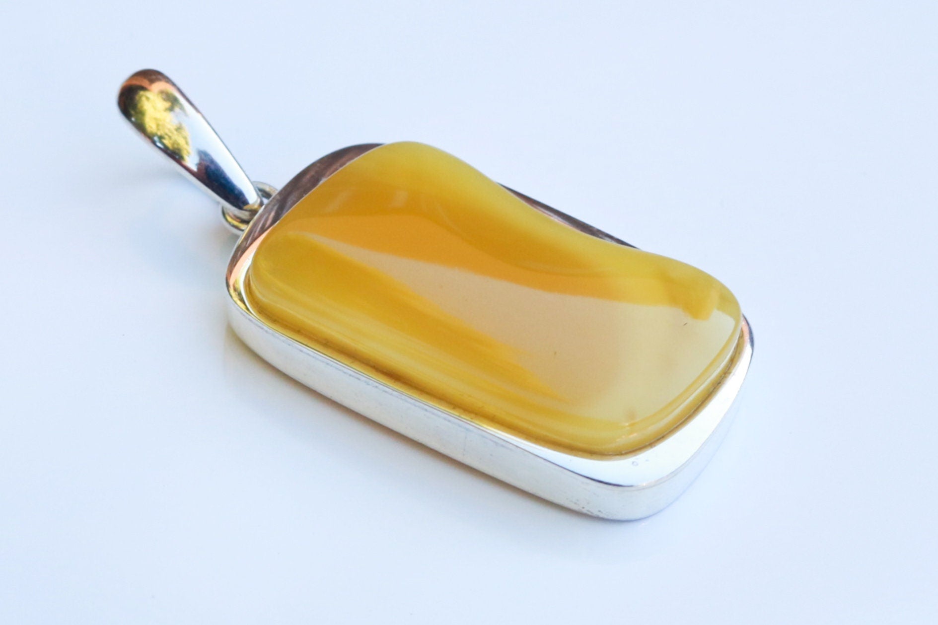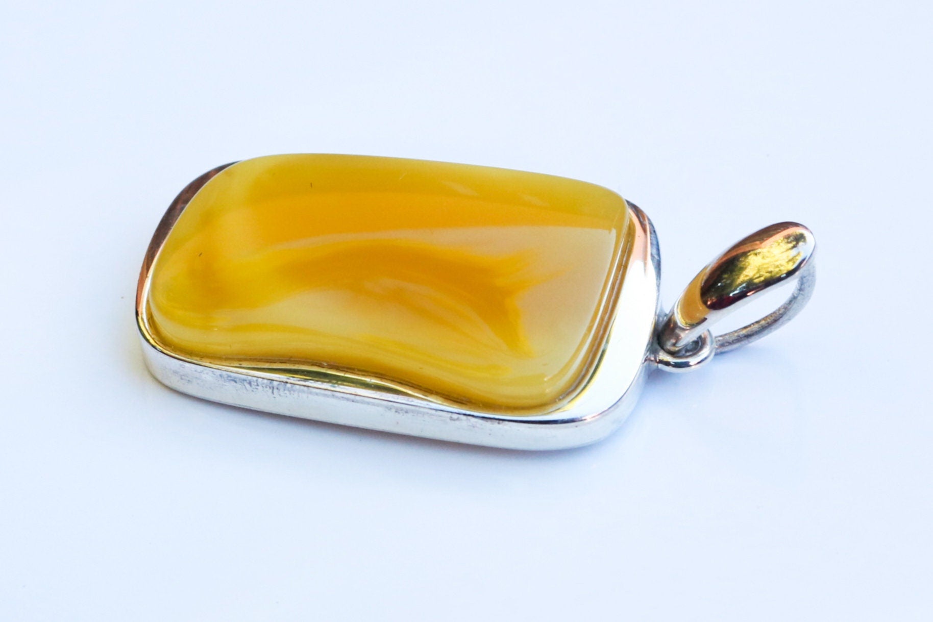 Baltic Amber handcrafted pendant in natural untreated butterscotch color with milky swirls. Set in 925 sterling silver.