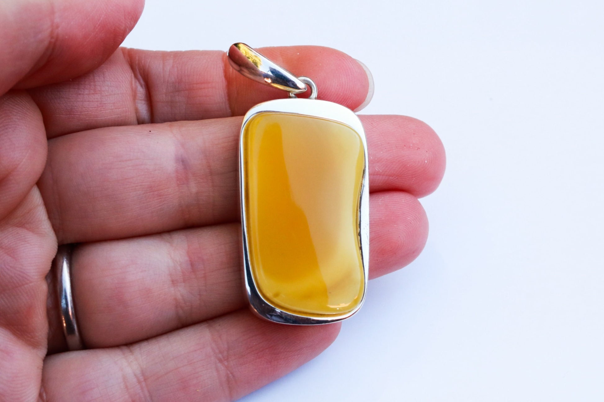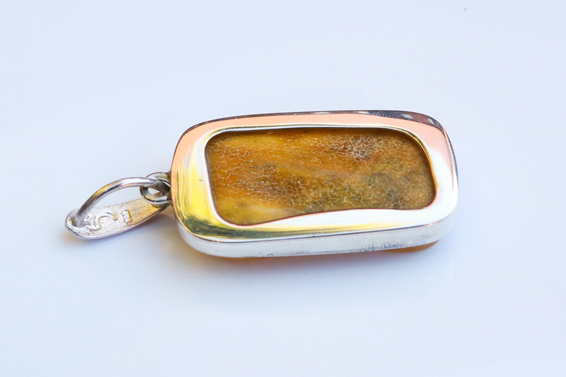 Baltic Amber Pendant Butterscotch Natural Untreated Unisex 2" 10.9 gram 925 Silver