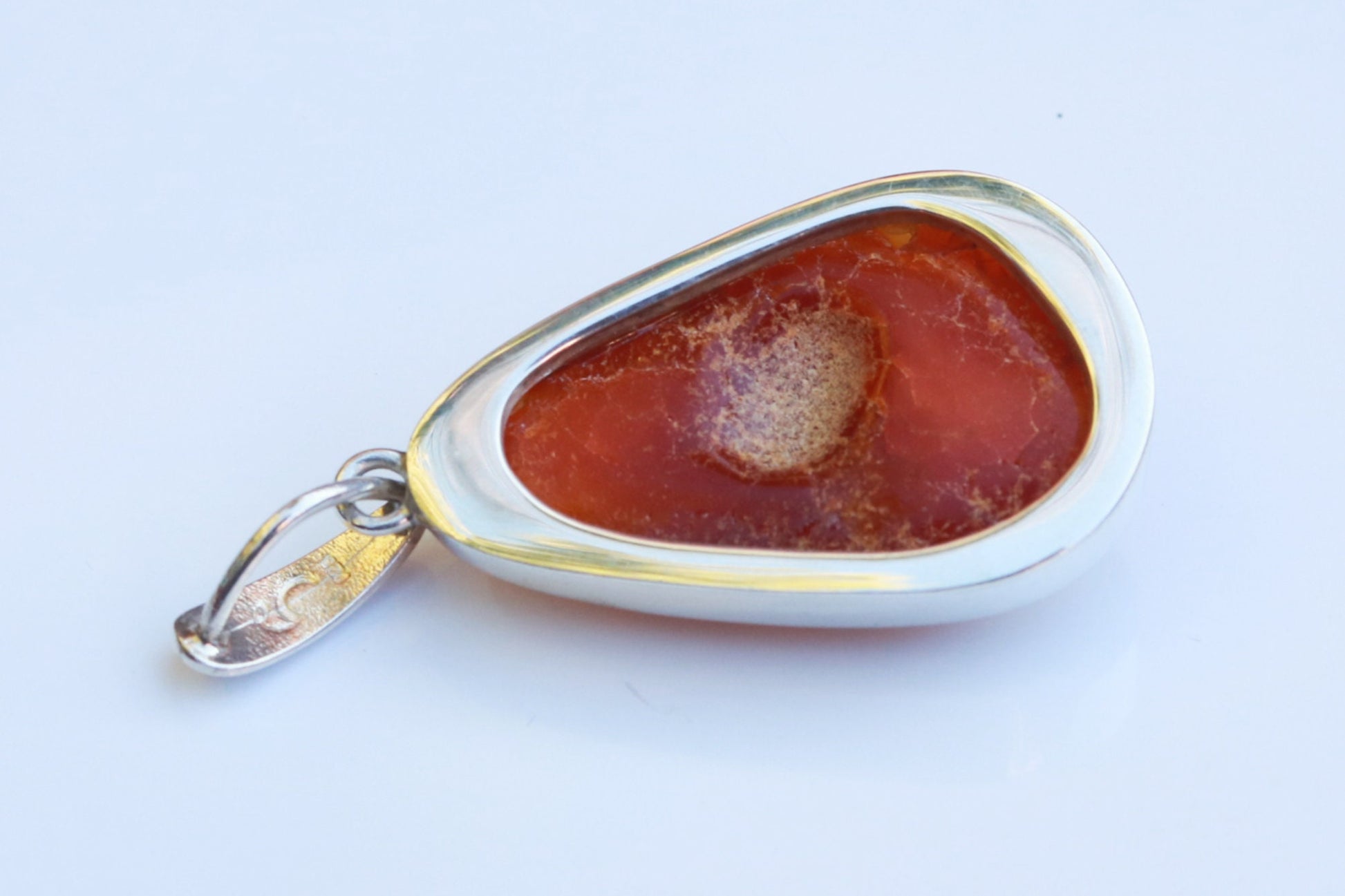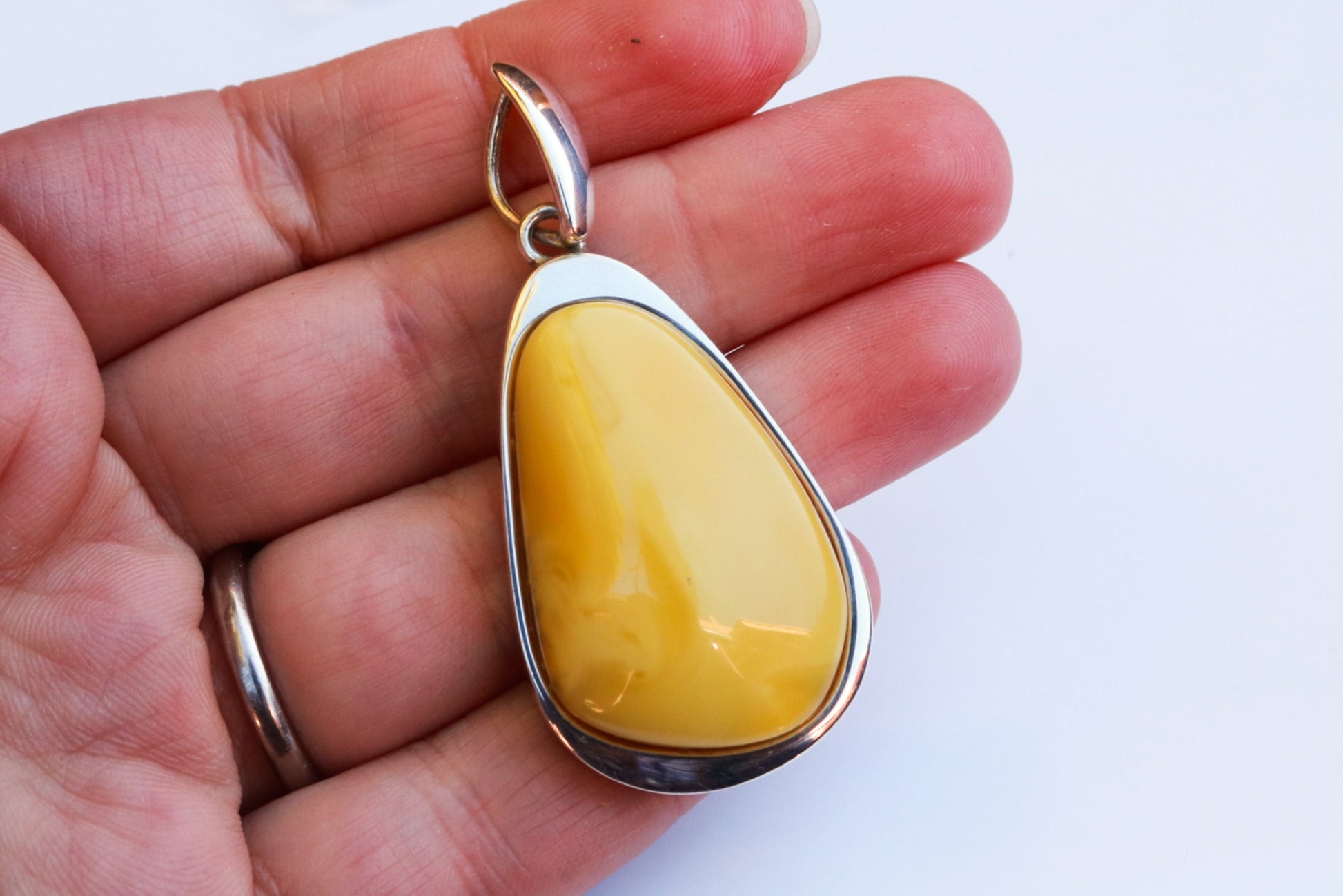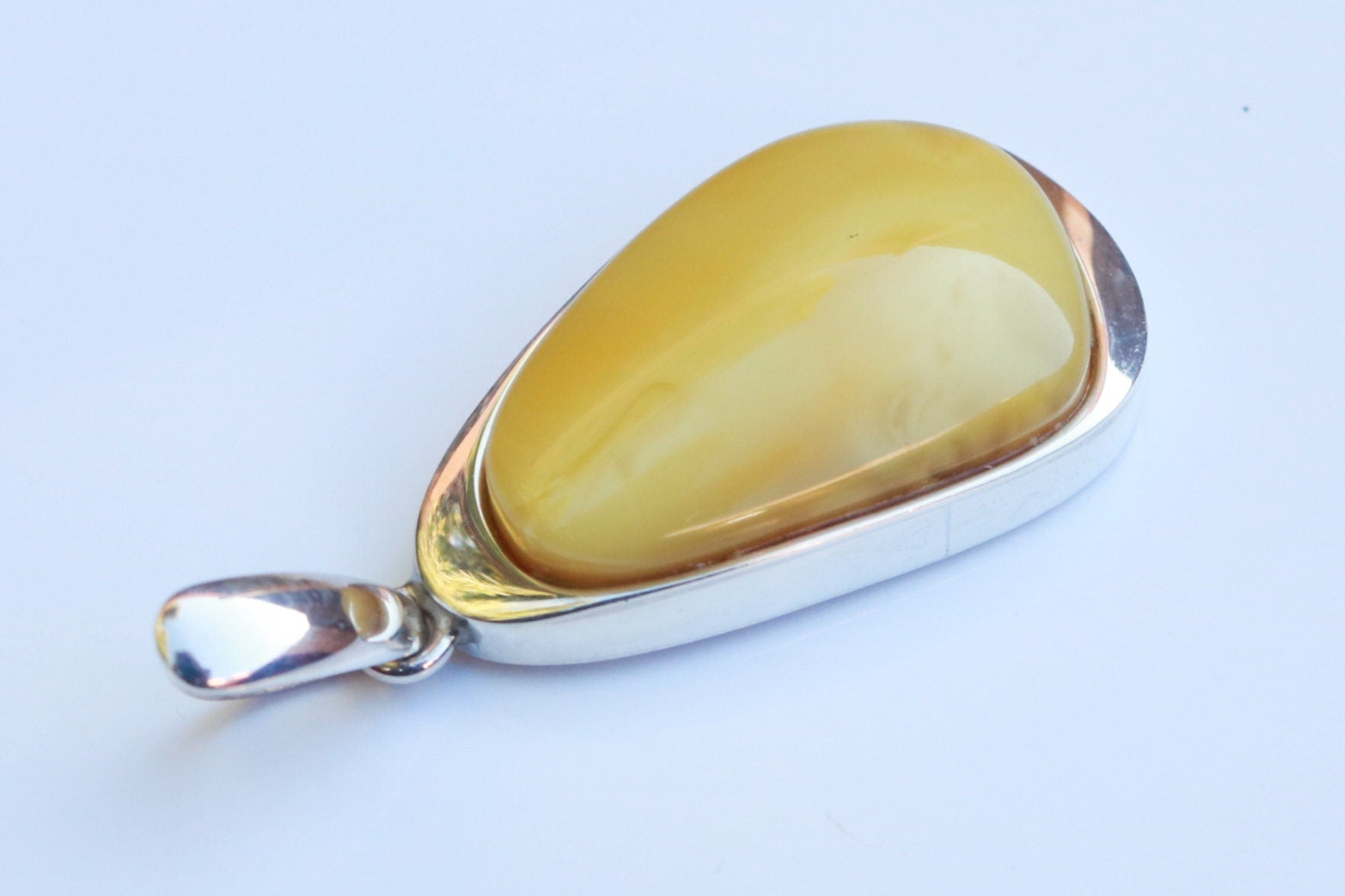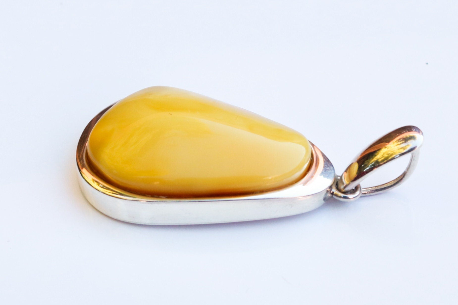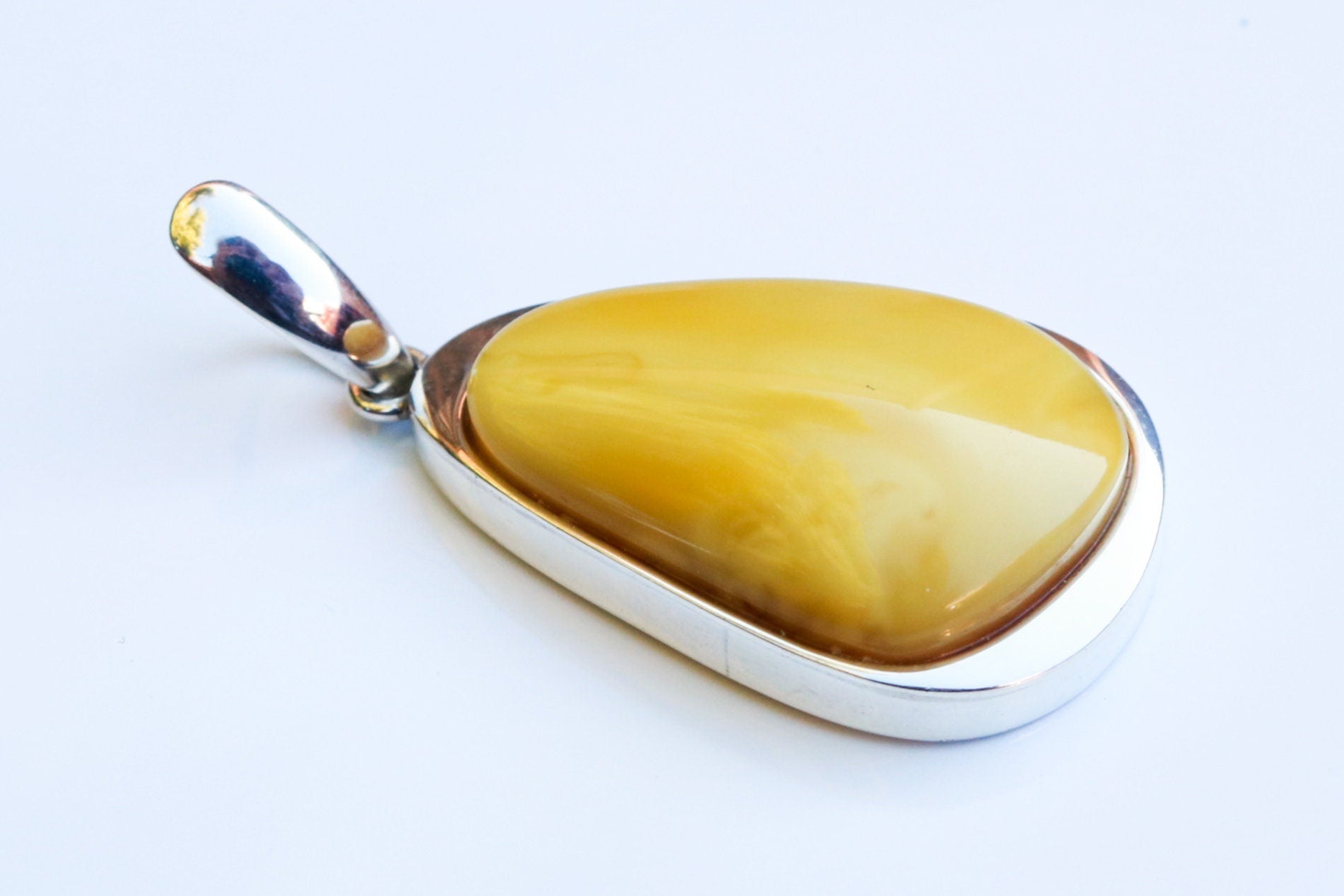 Baltic Amber handcrafted pendant in natural untreated butterscotch color with milky swirls. Set in 925 sterling silver.