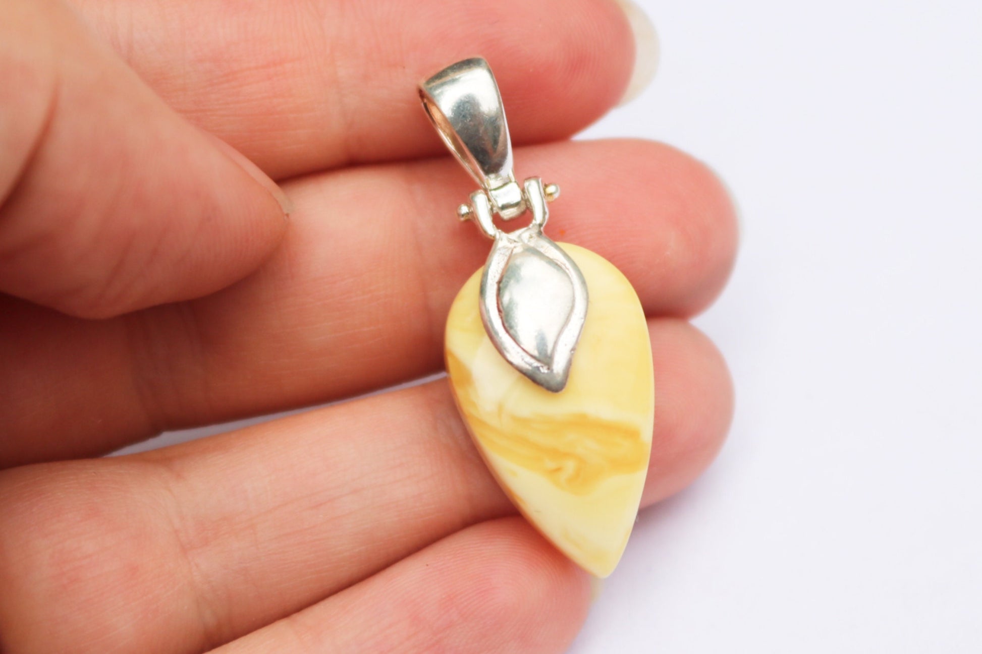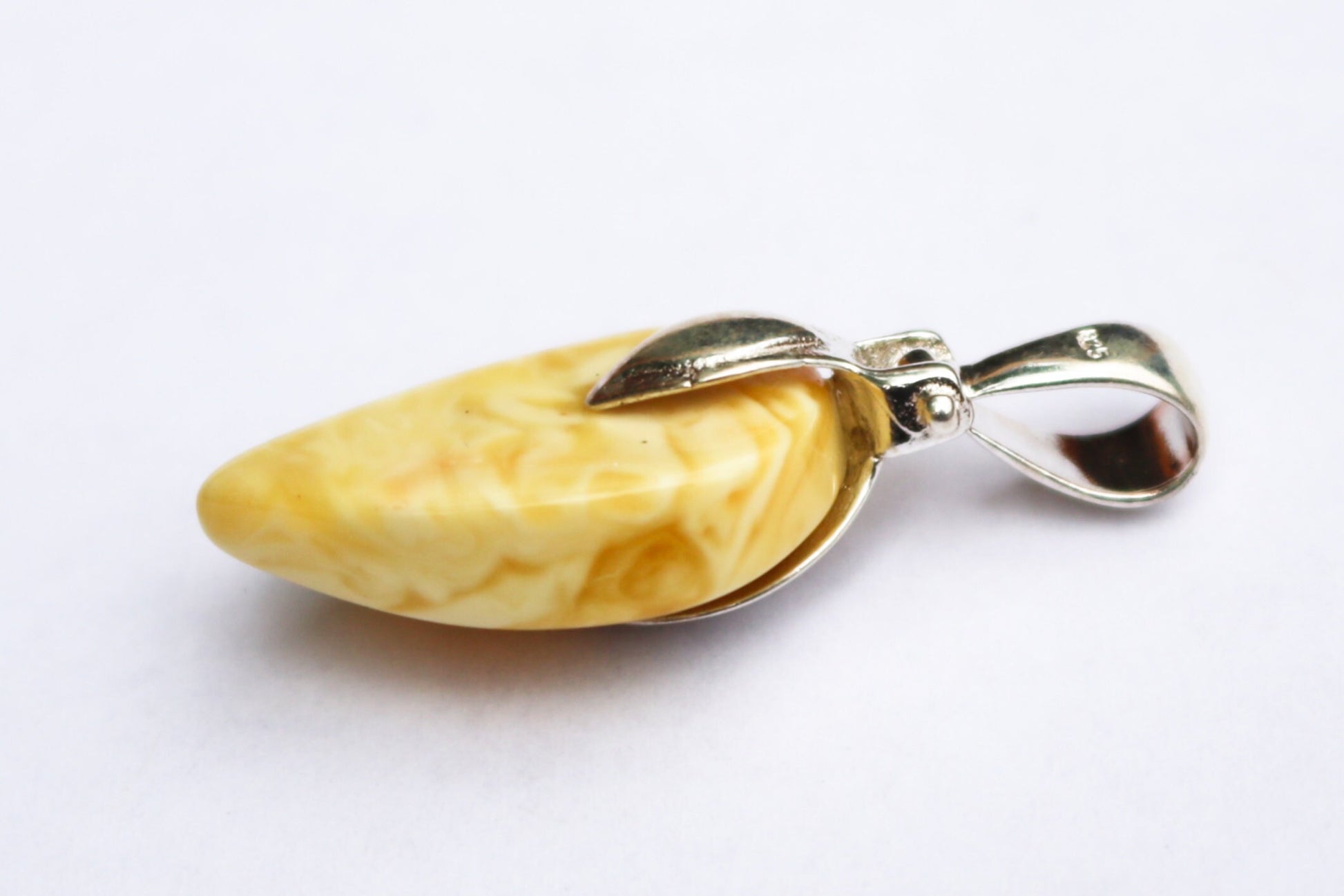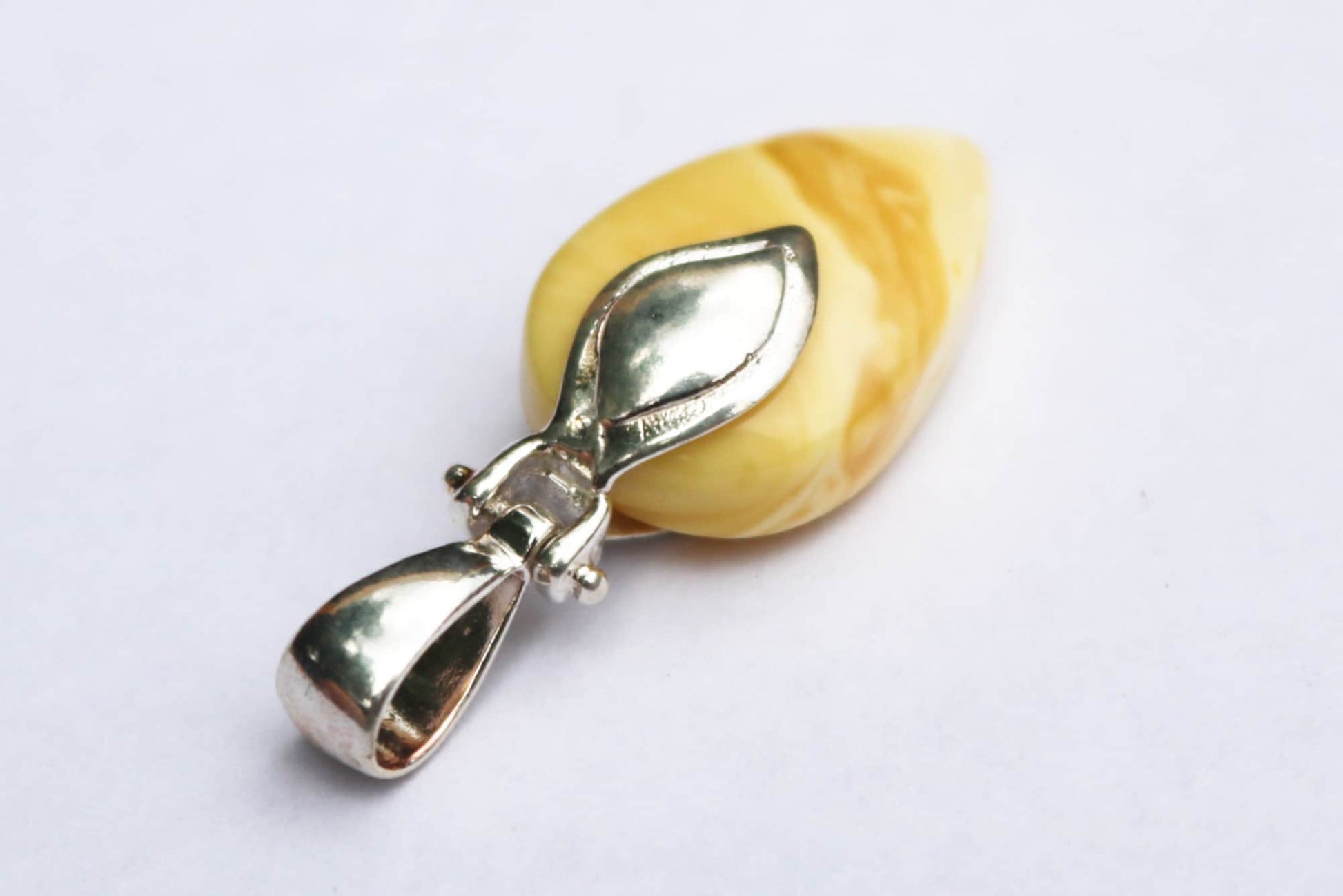Baltic Amber Pendant Butterscotch Natural Yellow Untreated Unisex Jewelry 1.49″ 3.9 gram 925 Silver