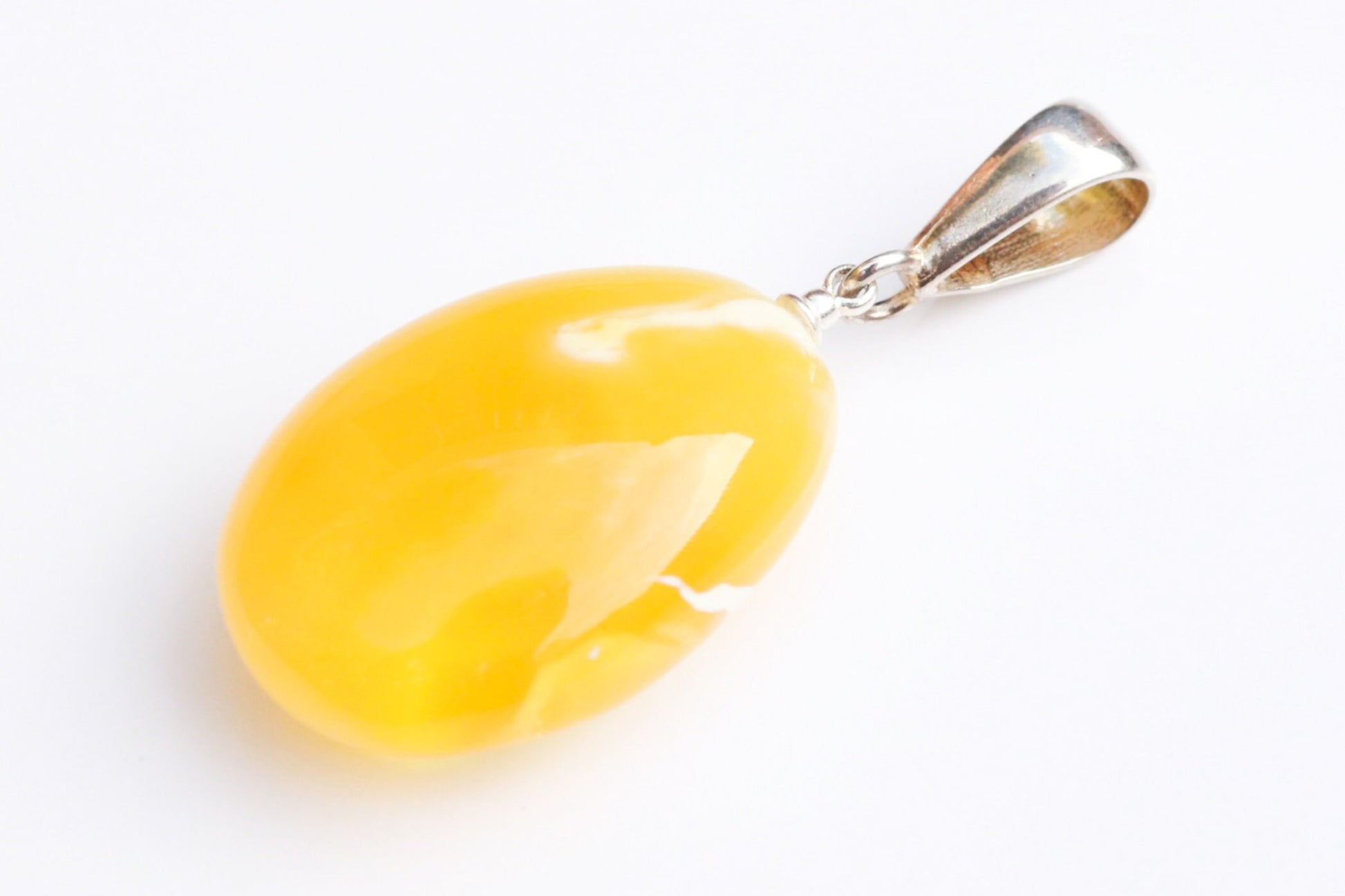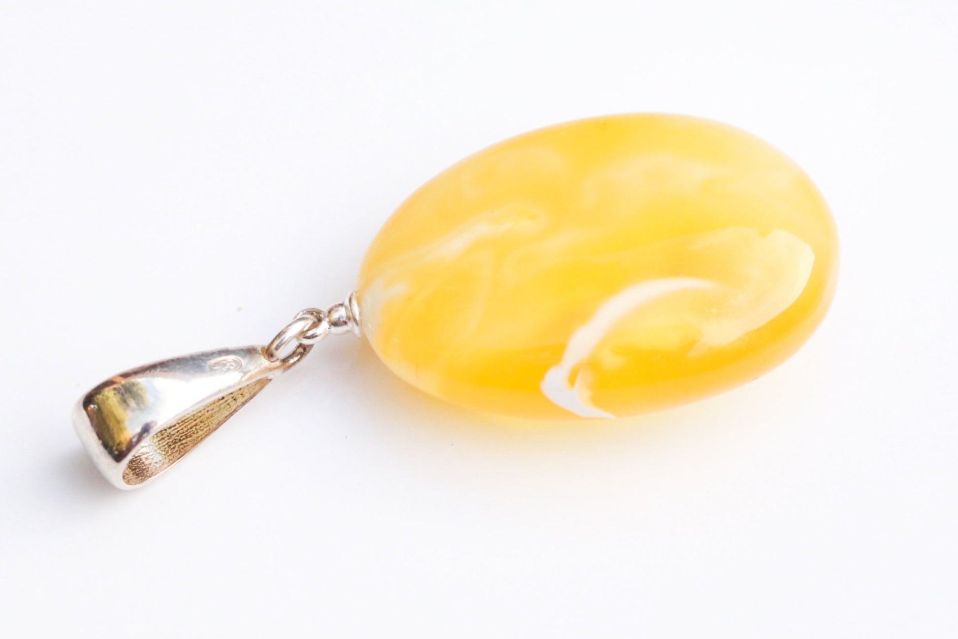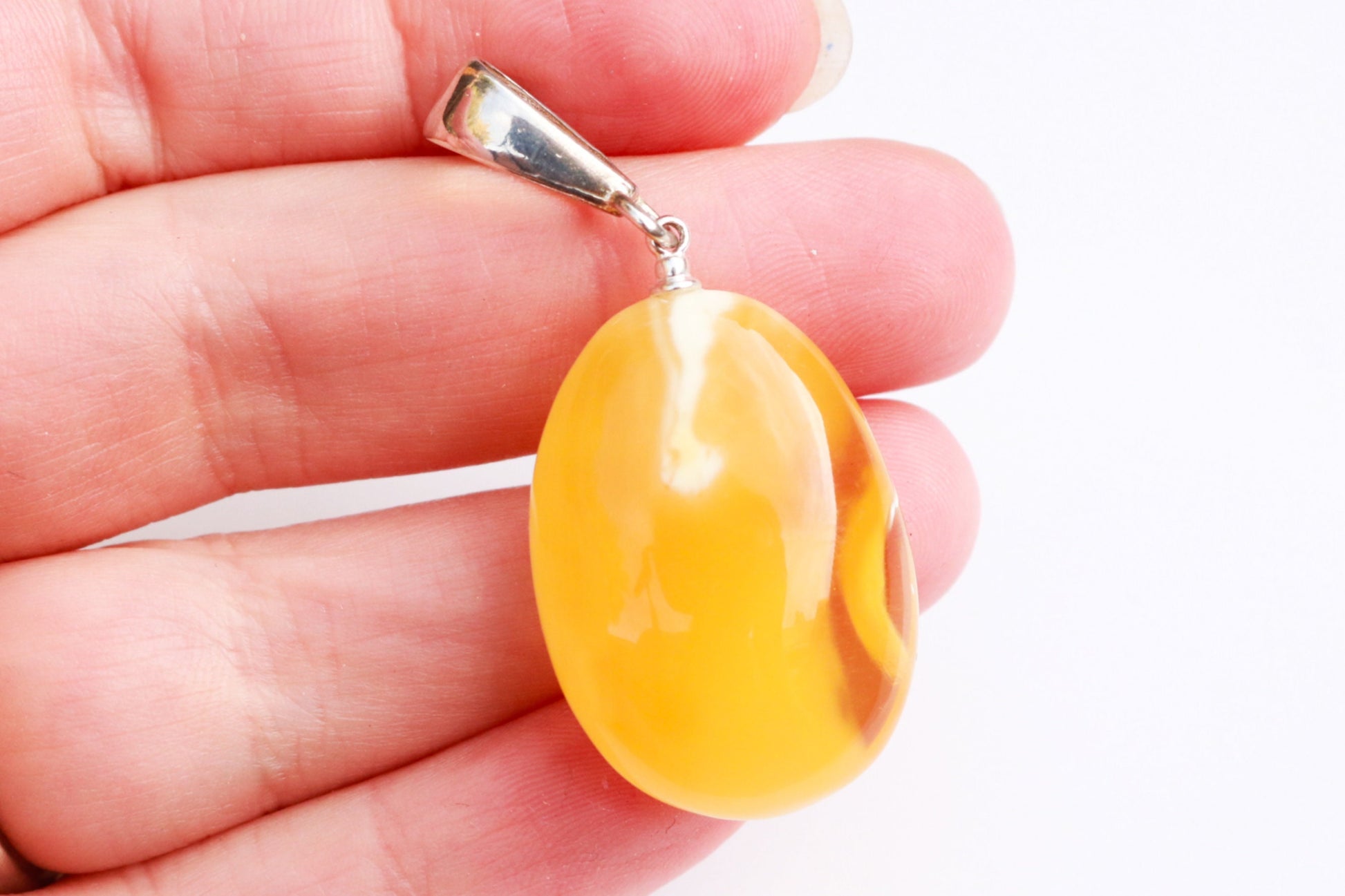 Baltic Amber Pendant Butterscotch Oval Cloudy Natural Yellow Untreated Unisex 1.89" 4.8 gram