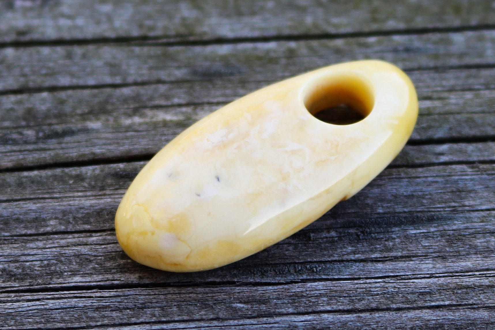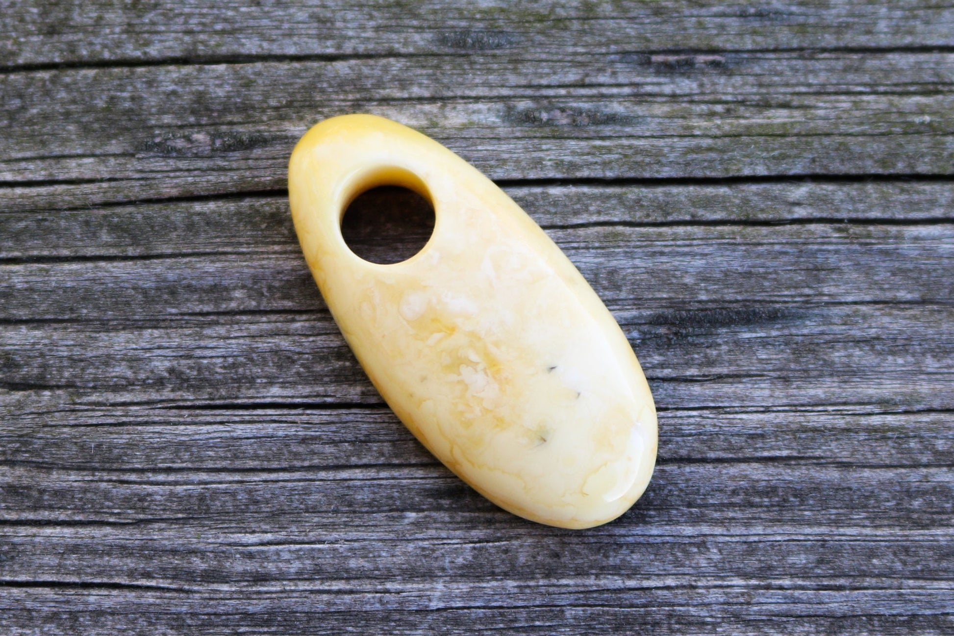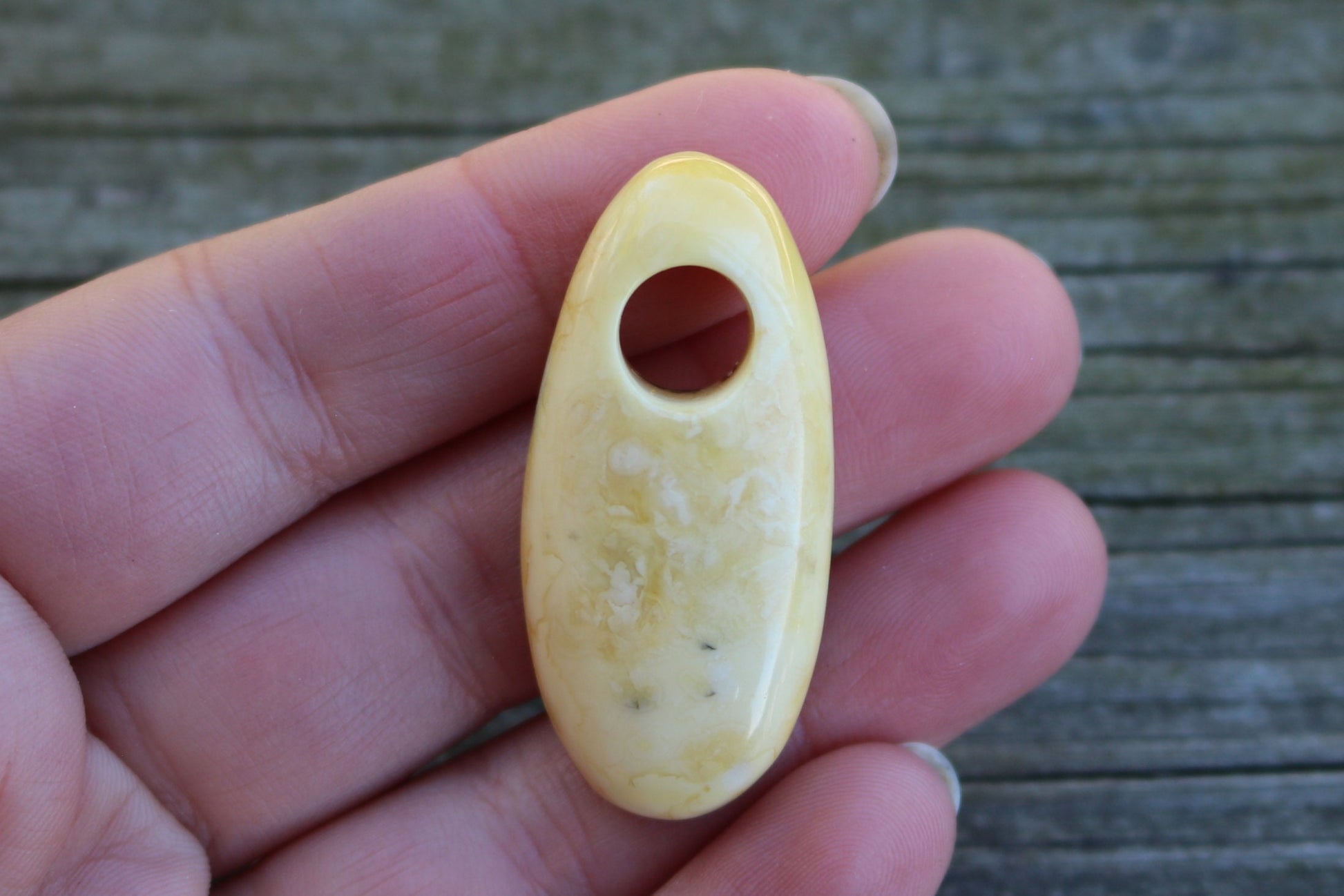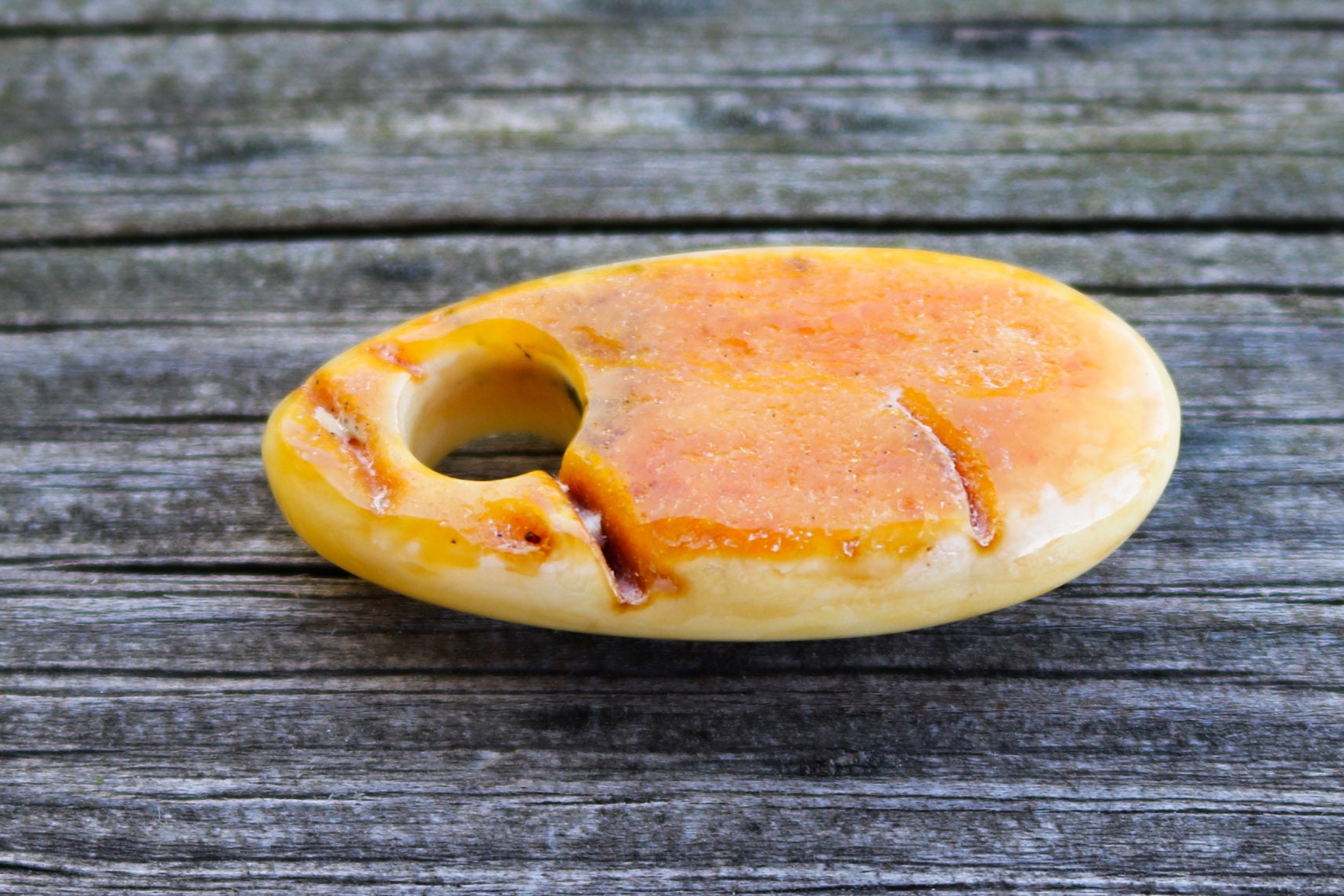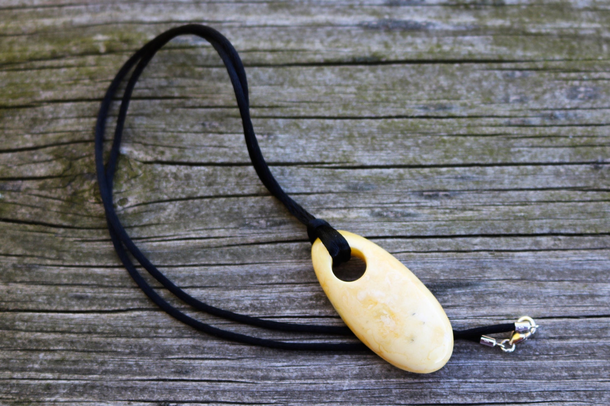 Baltic Amber pendant in natural butterscotch color with inclusions and swirls. Raw untreated polished piece.