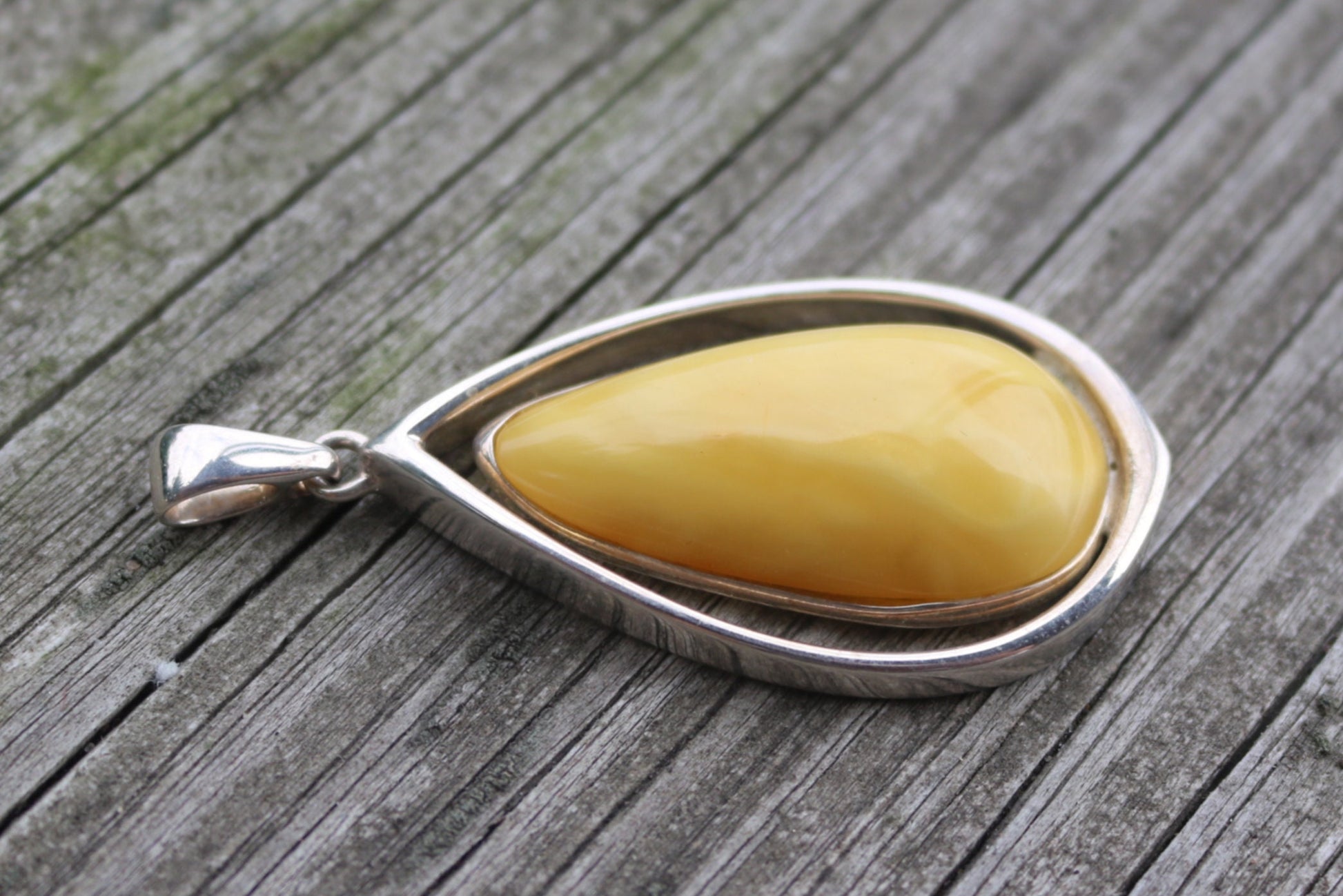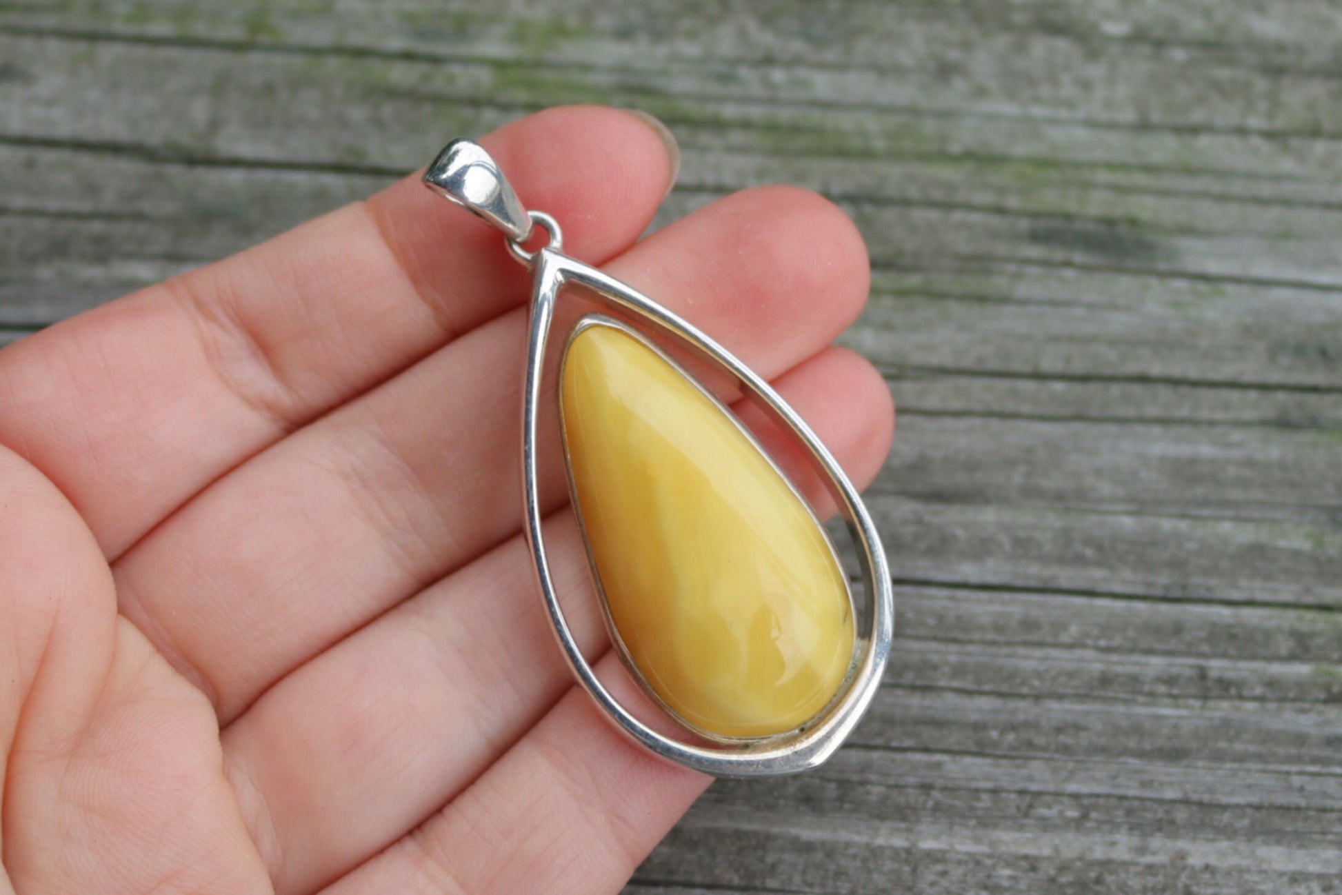 Baltic Amber Pendant Butterscotch Yolk Drop Natural Unisex Jewelry 2.36" 17.6 gram