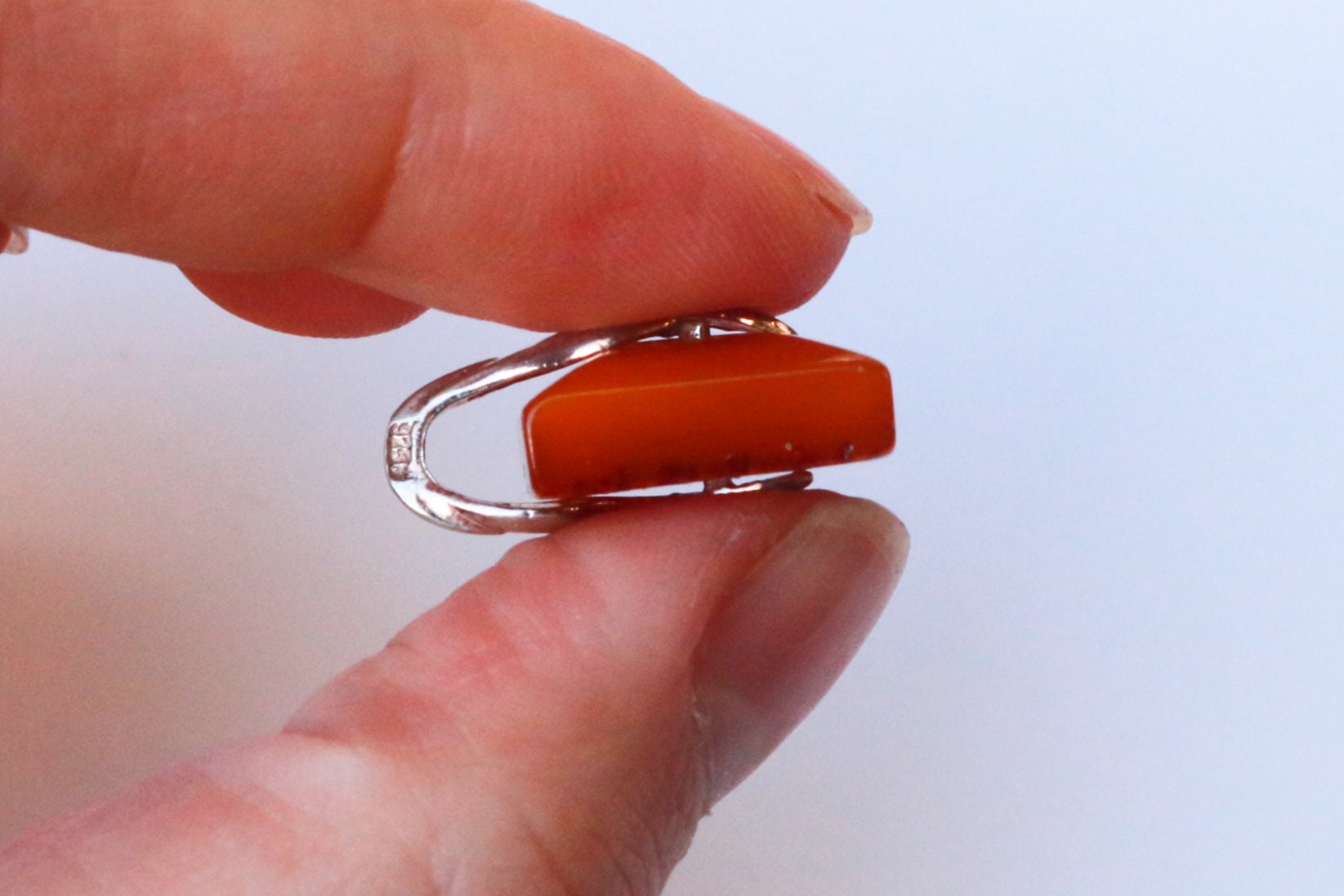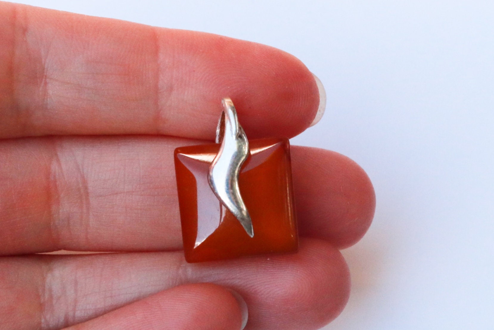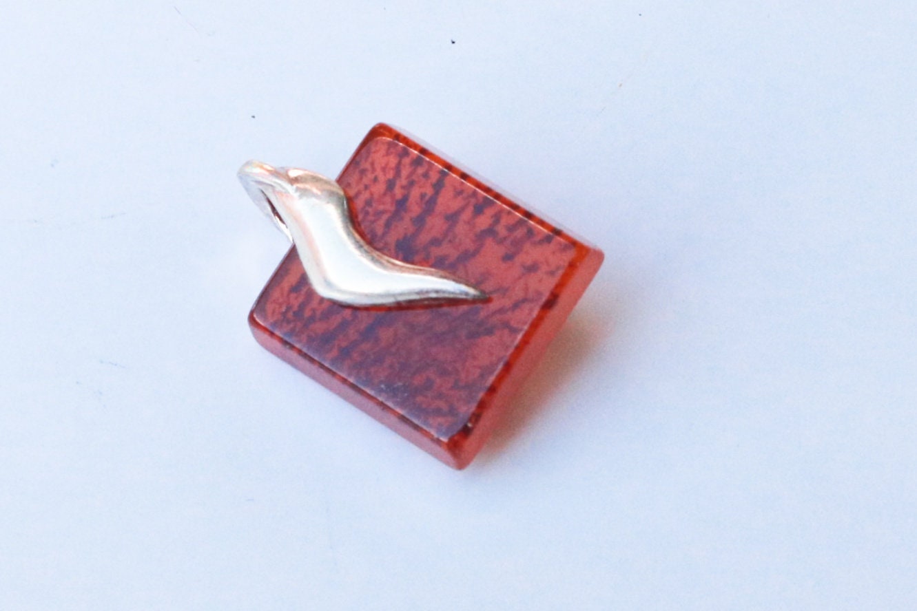 Baltic Amber Pendant Caramel Squared Unisex Antique 0.88" 2.8 gram 925 Silver
