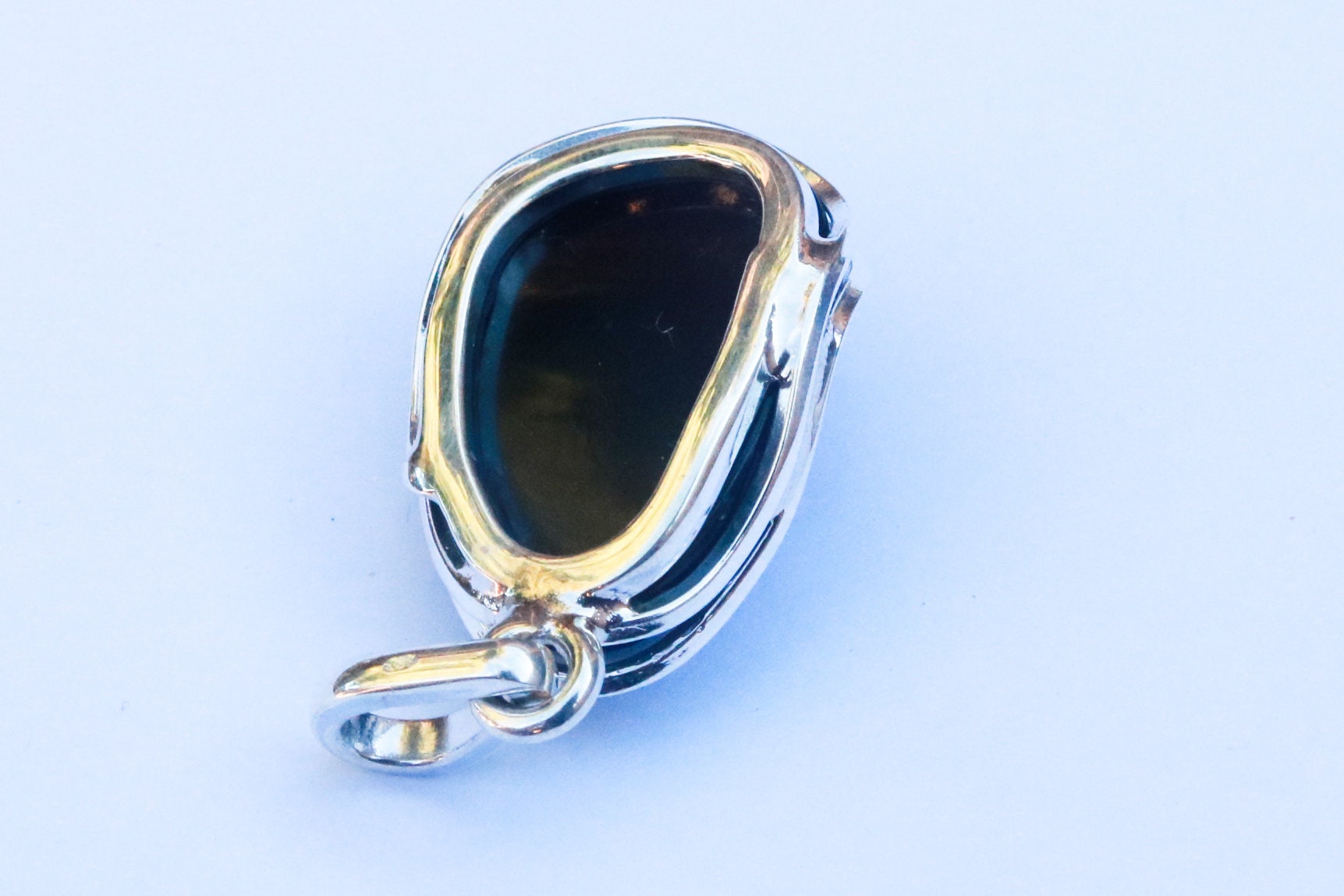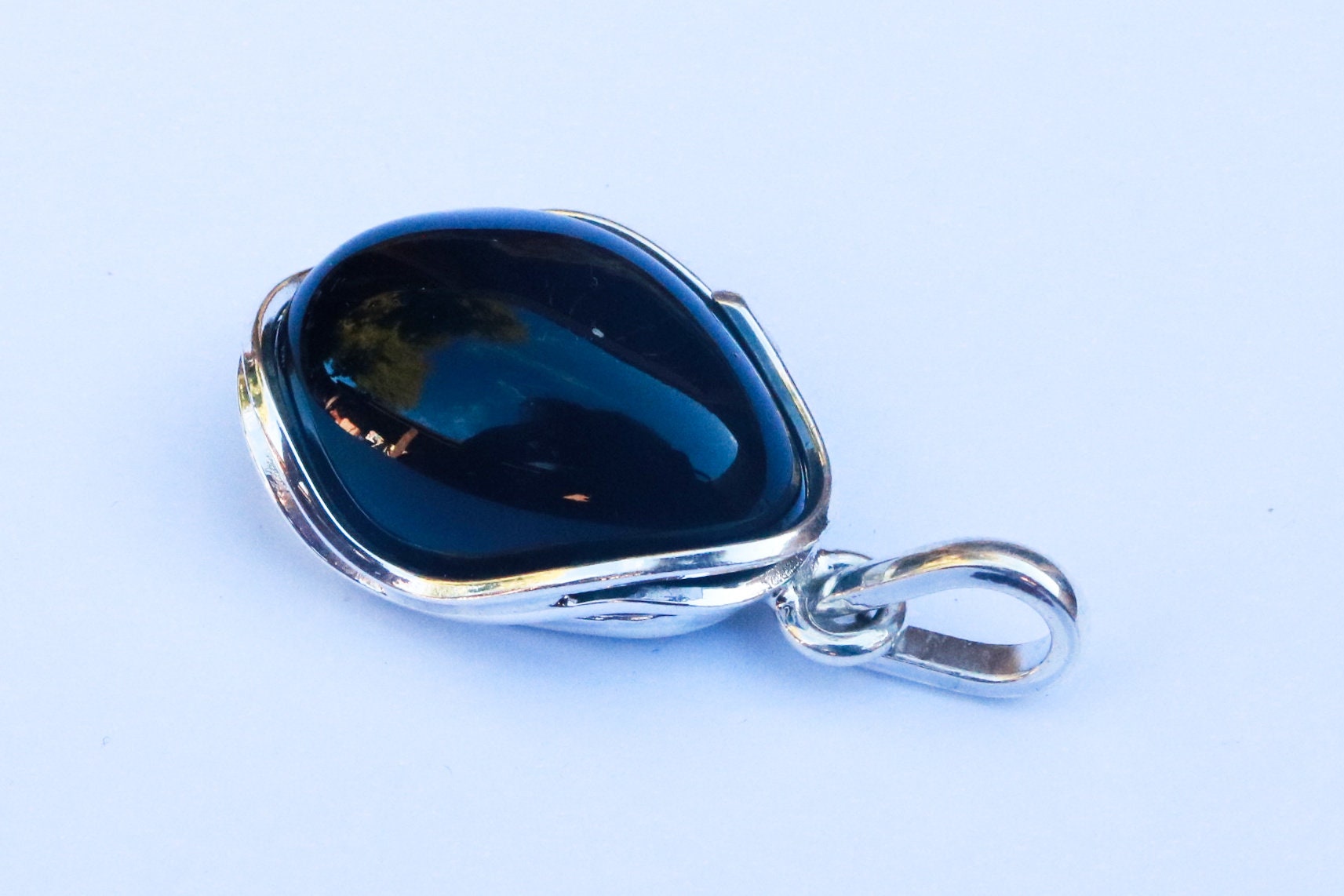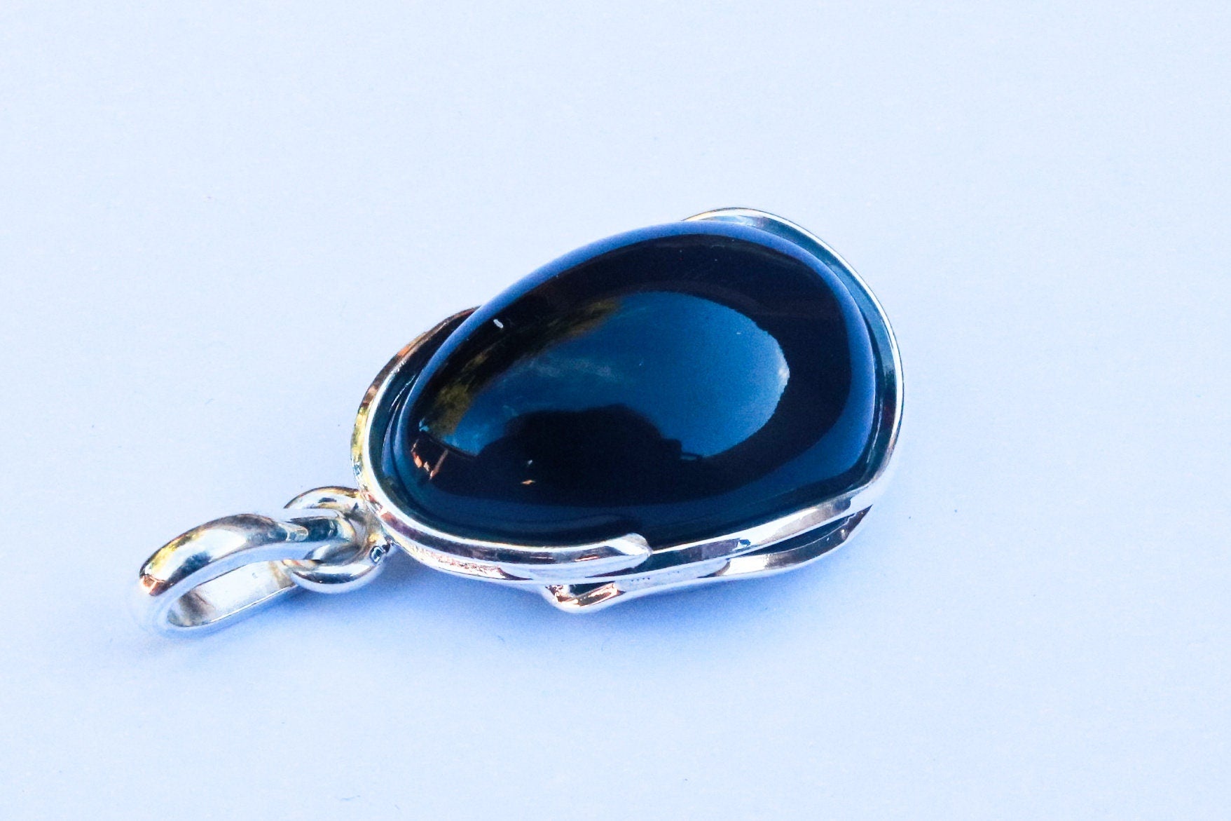 Baltic Amber Pendant Cherry Drop Natural Untreated Unisex Jewelry 1.93" 14.1 gram 925 Silver
