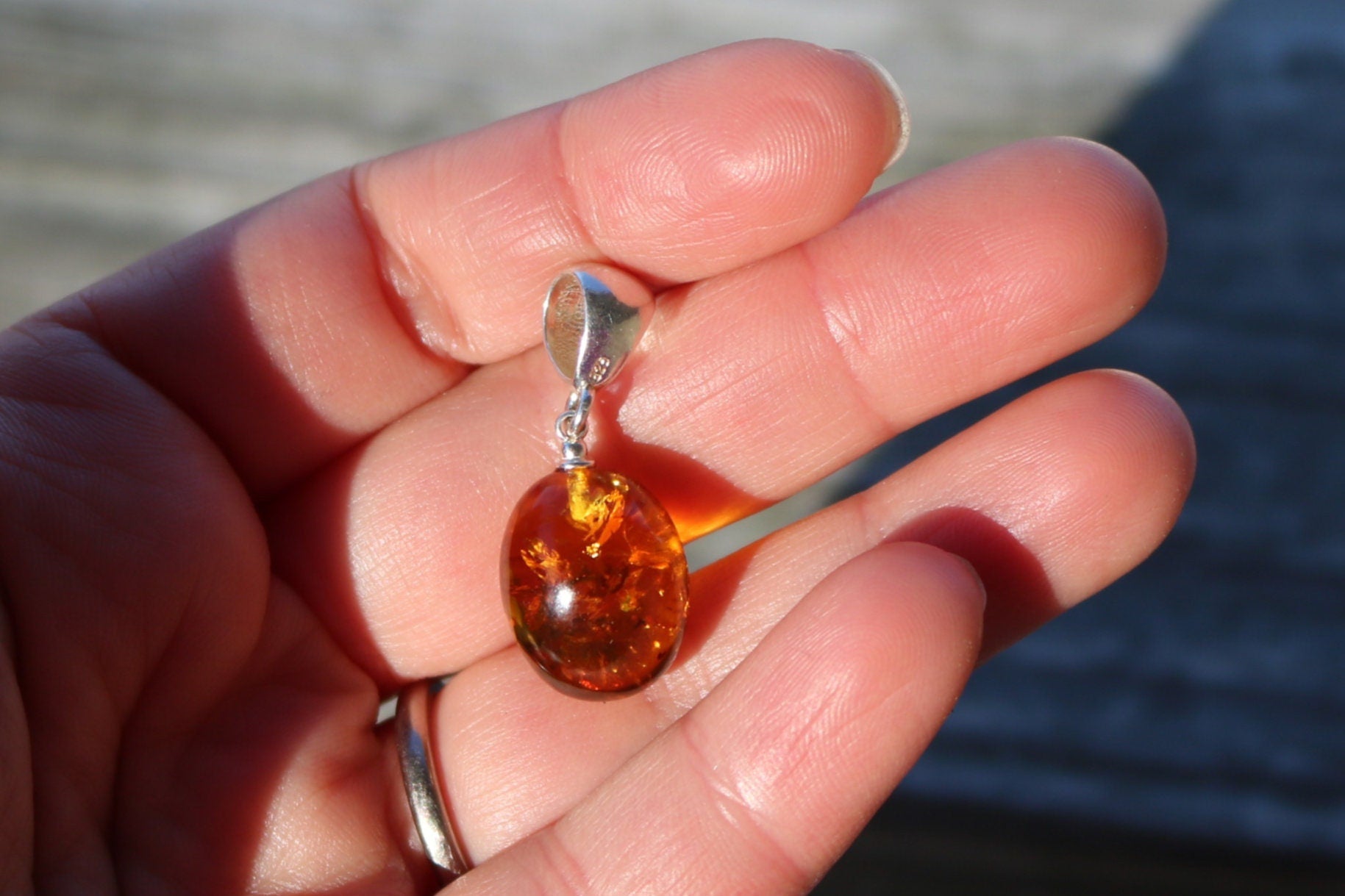 Baltic Amber Pendant Cognac Egg Sparkling Jewelry Unisex Natural 1.26" 3 gram 925 Silver